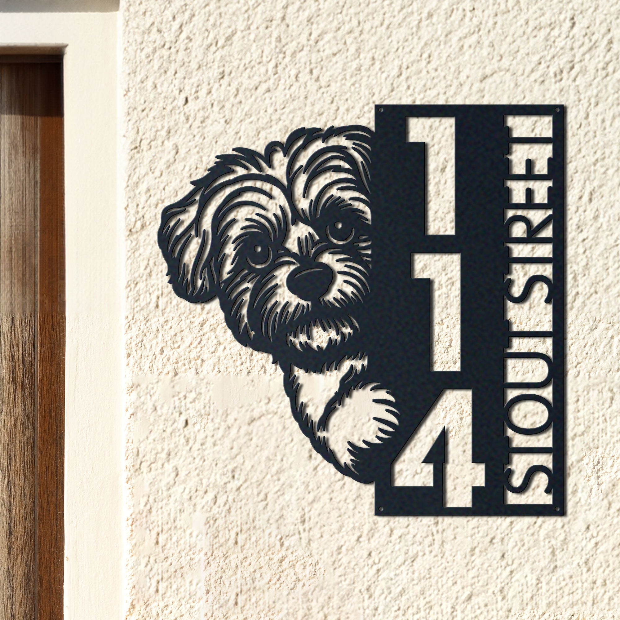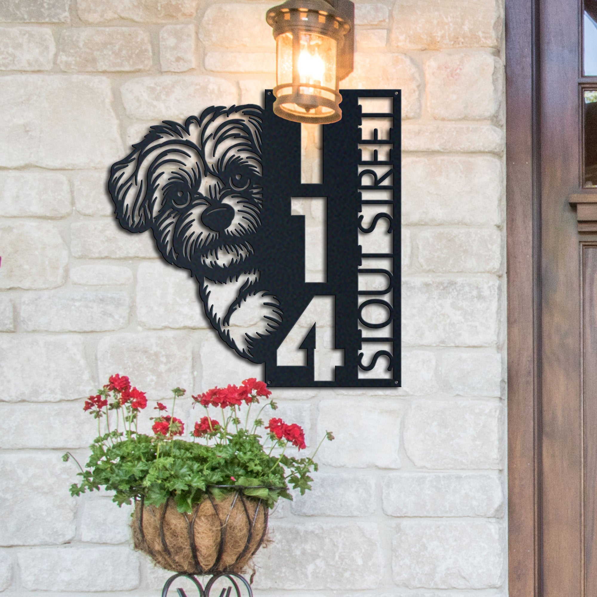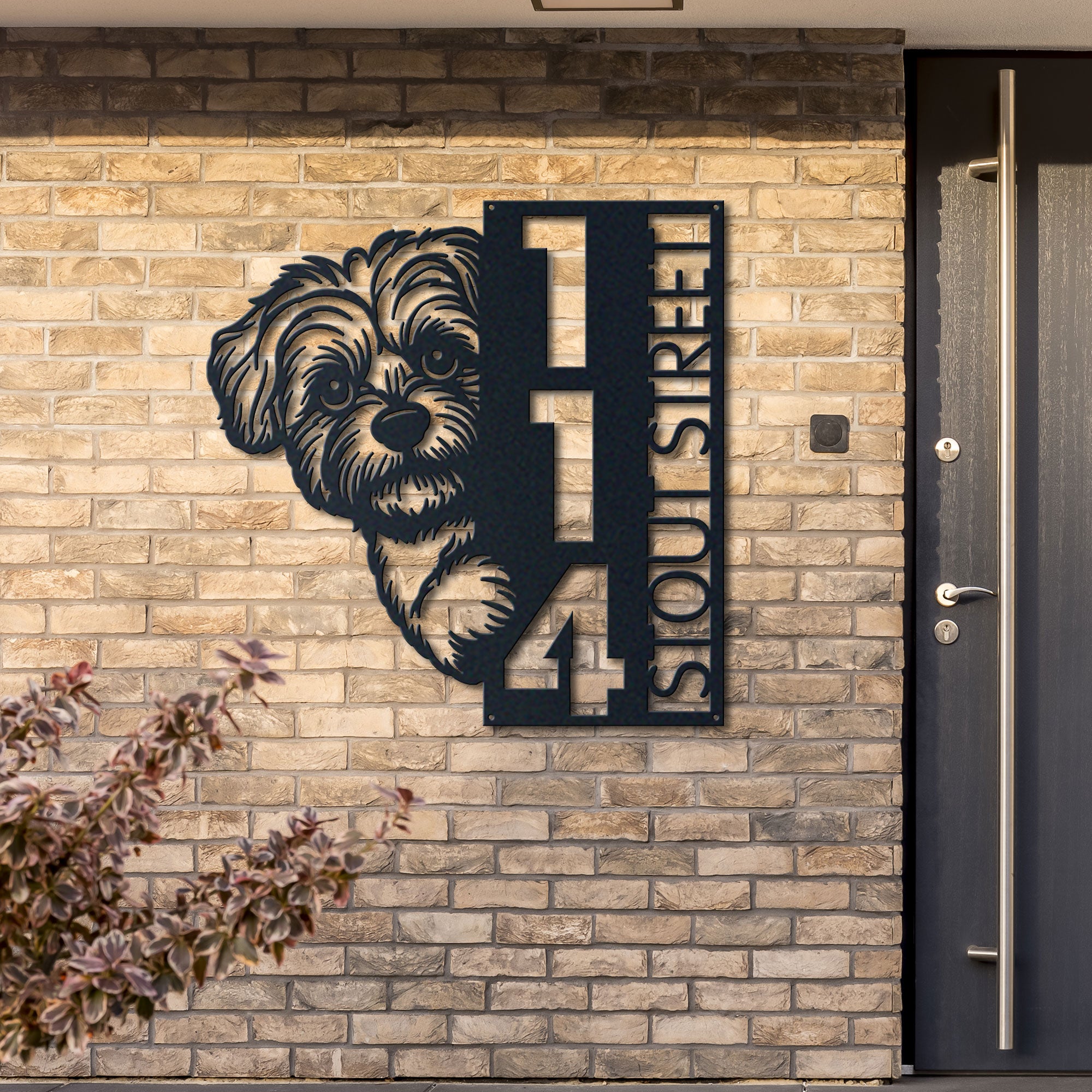 Maltipoo Address Sign | Custom Metal Vertical House Number Plaque | Pet Owner Gift