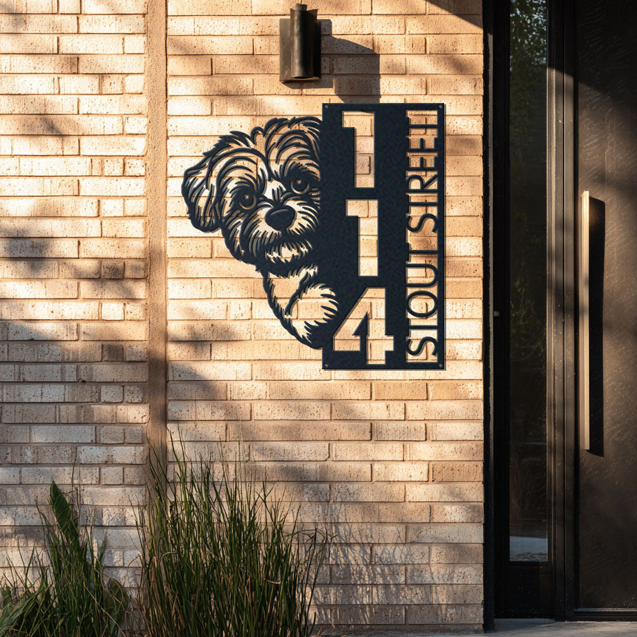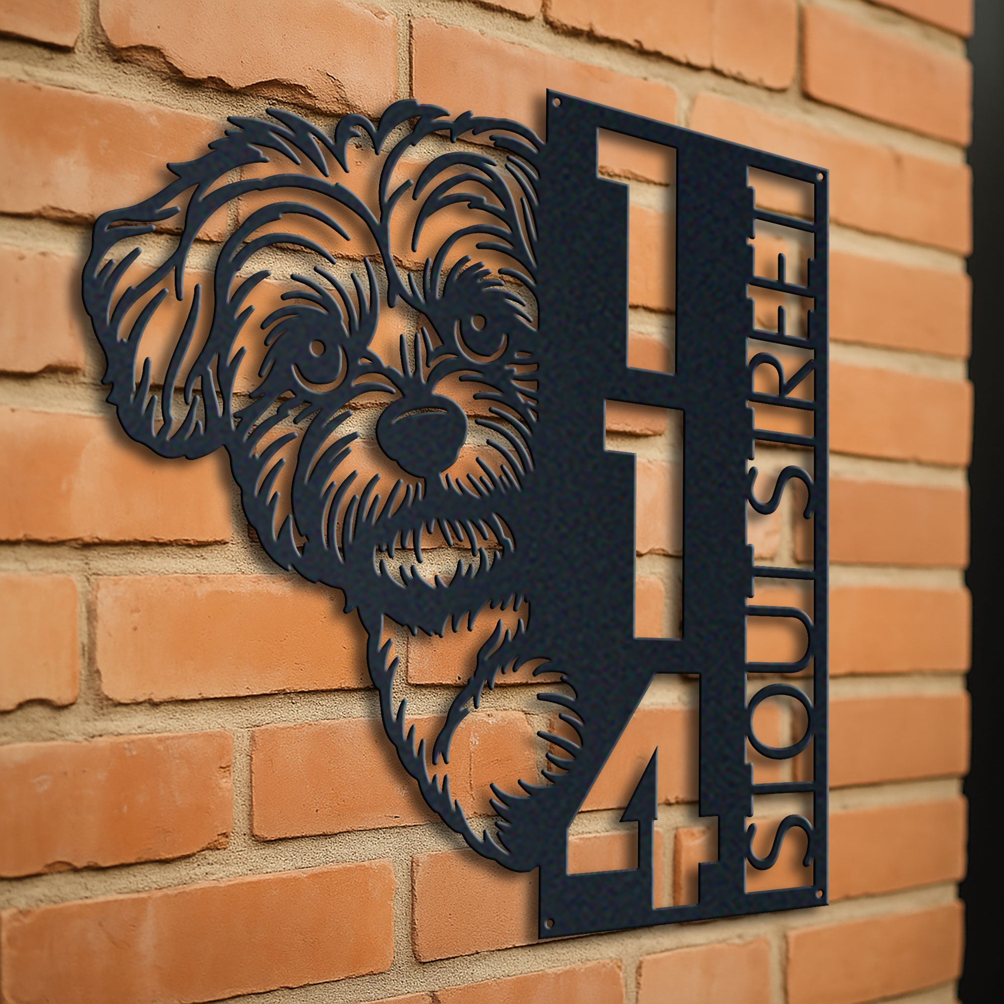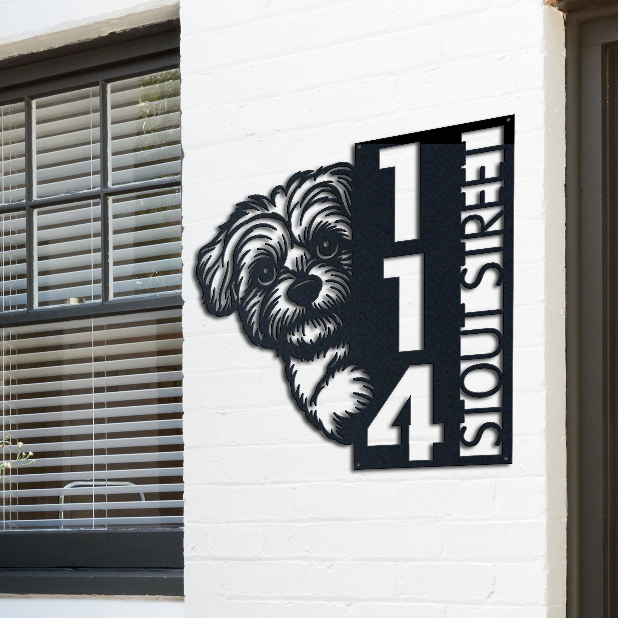 Maltipoo Address Sign | Custom Metal Vertical House Number Plaque | Pet Owner Gift