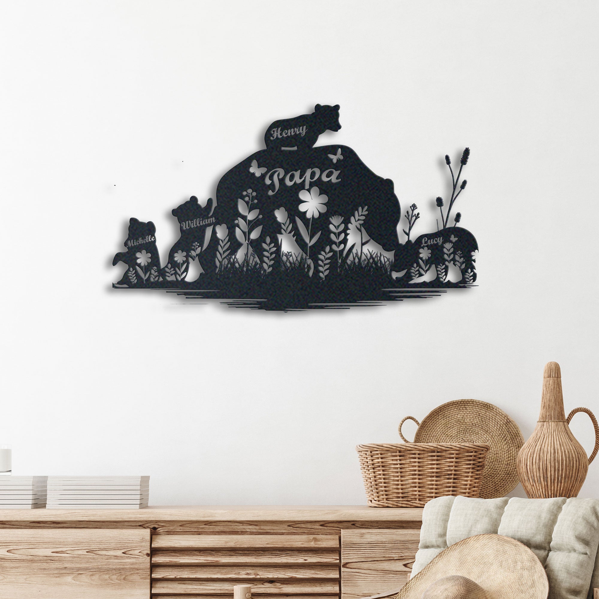 Mama Papa Bear Metal Wall Art Gift For Mother's Day Father's Day