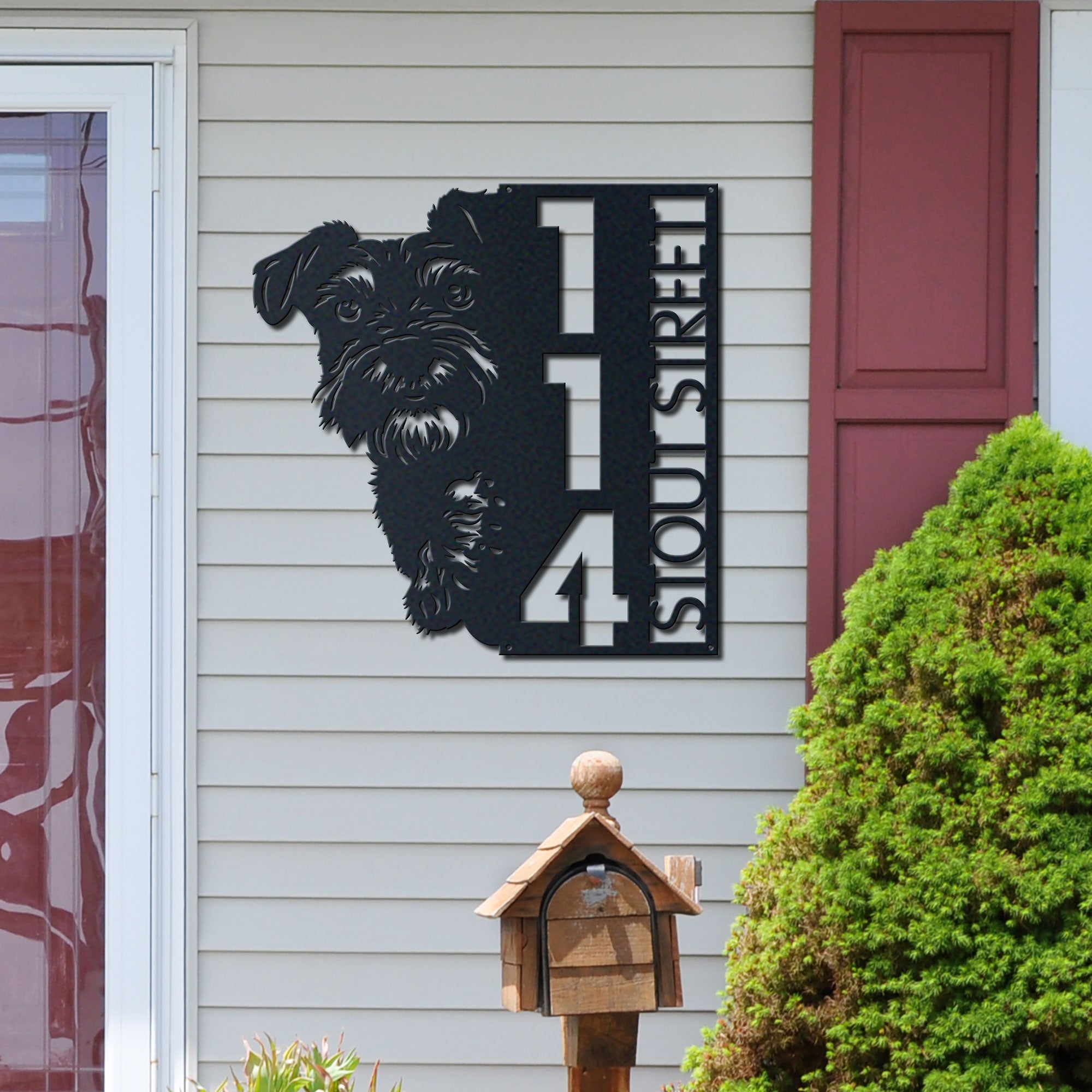 Miniature Schnauzer Address Sign | Custom Metal Vertical House Number Plaque | Pet Owner Gift