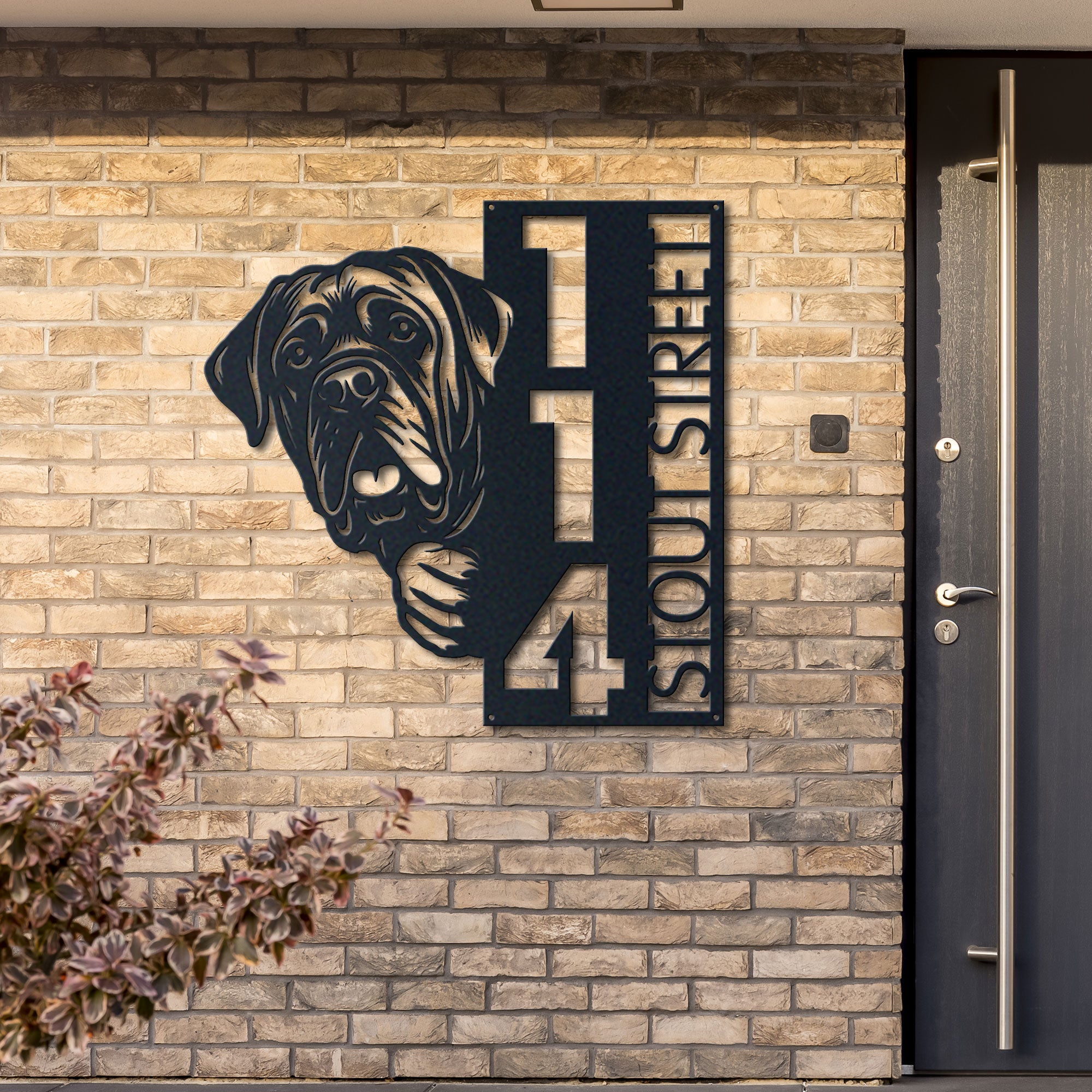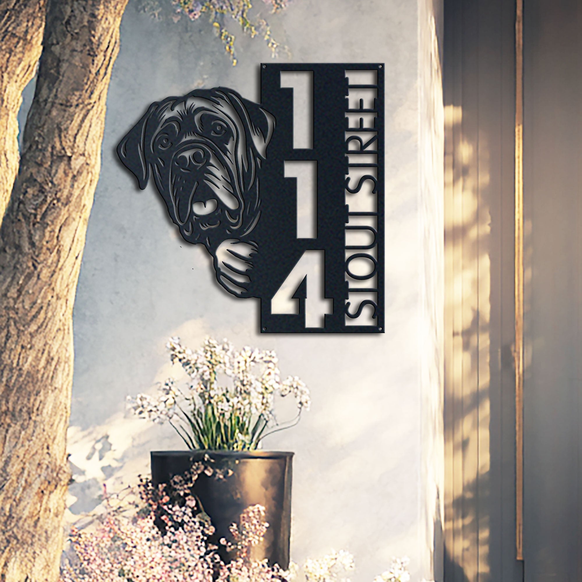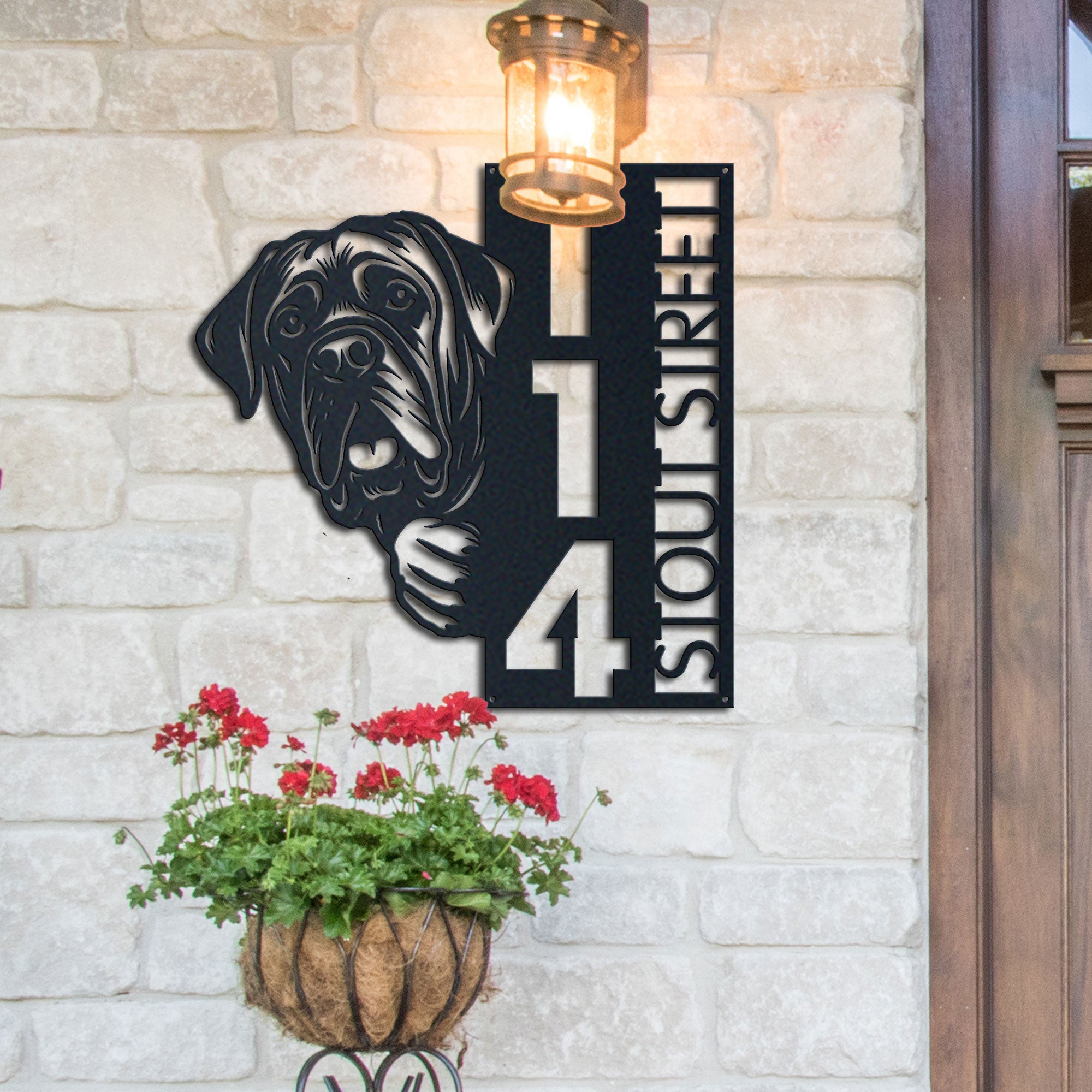Neapolitan Mastiff Address Sign | Custom Metal Vertical House Number Plaque | Pet Owner Gift