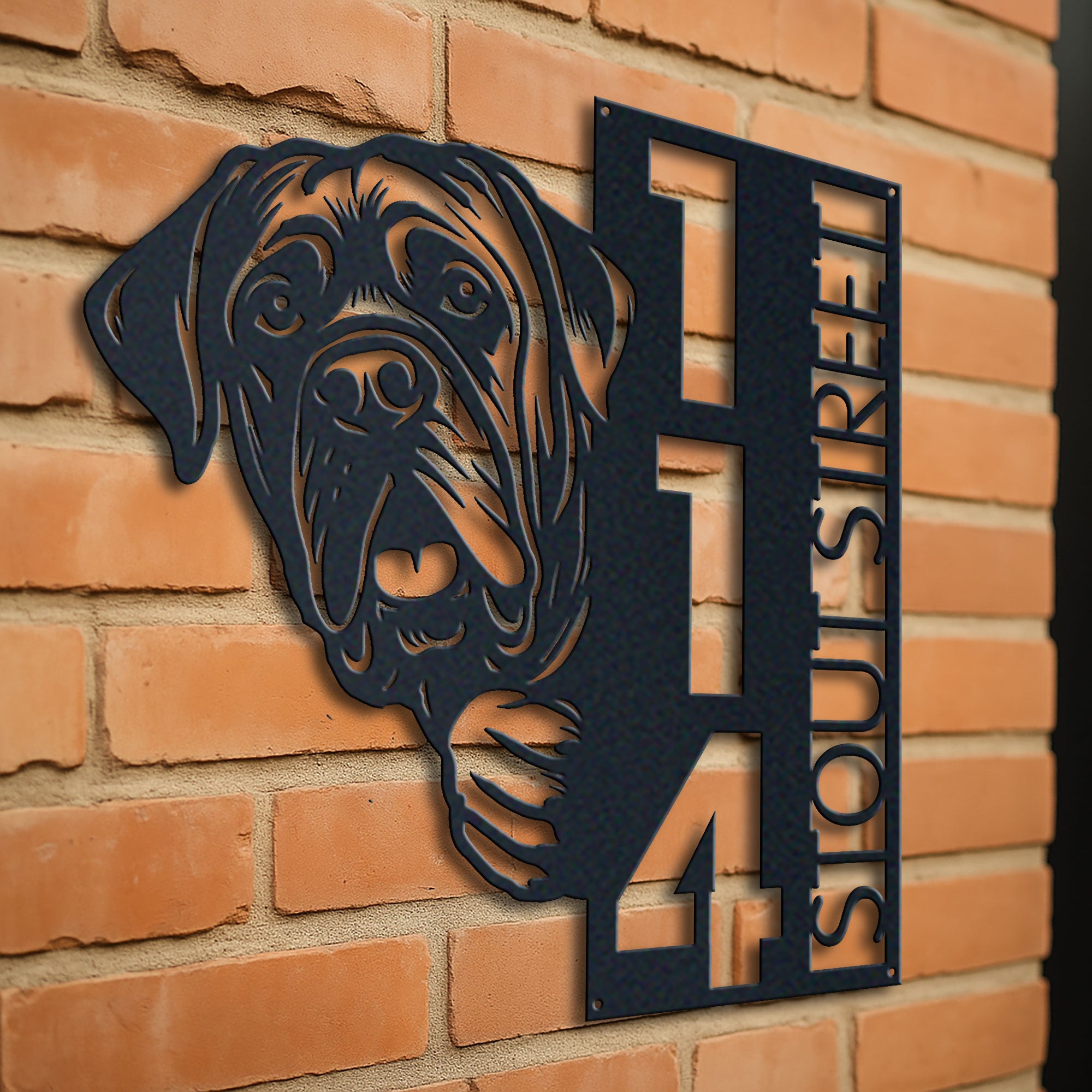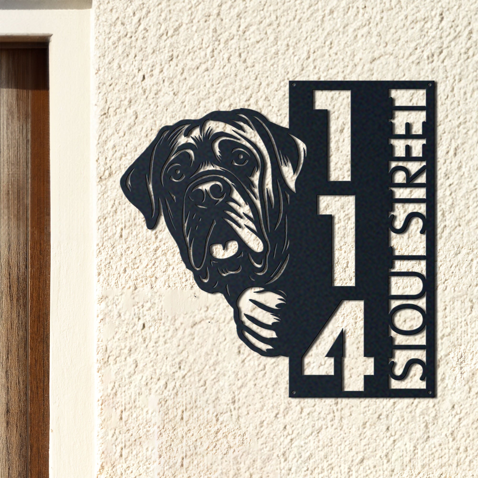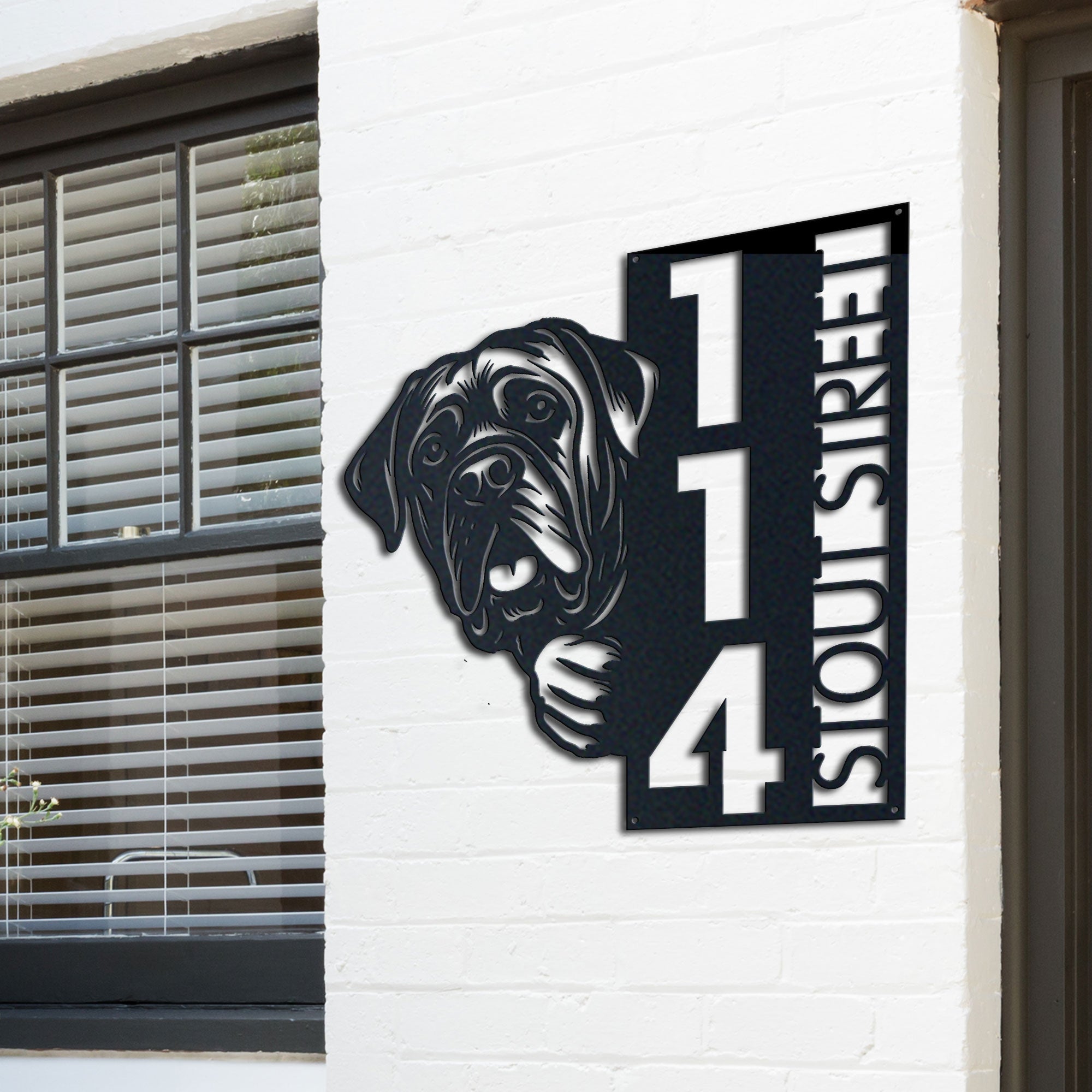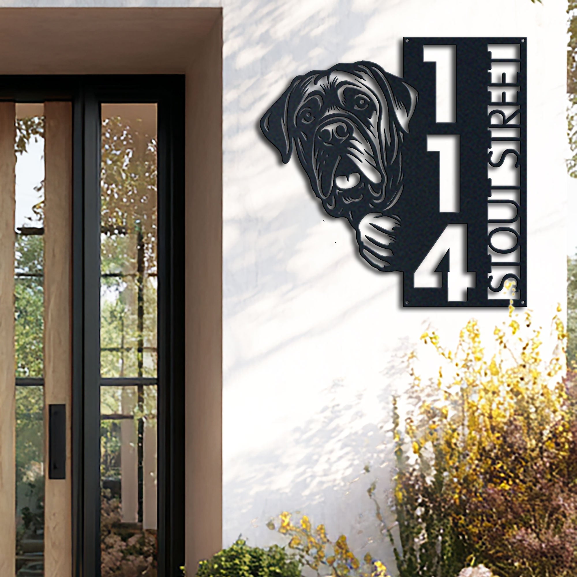 Neapolitan Mastiff Address Sign | Custom Metal Vertical House Number Plaque | Pet Owner Gift