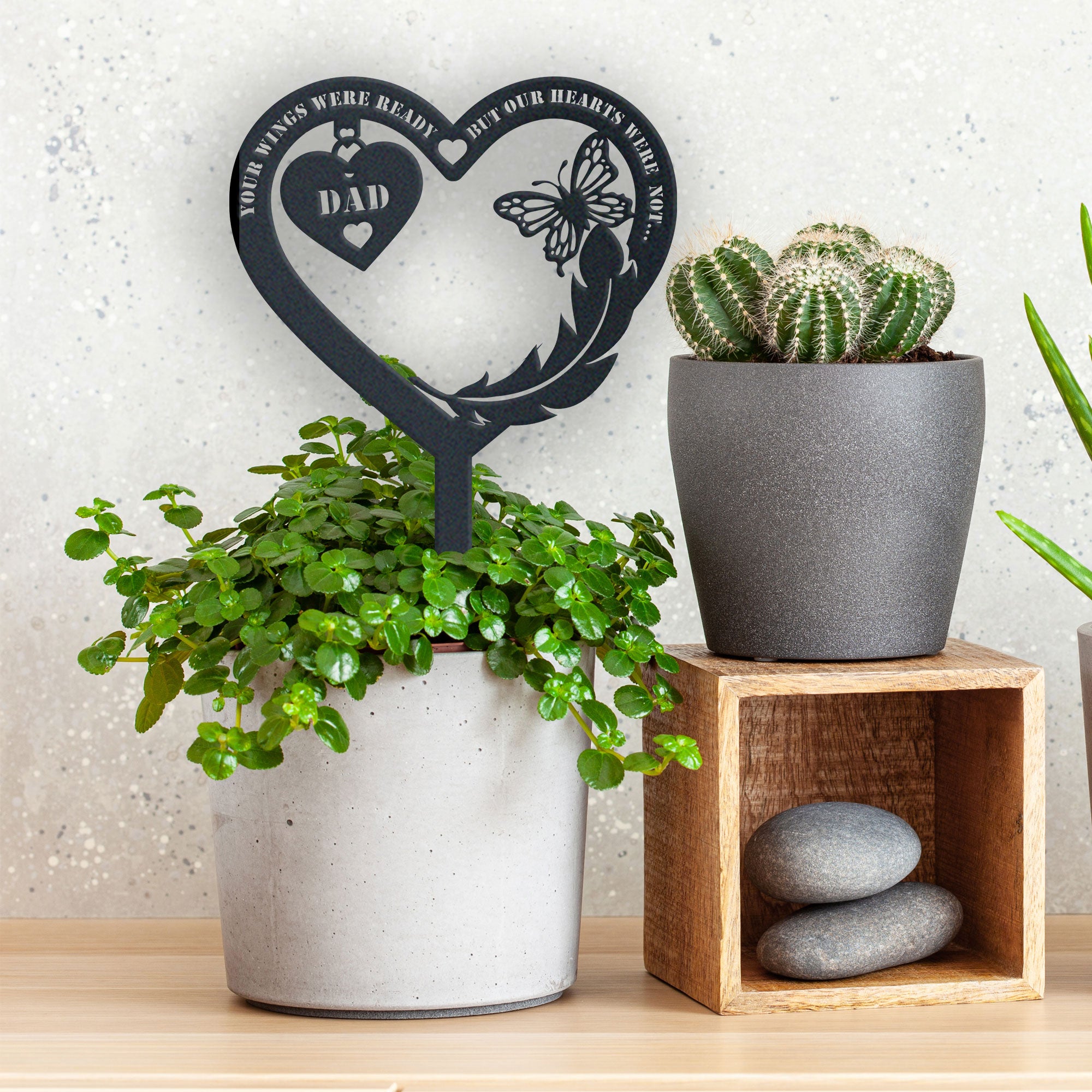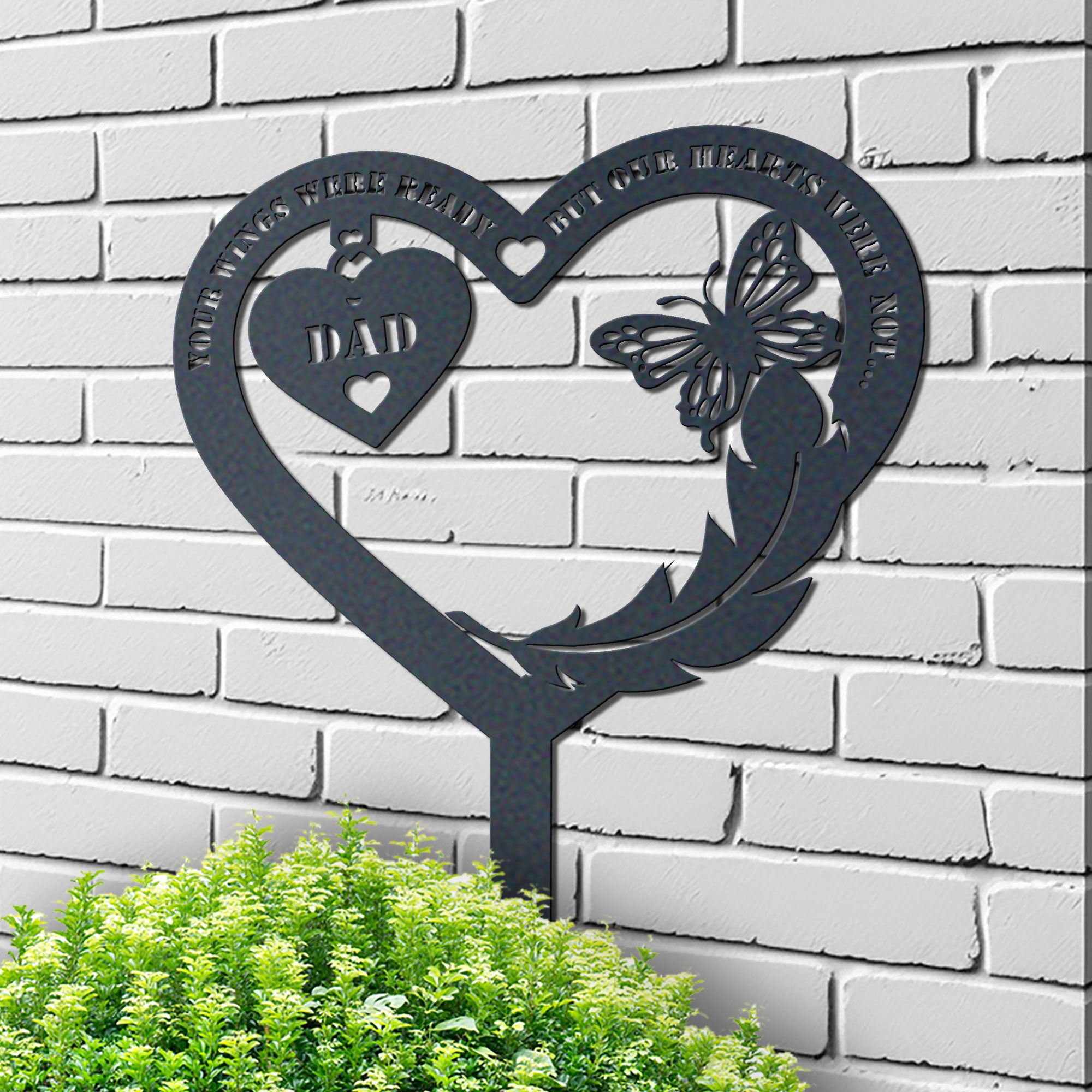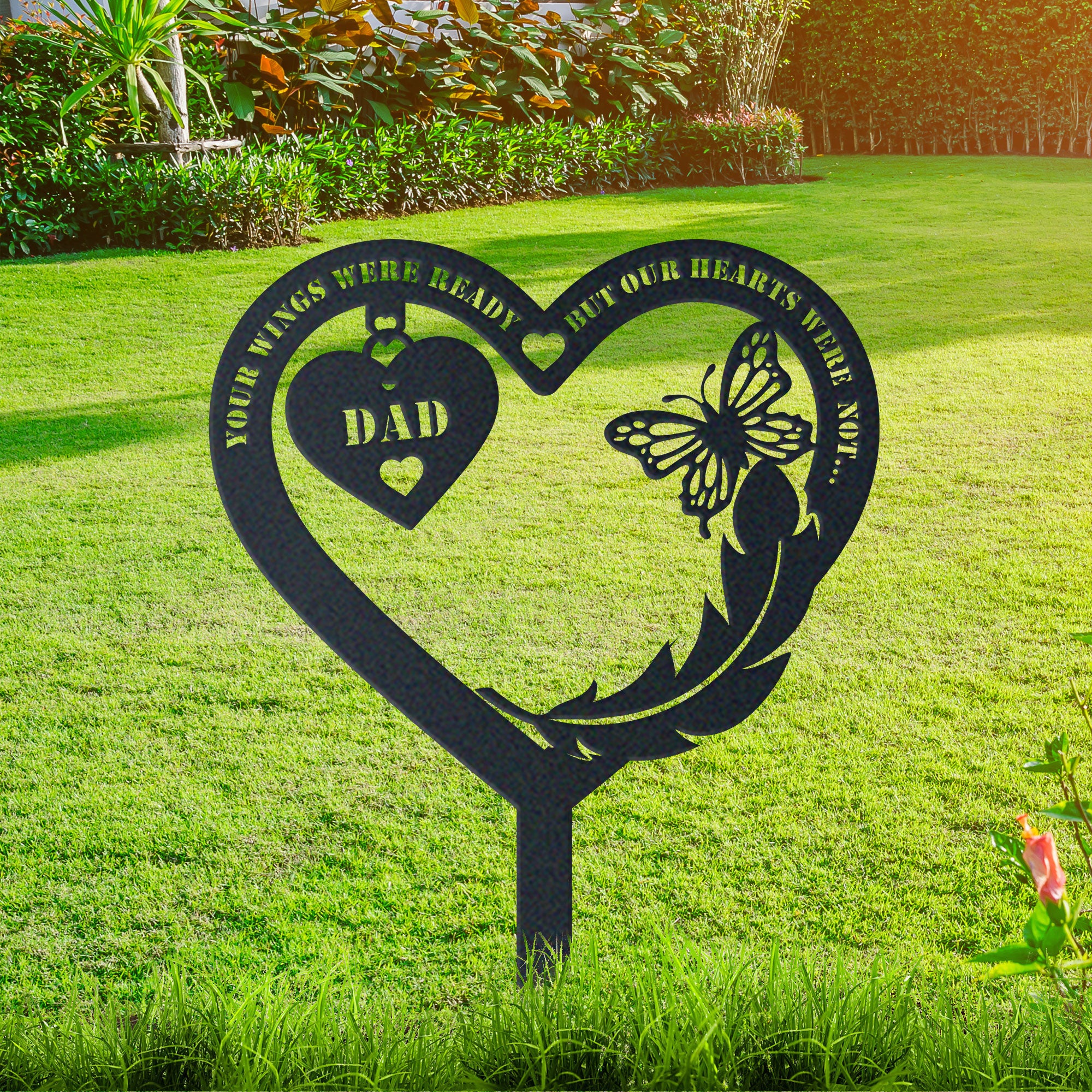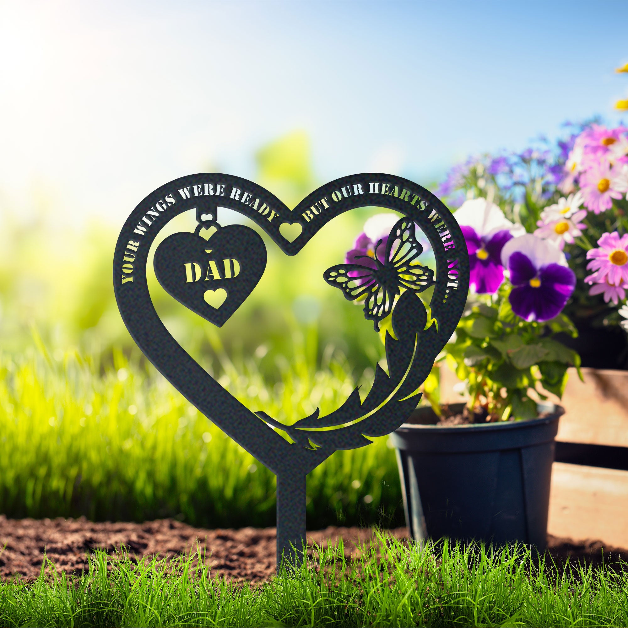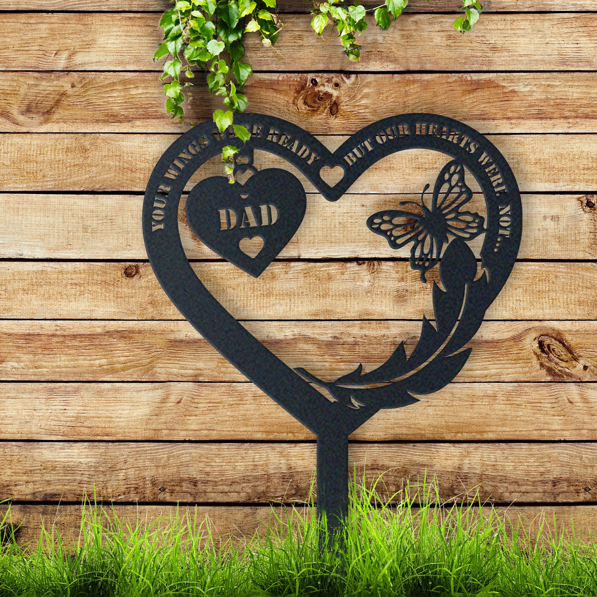 Honor the memory of your beloved parent with a beautifully crafted memorial garden stake. Made from high-quality, weather-resistant metal, this custom garden marker stands as a durable tribute to your loved ones. Measuring approximately 12 inches in height and 5 inches in width, it fits perfectly in any garden or outdoor space. Each stake is carefully hand-cut, ensuring a unique and personal touch that celebrates the memory of your dad or mom.