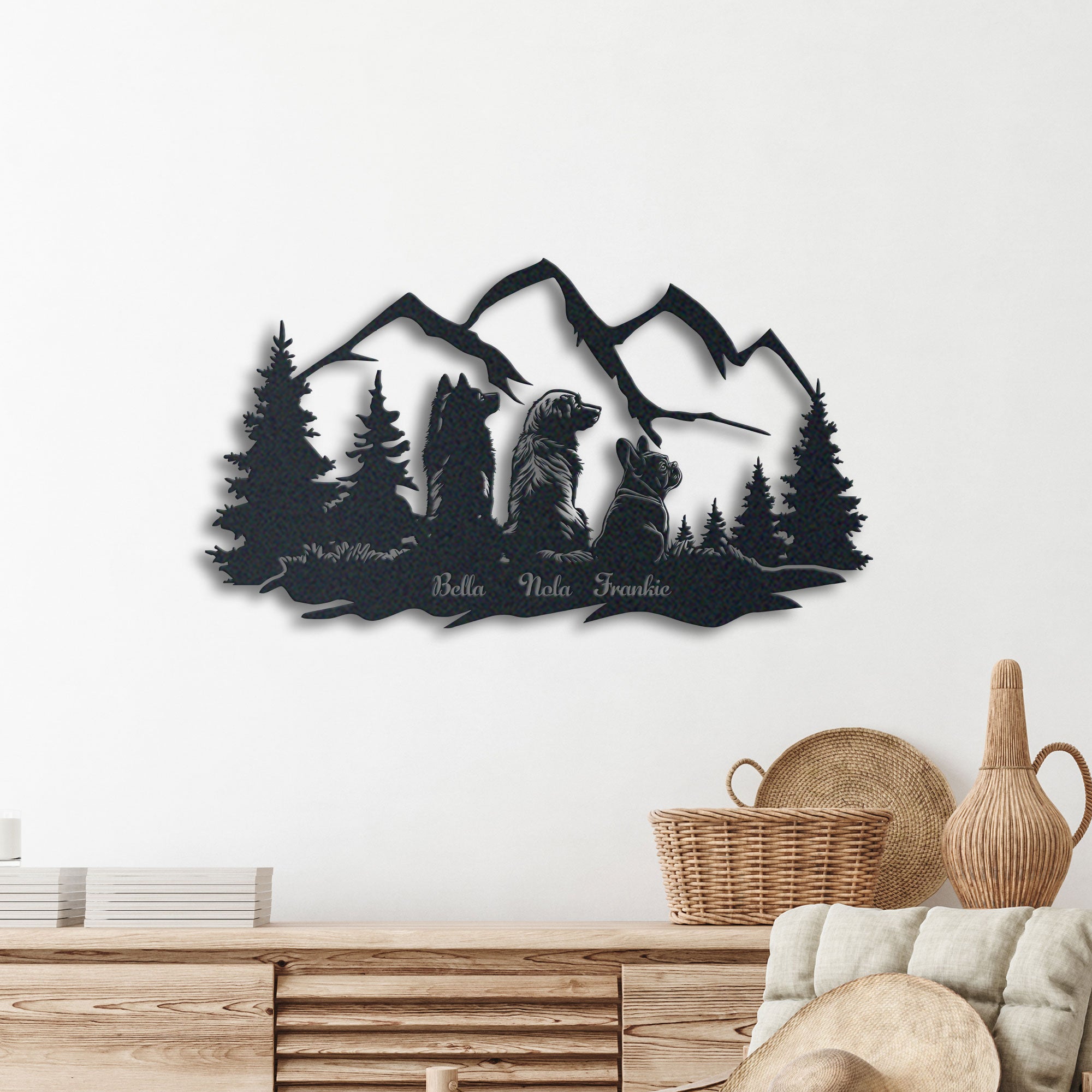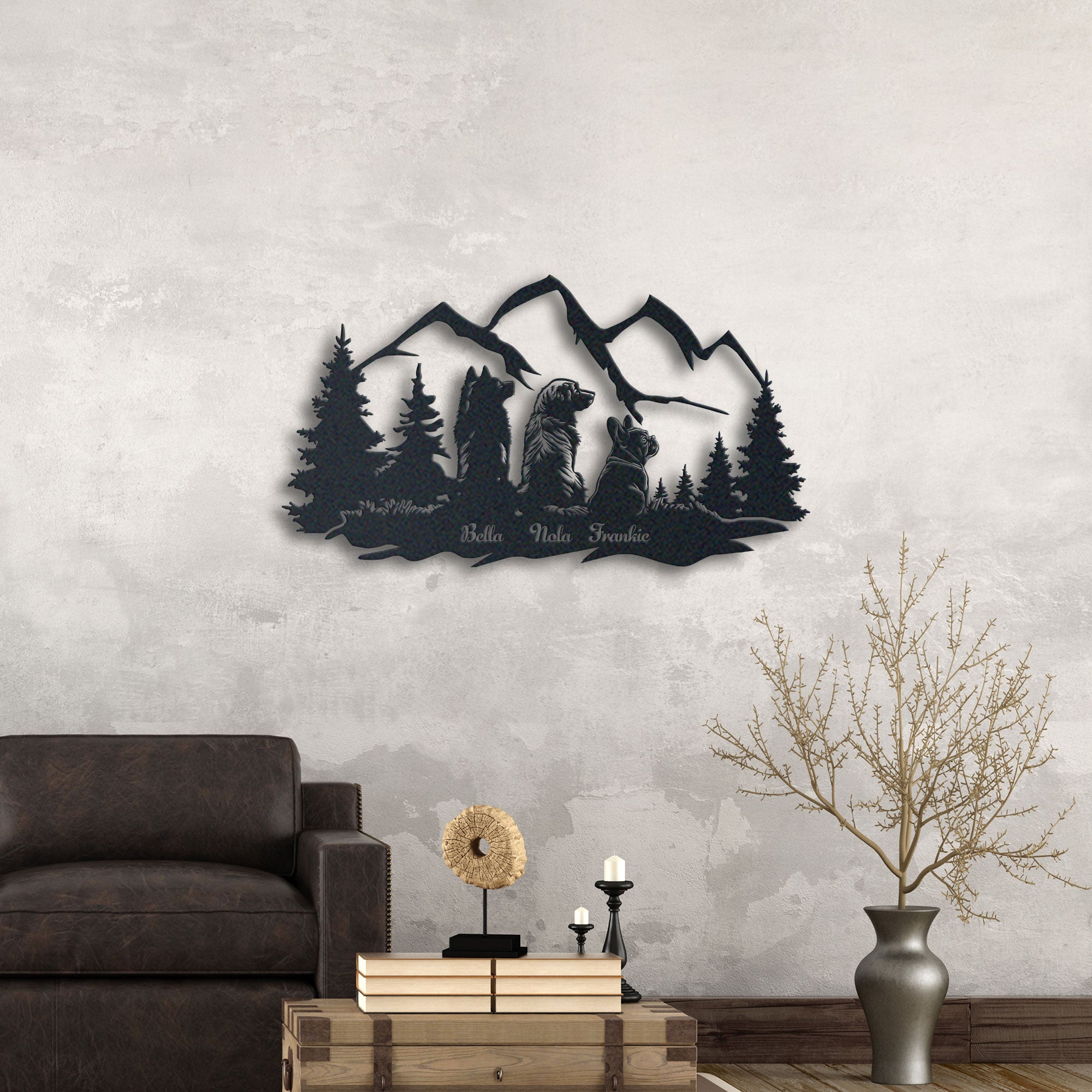 Pine Tree And Dogs Metal Wall Art, Mountain Wall Art Home Decor Gift, Ideal Gift for Dog Lovers