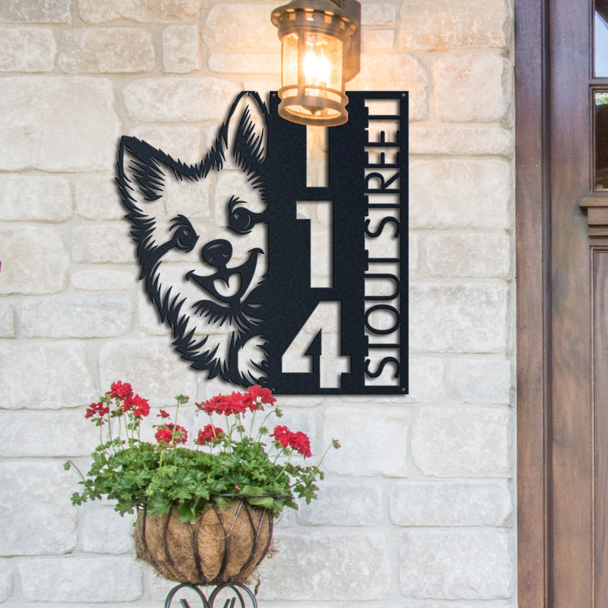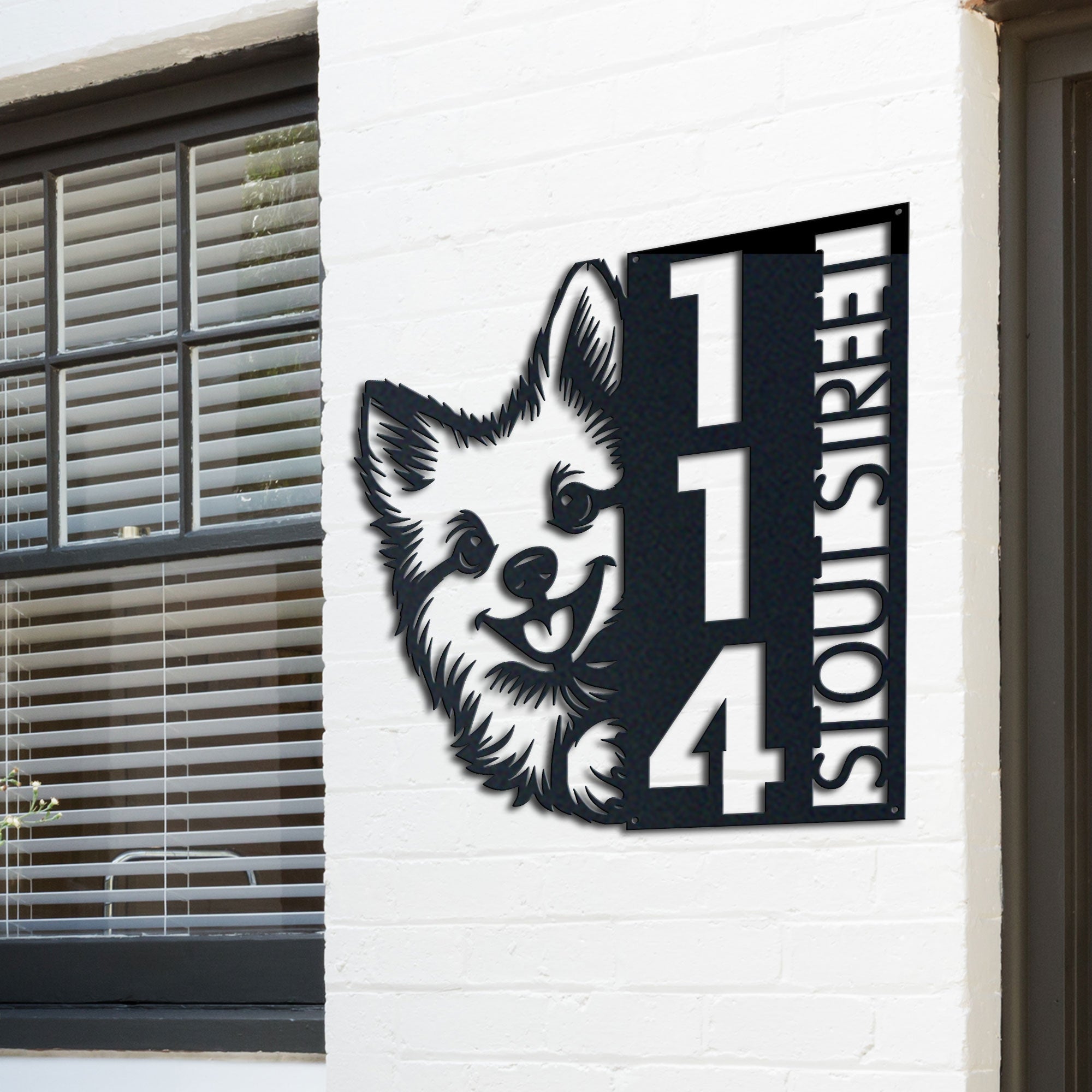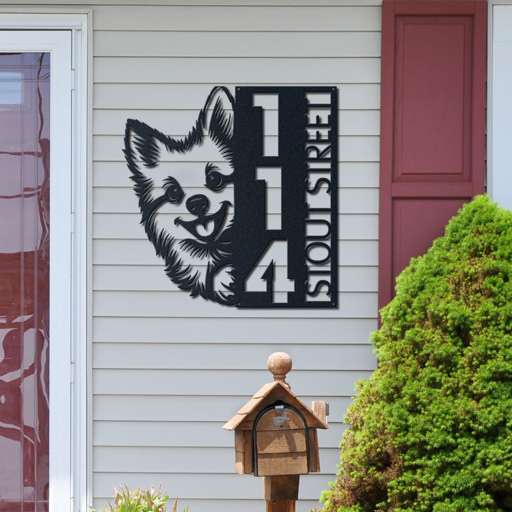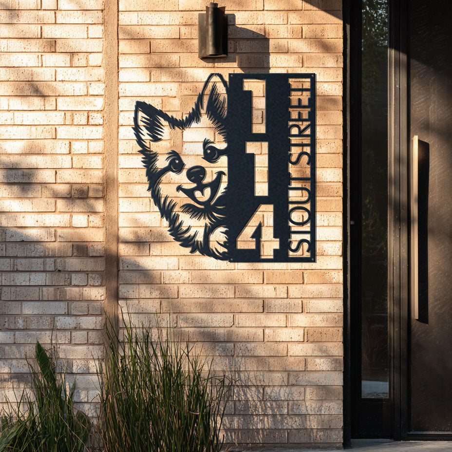 Pomsky Address Sign | Custom Metal Vertical House Number Plaque | Pet Owner Gift