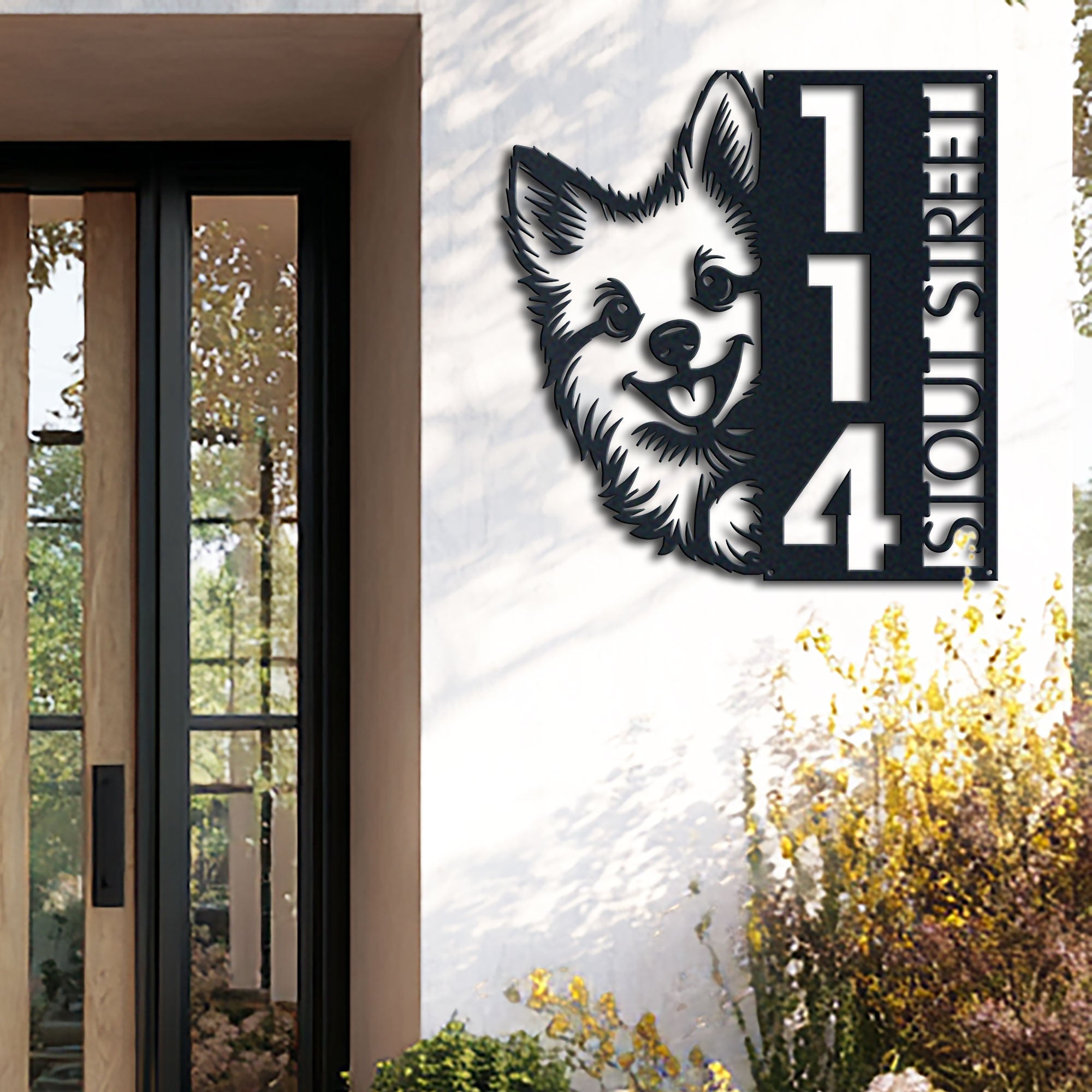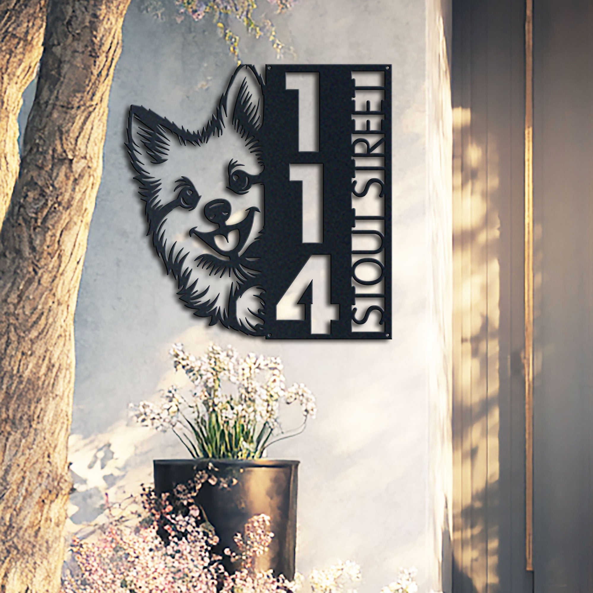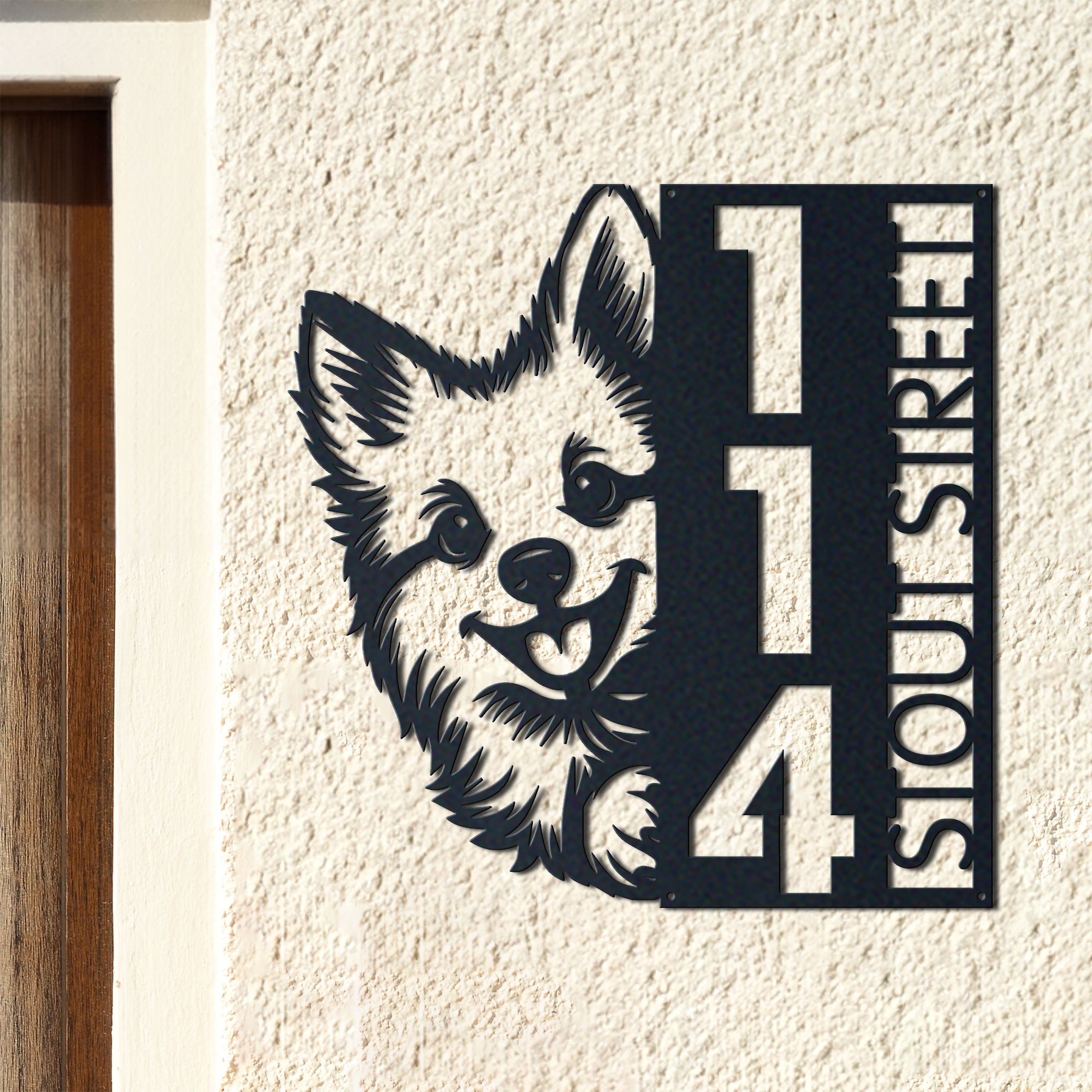 Pomsky Address Sign | Custom Metal Vertical House Number Plaque | Pet Owner Gift