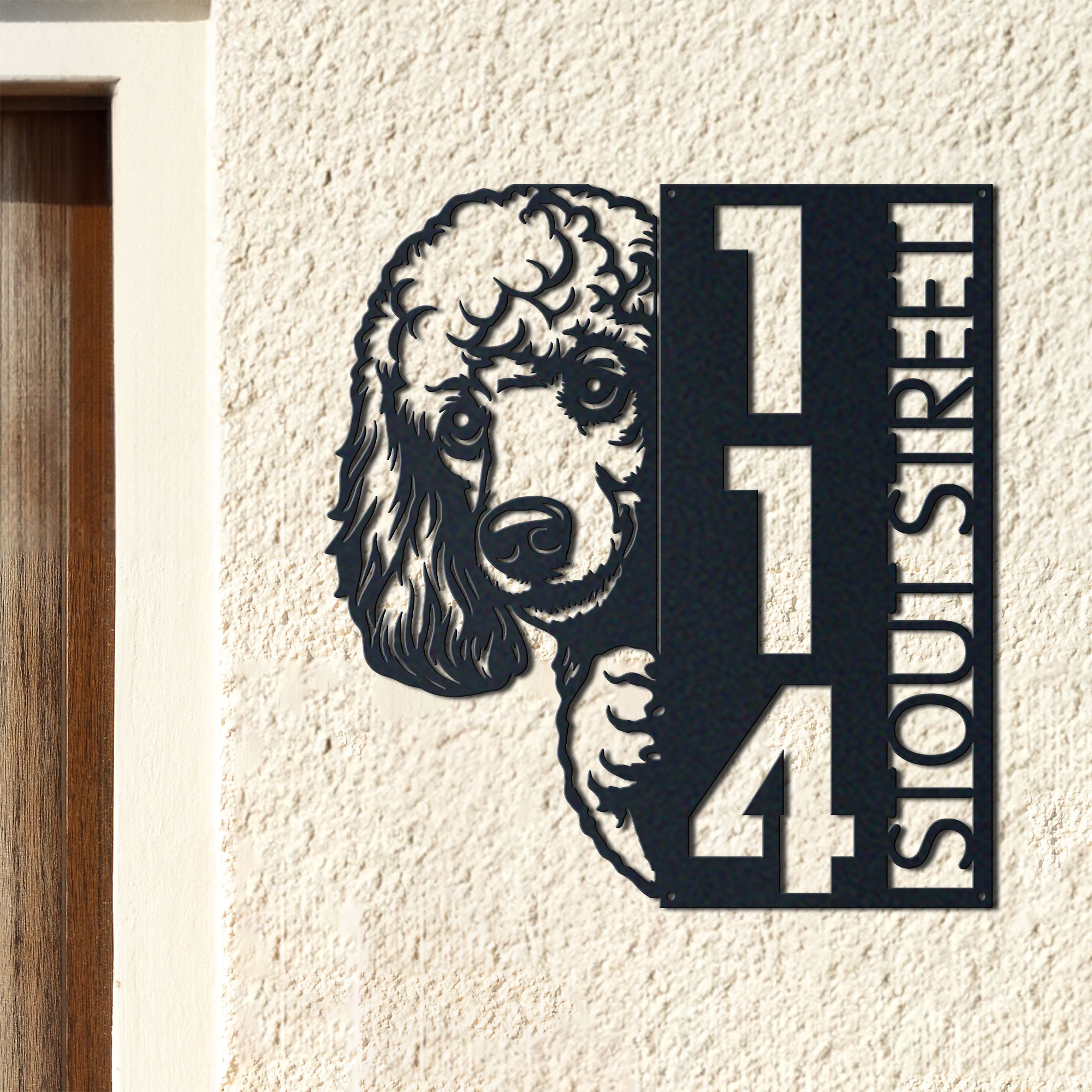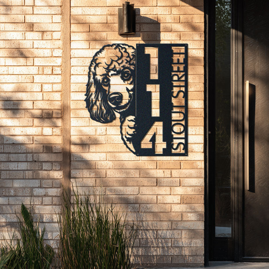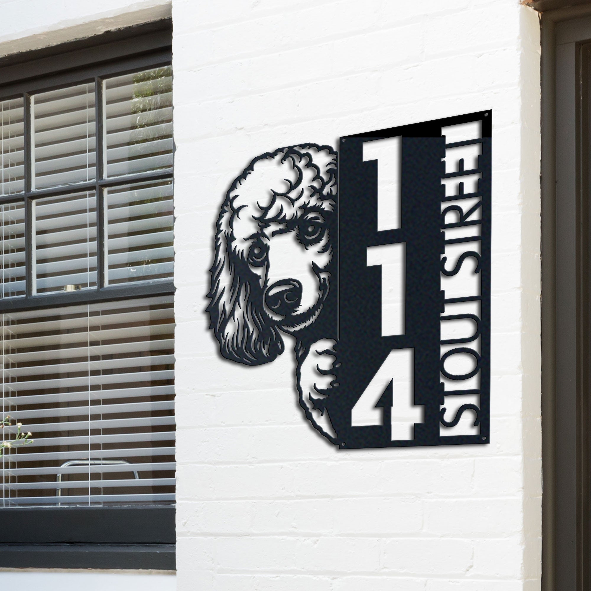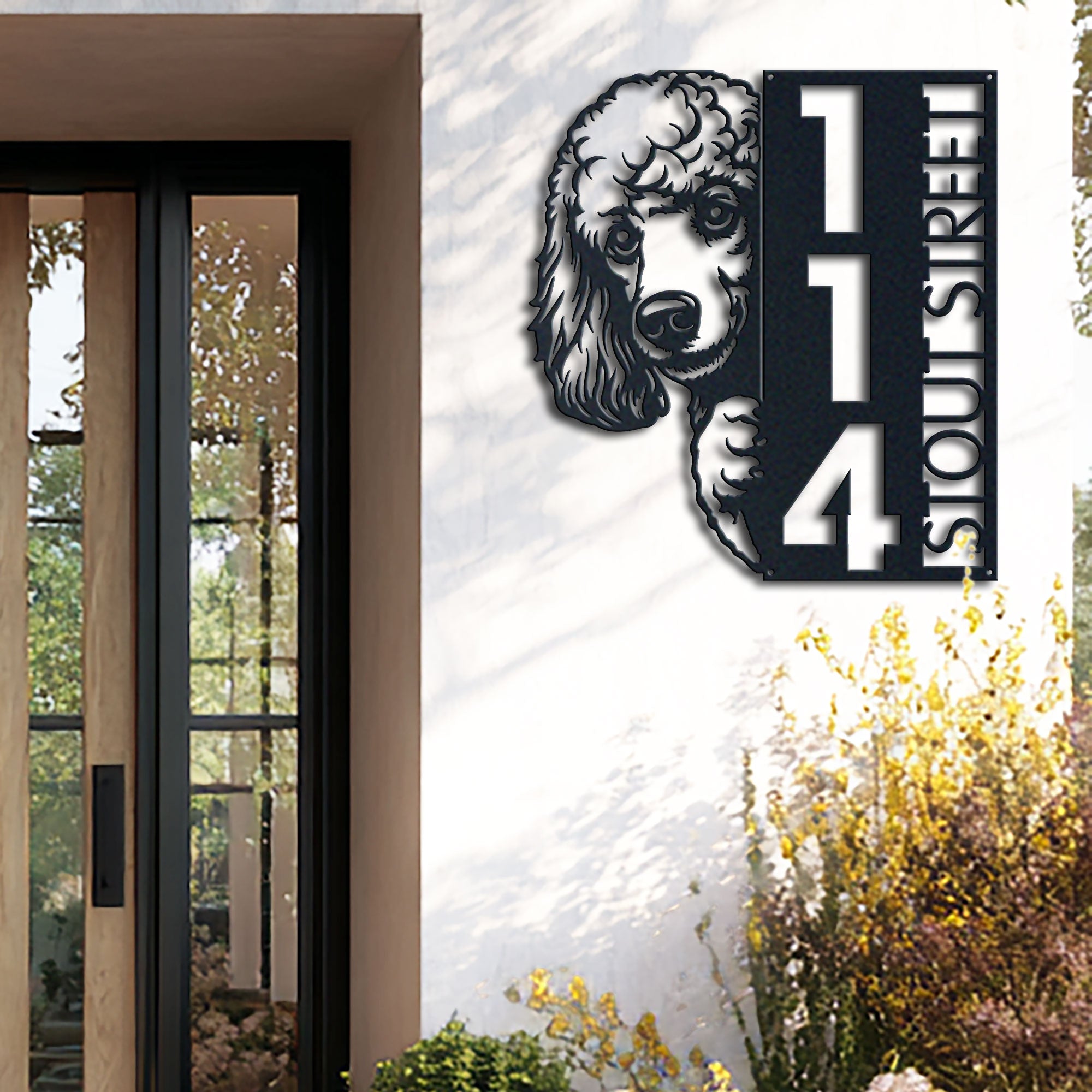Poodle Address Sign | Custom Metal Vertical House Number Plaque | Pet Owner Gift 2