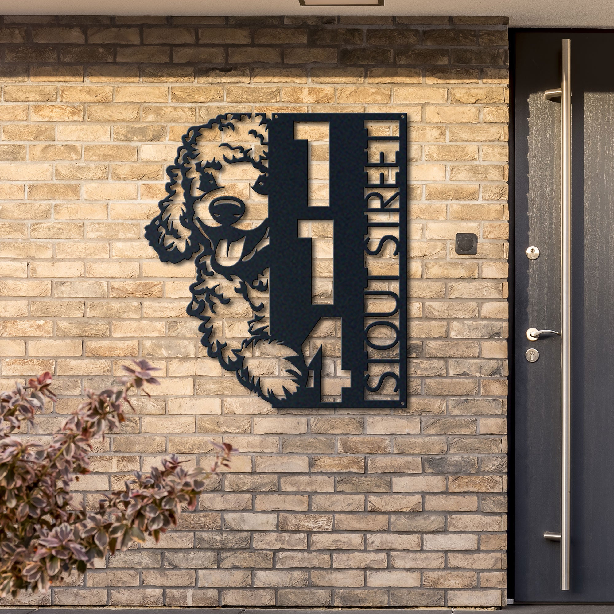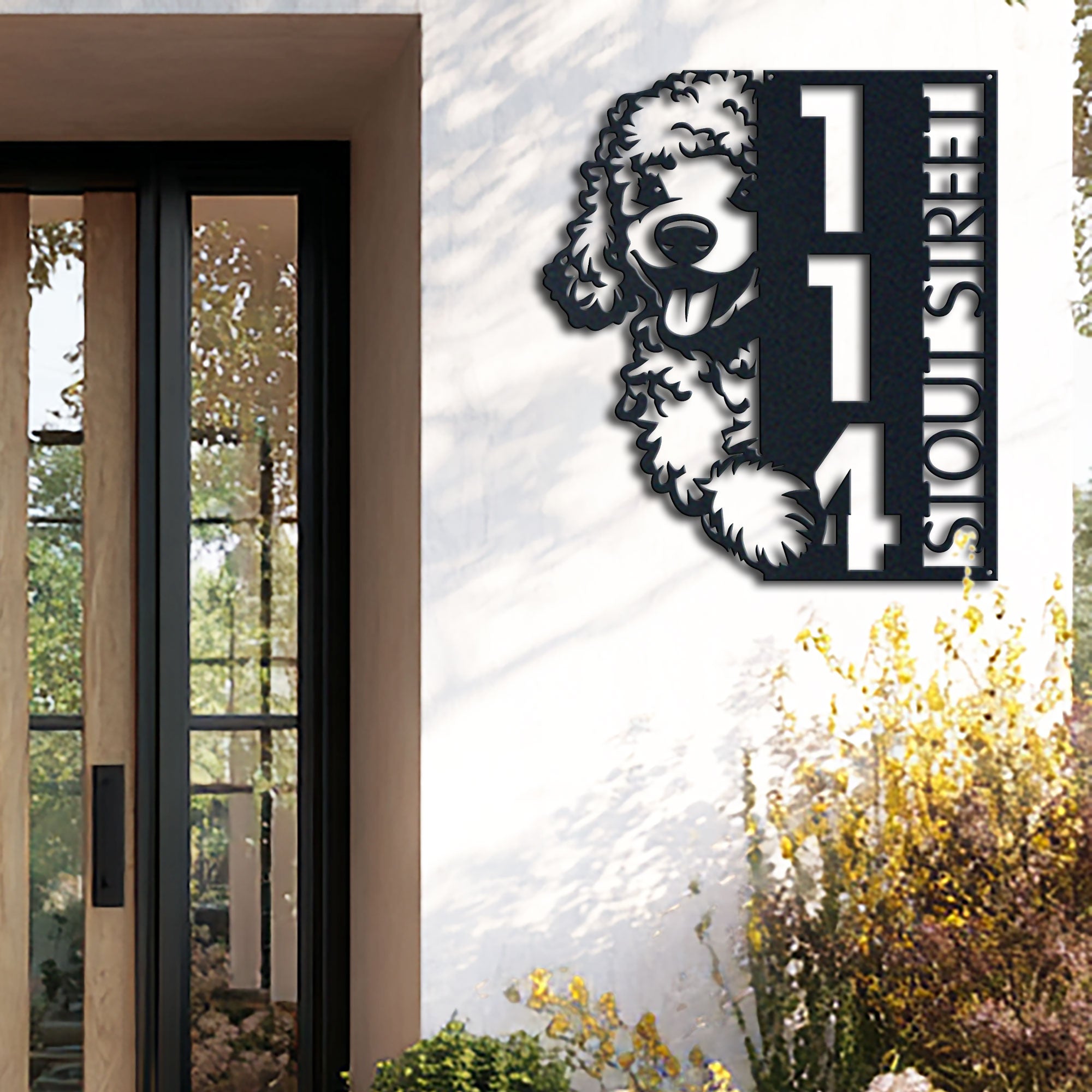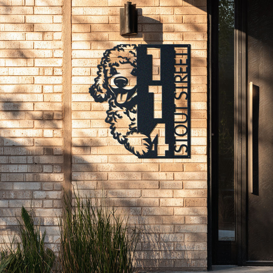 Poodle Address Sign | Custom Metal Vertical House Number Plaque | Pet Owner Gift