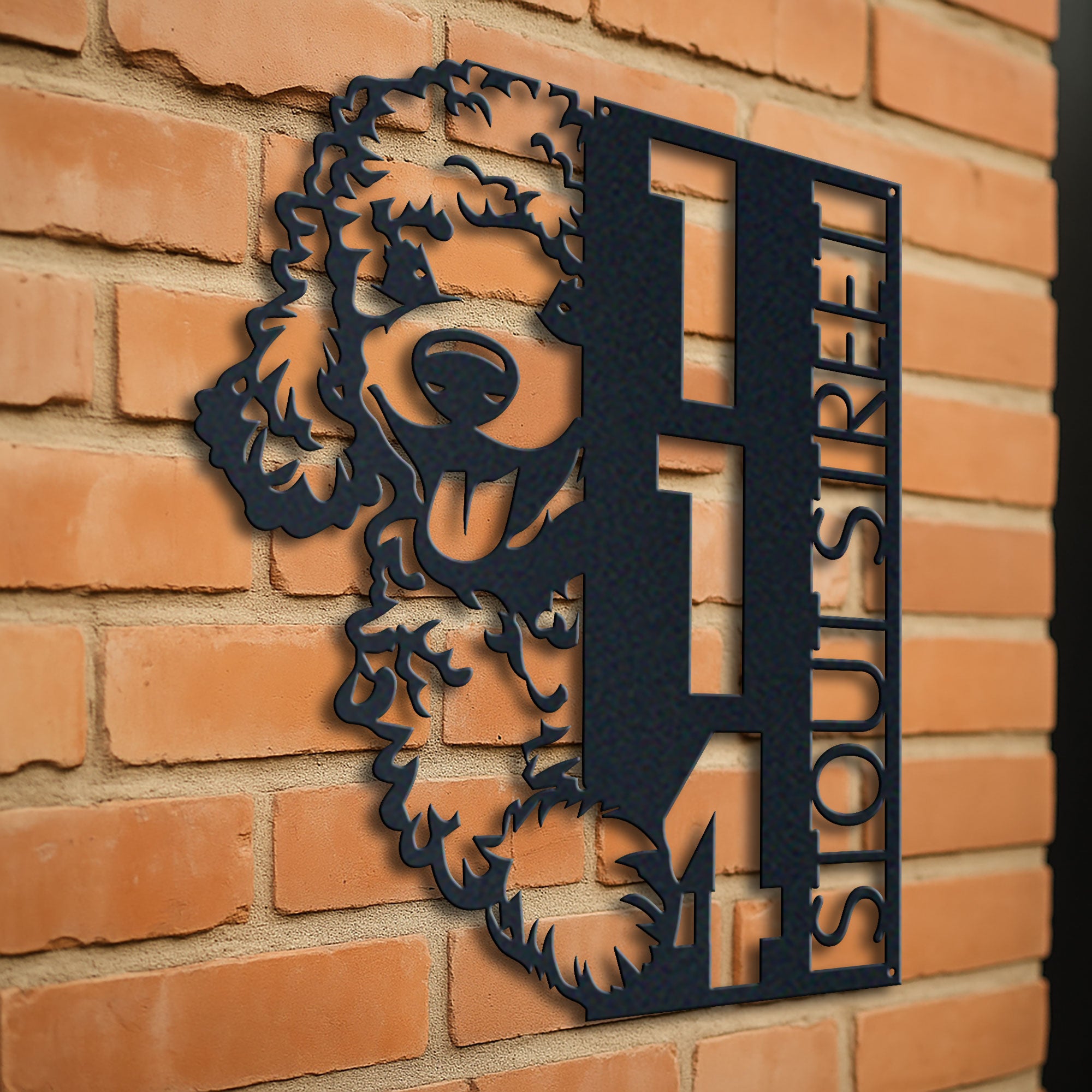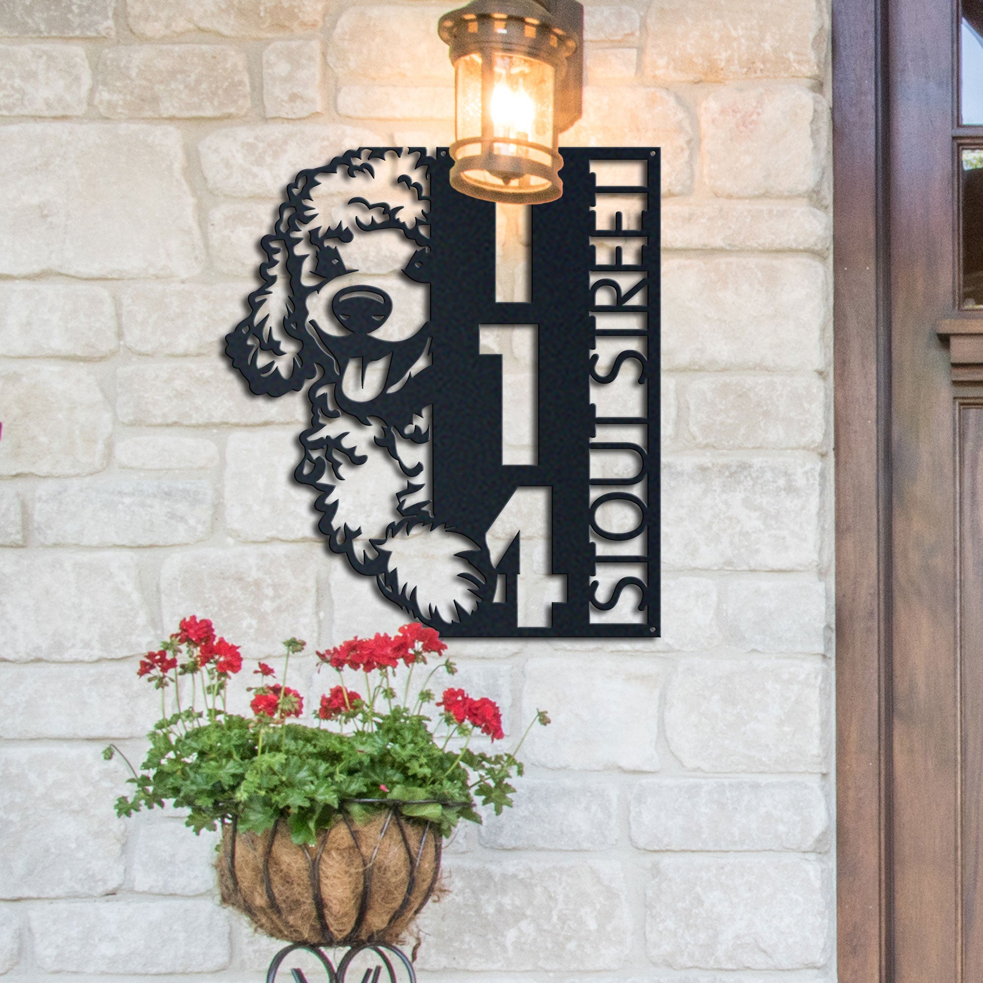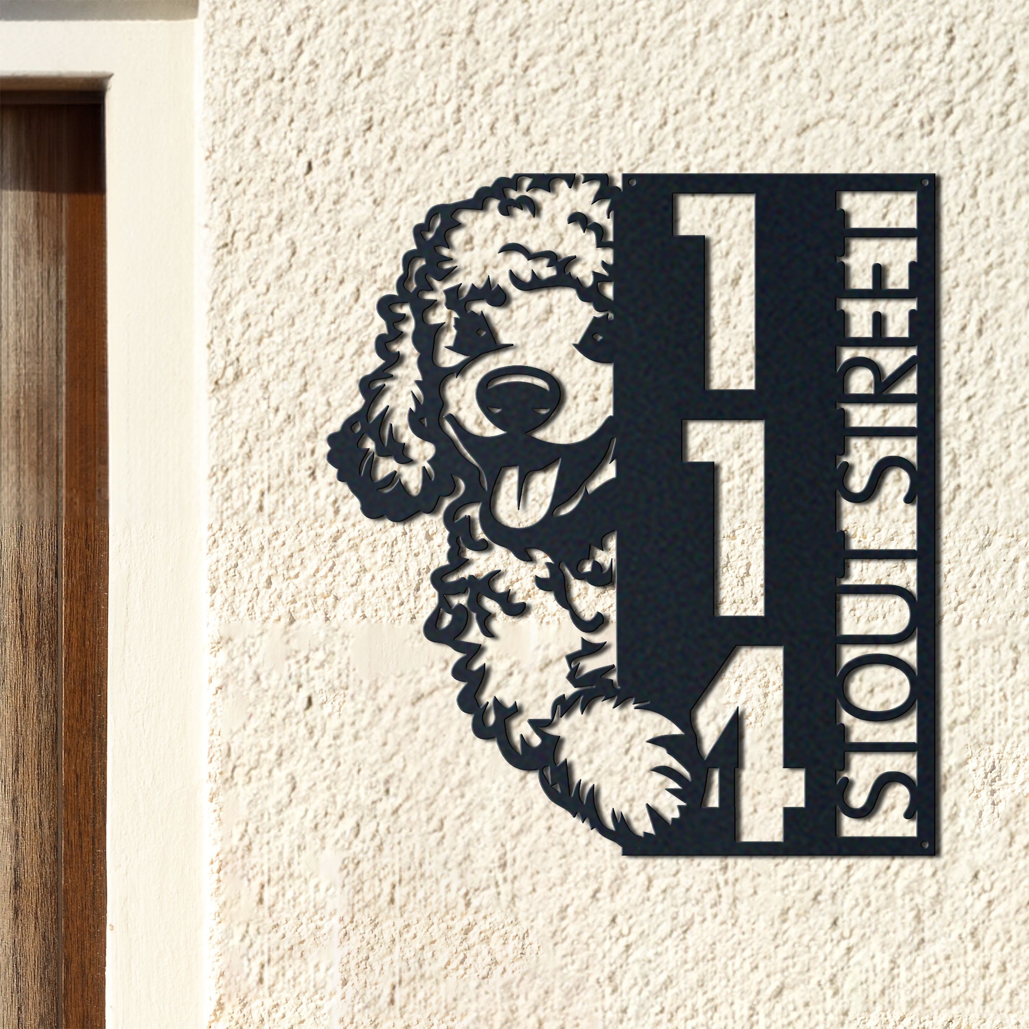 Poodle Address Sign | Custom Metal Vertical House Number Plaque | Pet Owner Gift