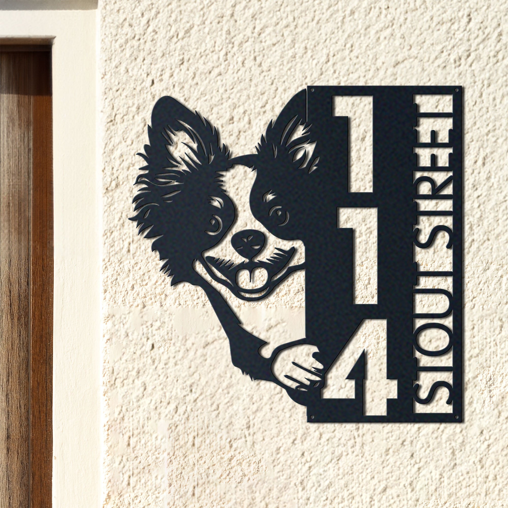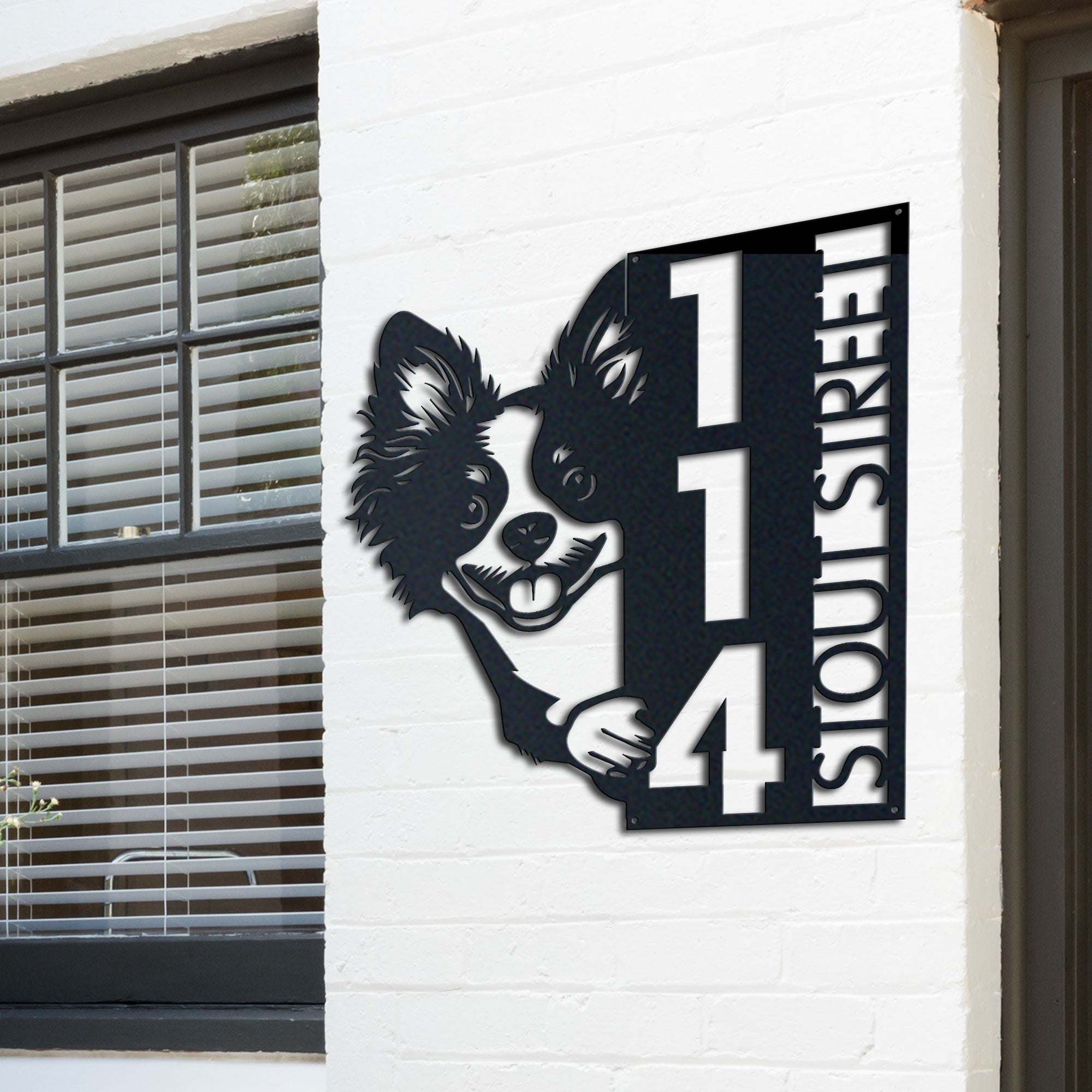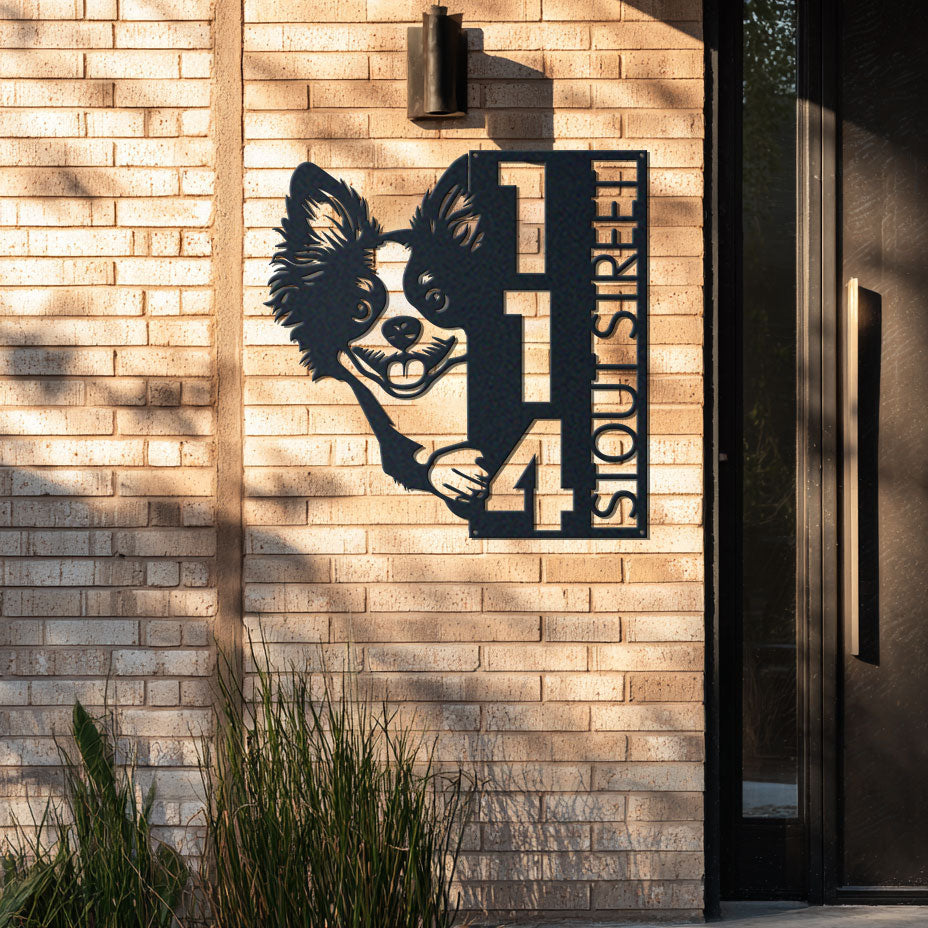 Russian Toy Address Sign | Custom Metal Vertical House Number Plaque | Pet Owner Gift