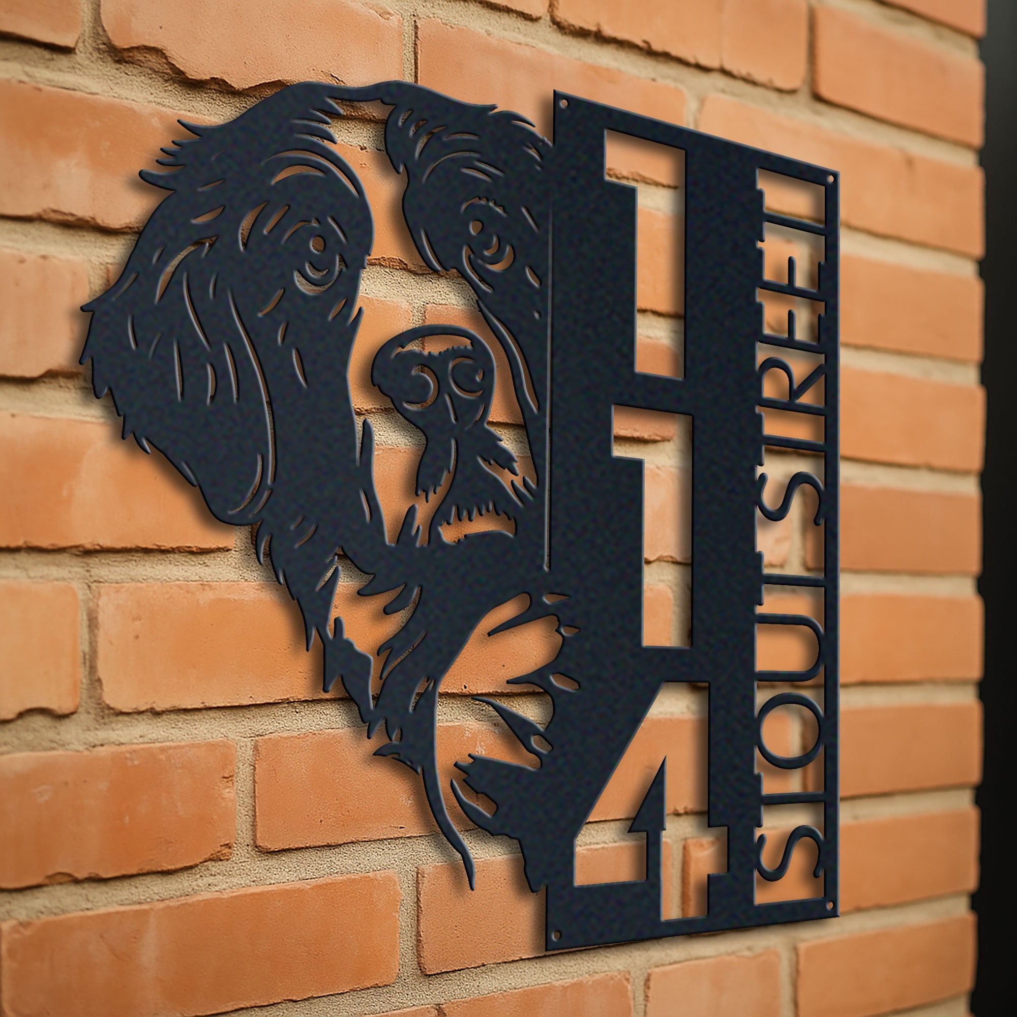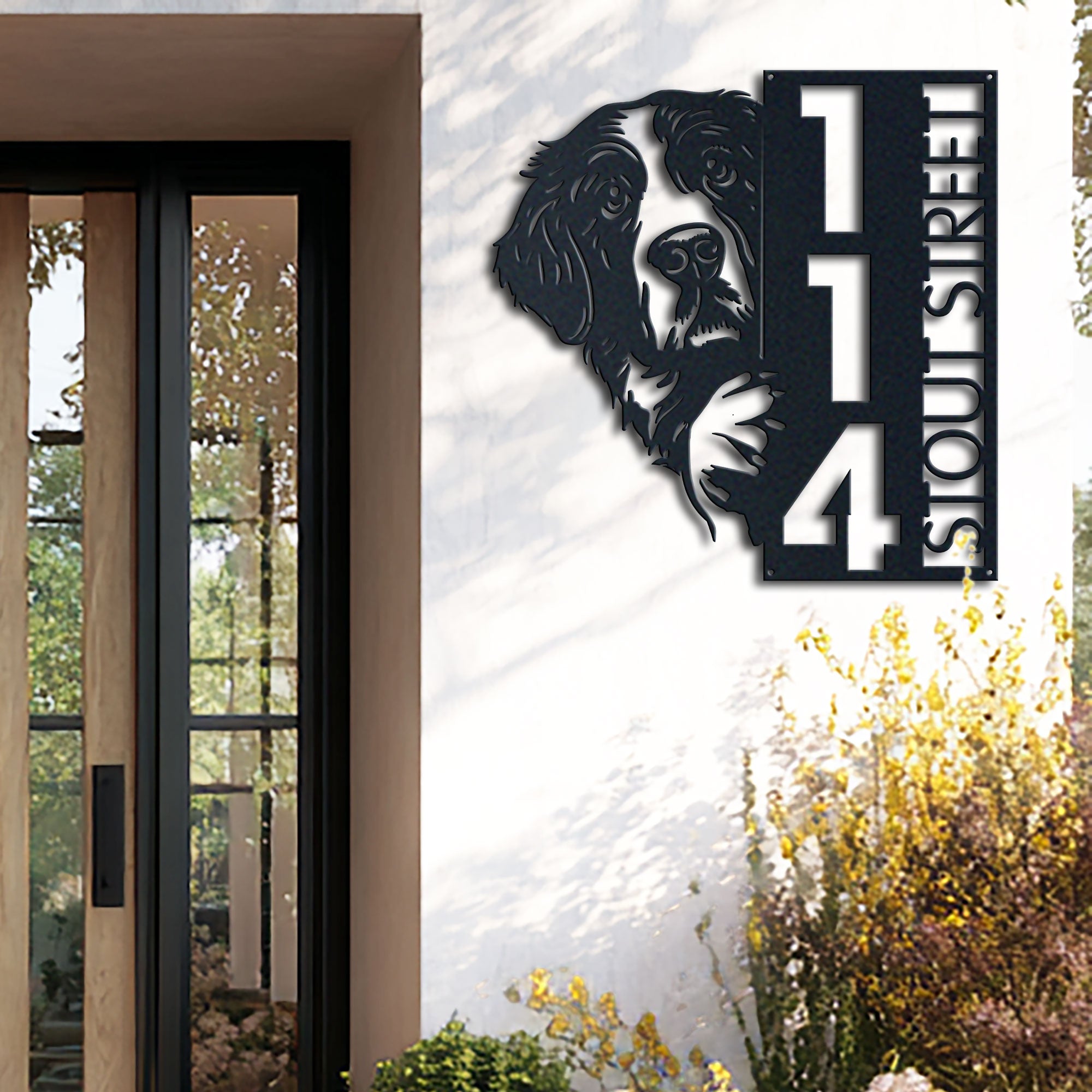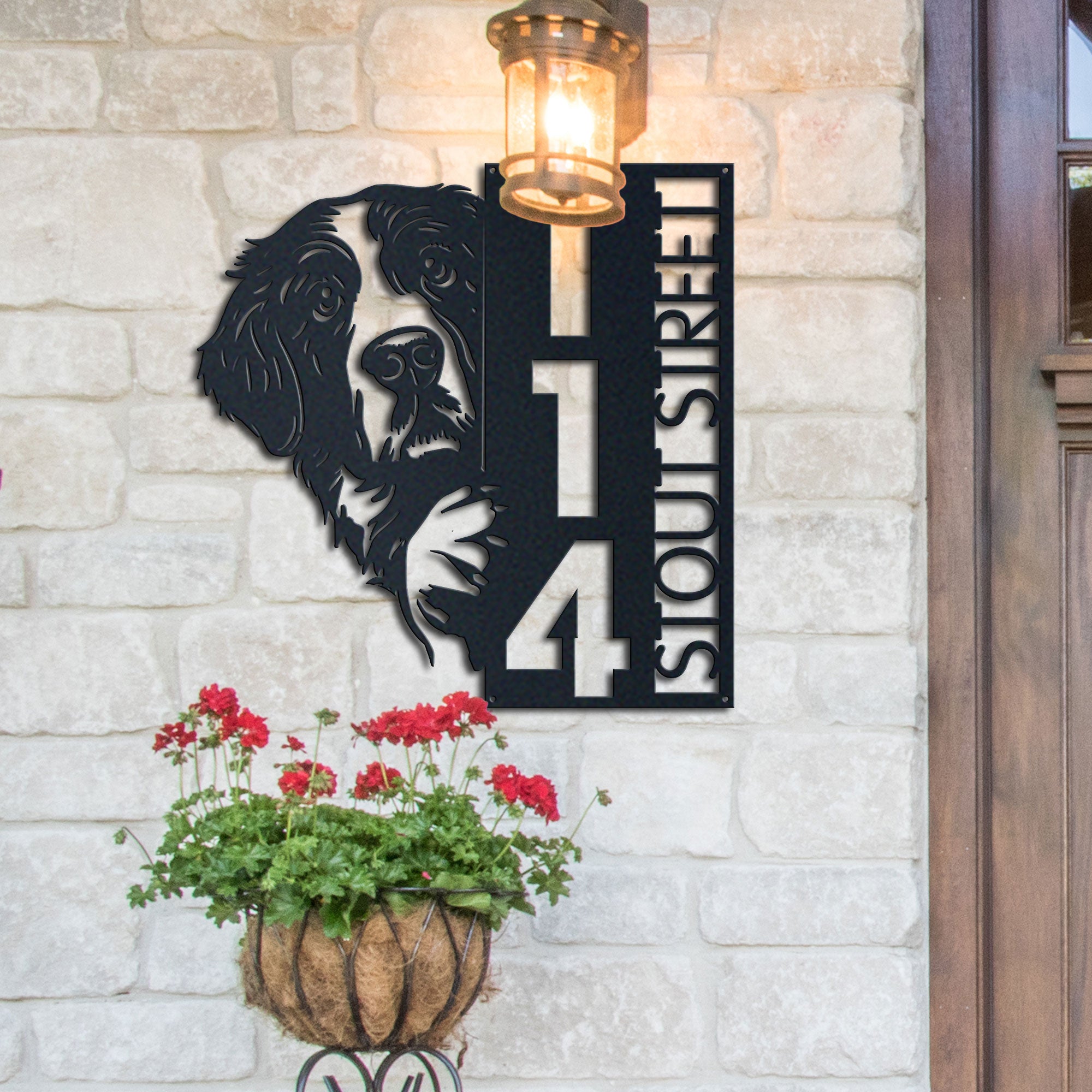 Saint Bernard Address Sign | Custom Metal Vertical House Number Plaque | Pet Owner Gift