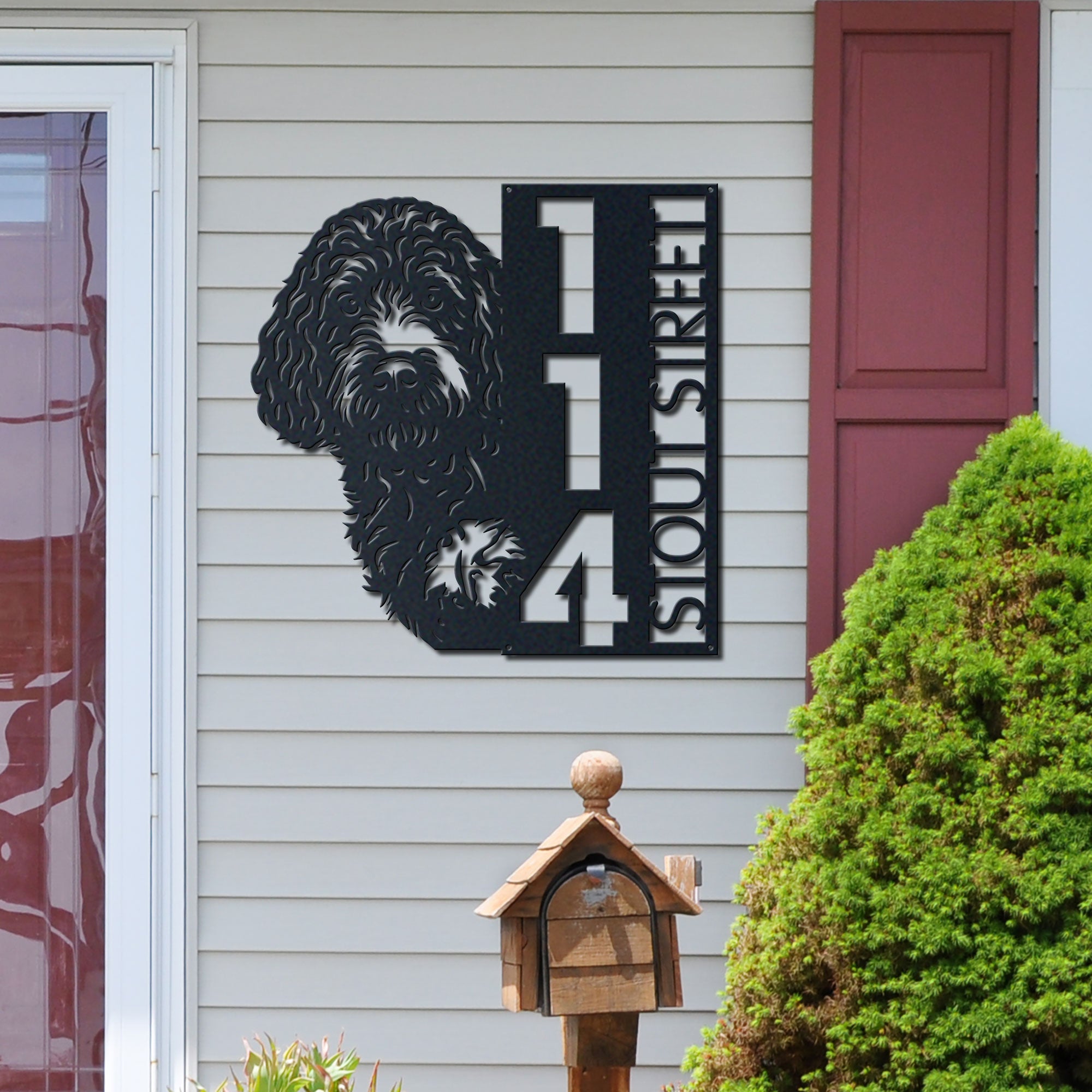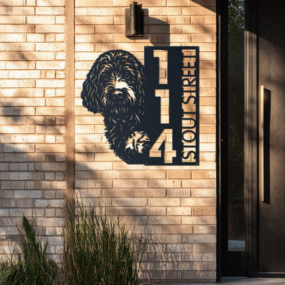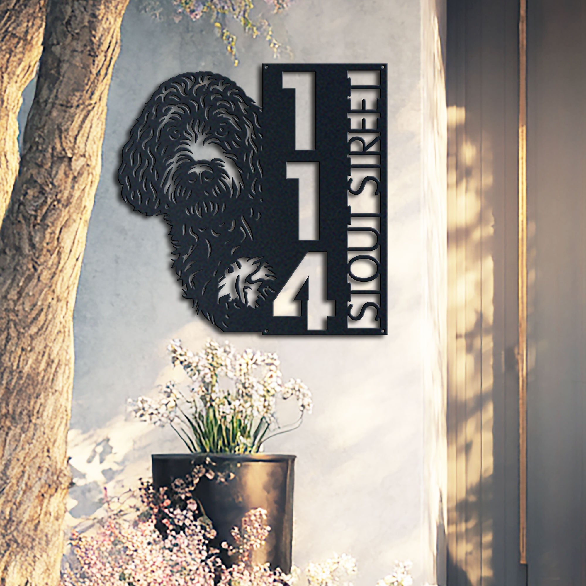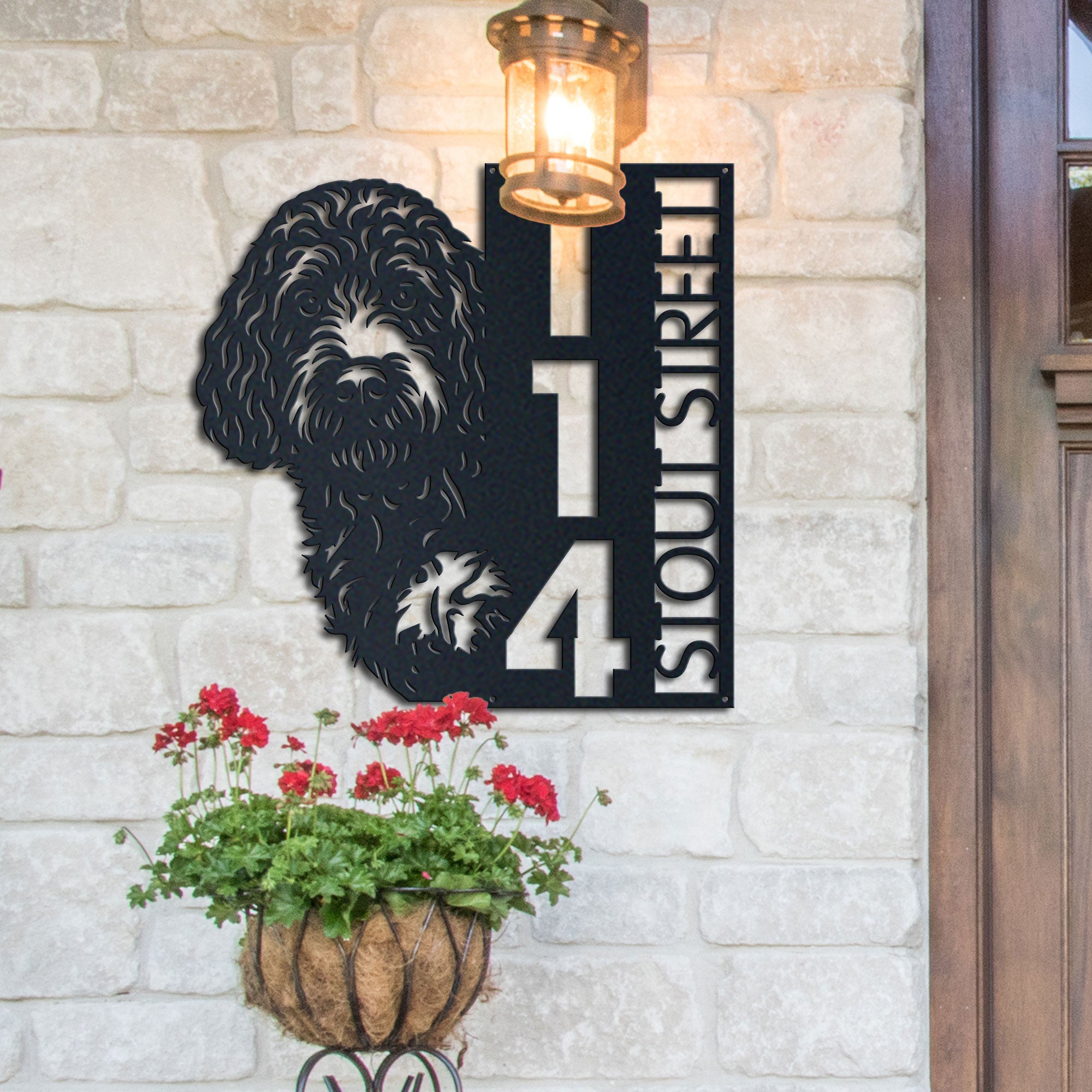 Saint Berdoodle Address Sign | Custom Metal Vertical House Number Plaque | Pet Owner Gift 2