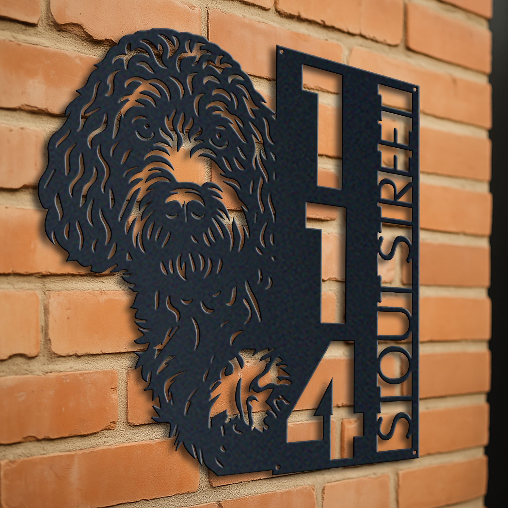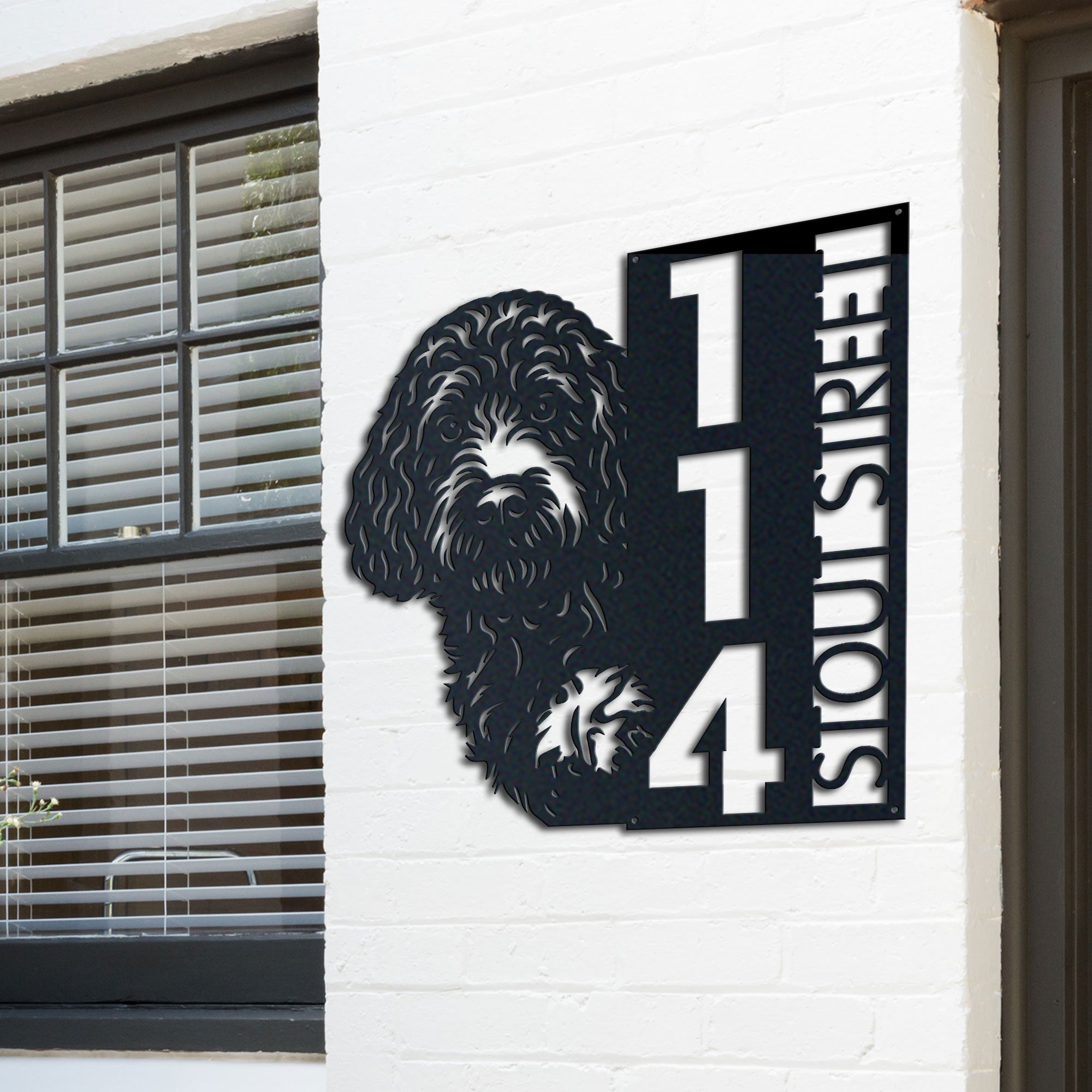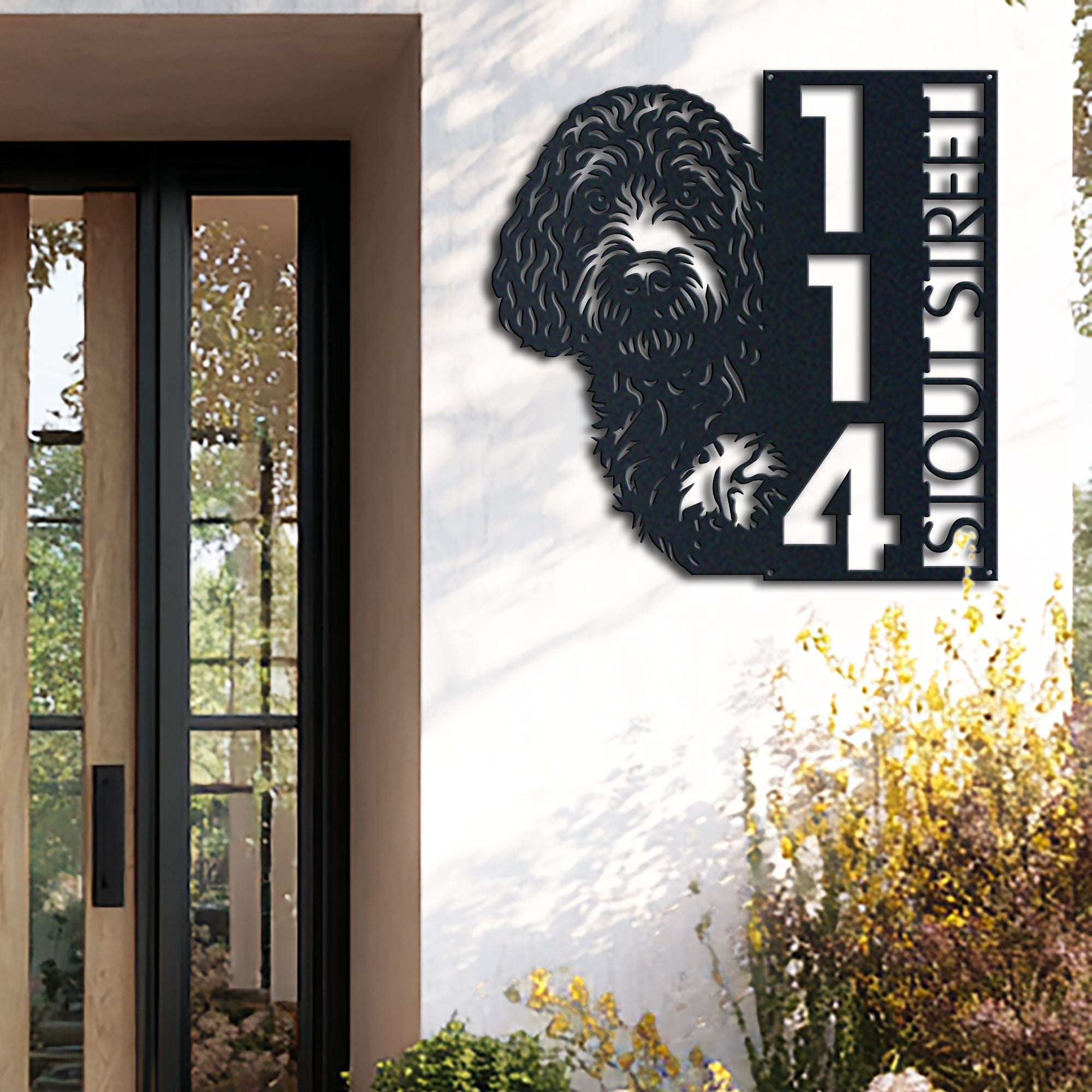Saint Berdoodle Address Sign | Custom Metal Vertical House Number Plaque | Pet Owner Gift 2