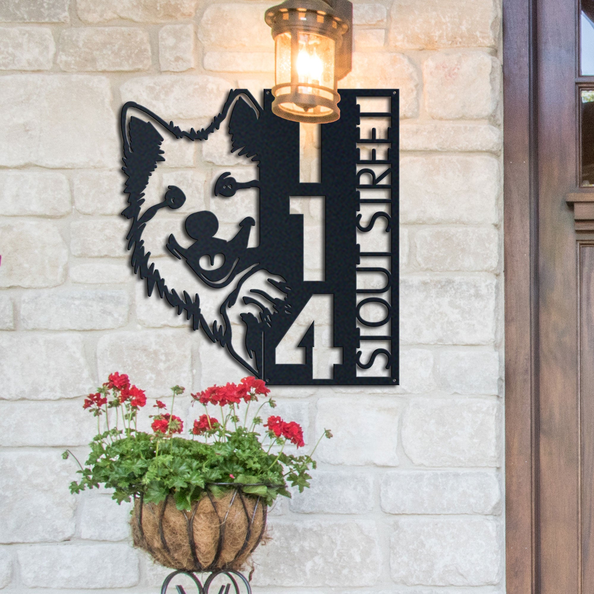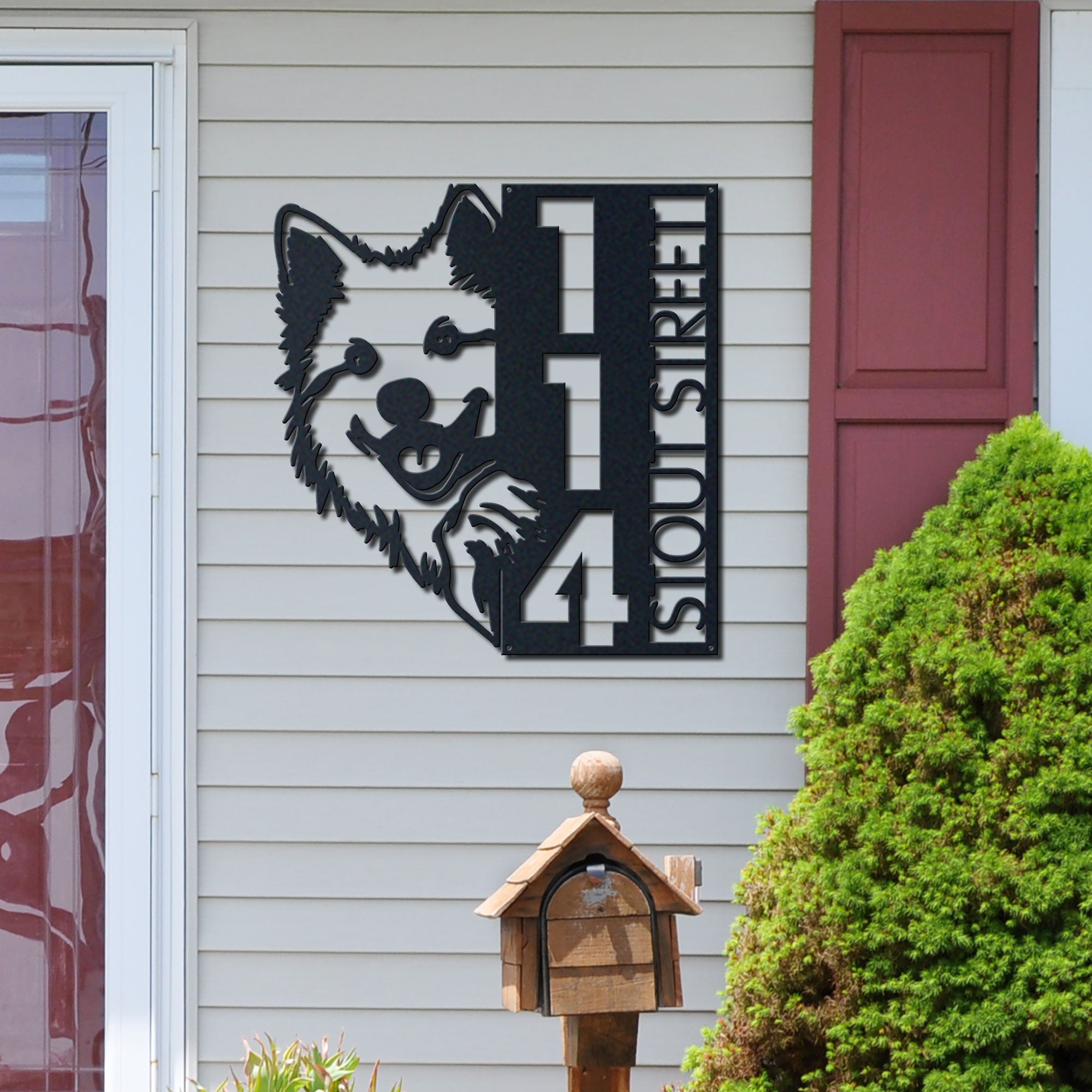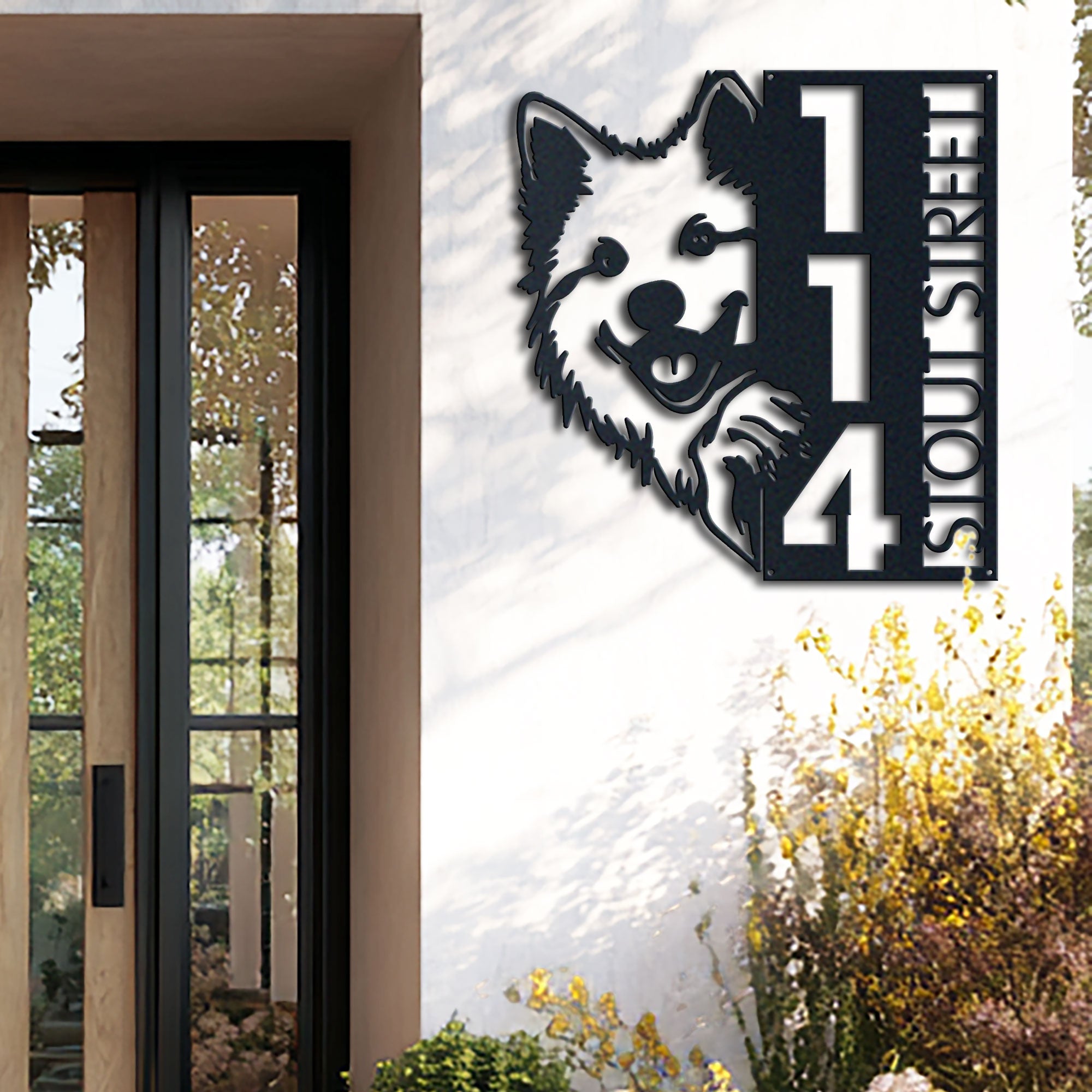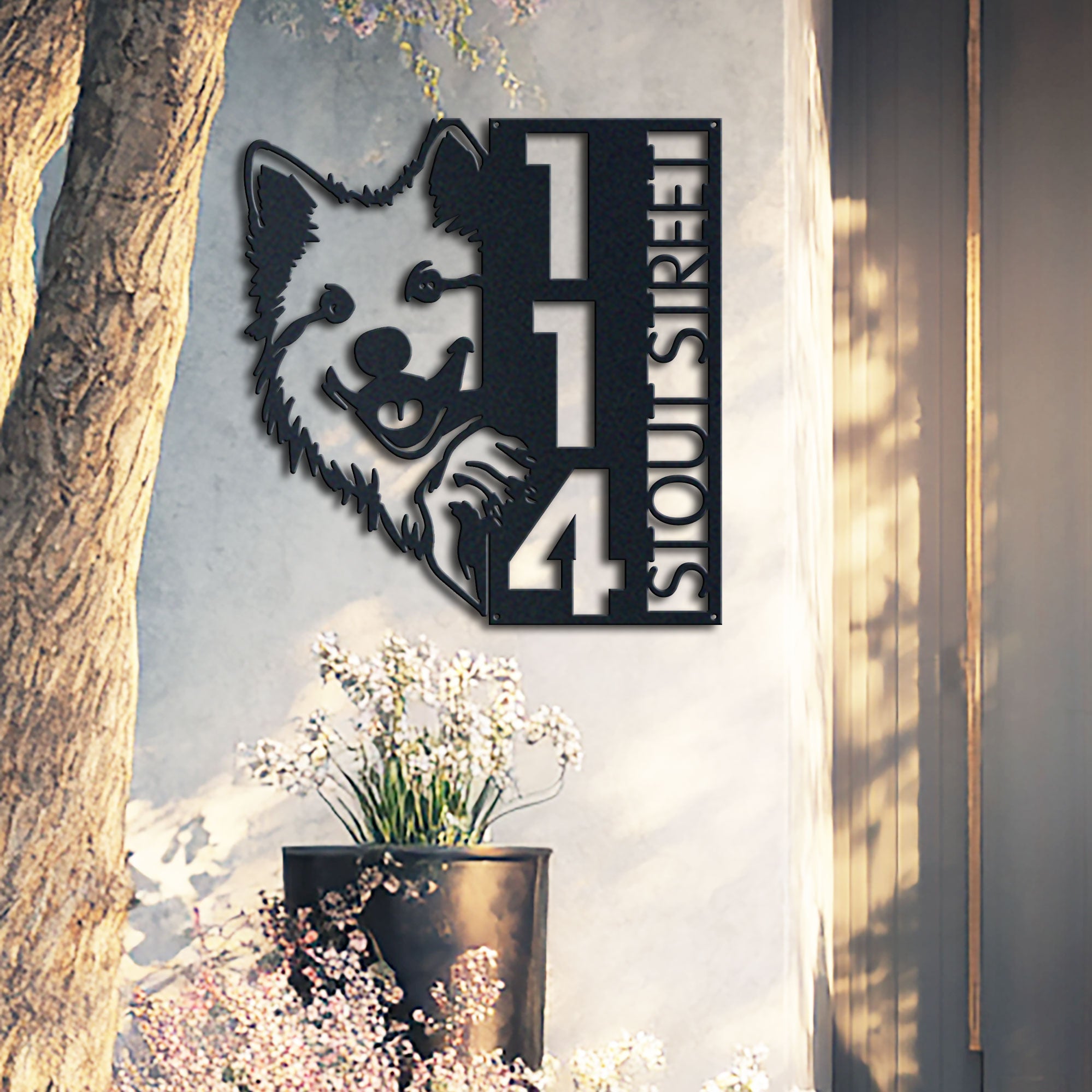 Samoyed Address Sign | Custom Metal Vertical House Number Plaque | Pet Owner Gift
