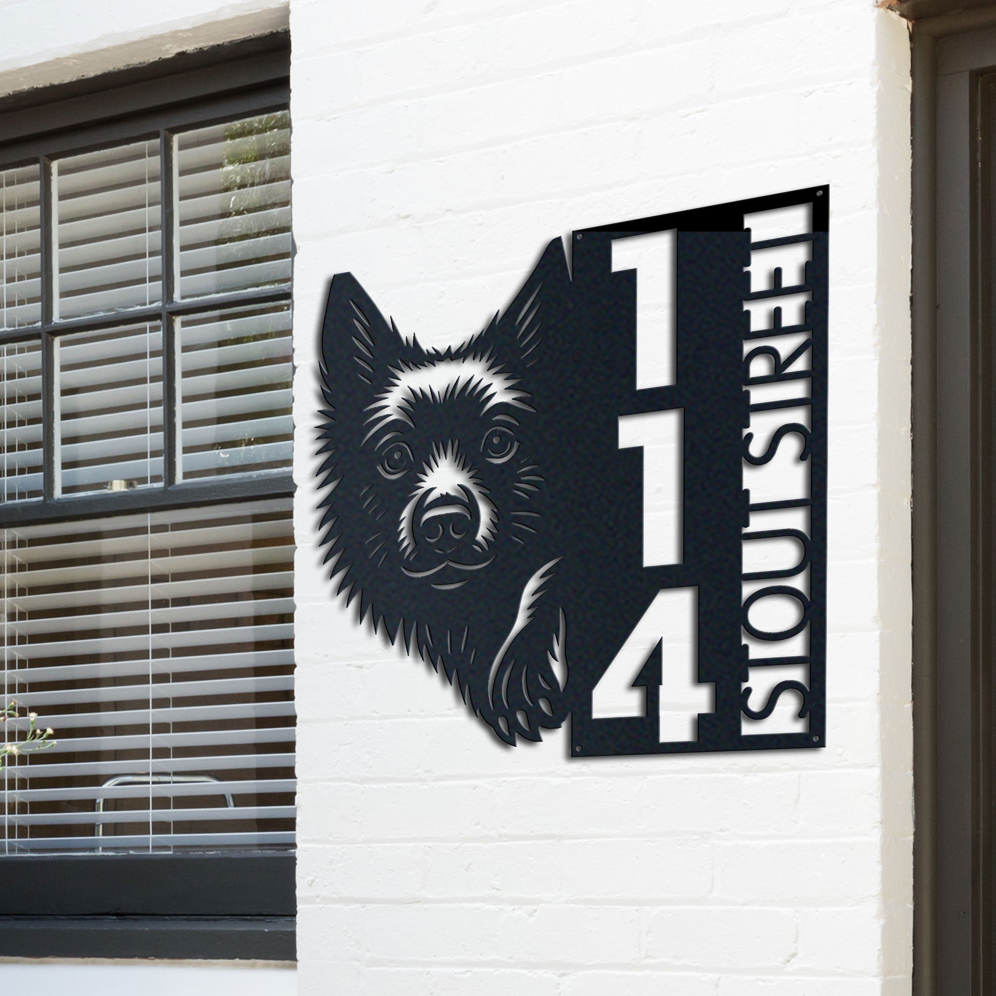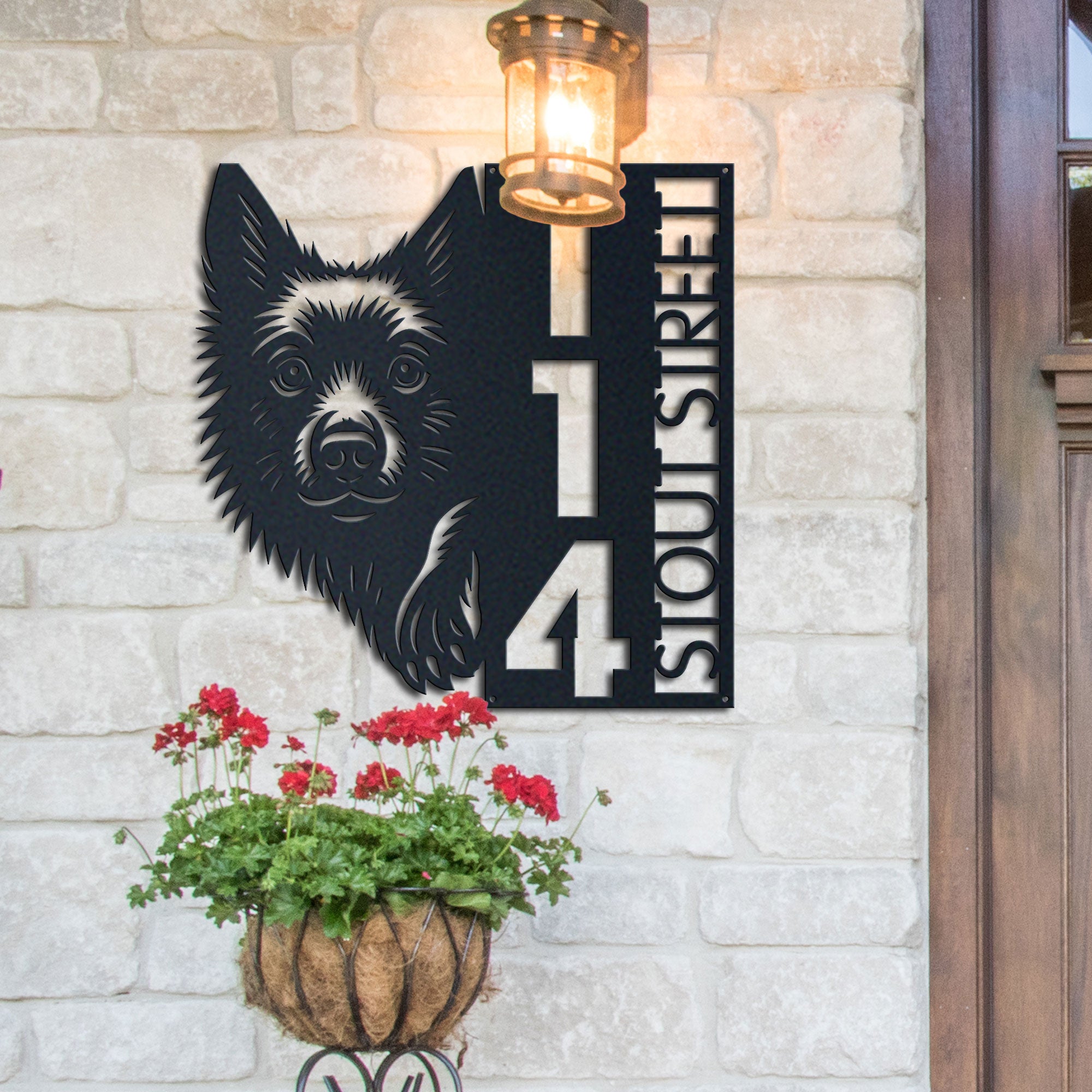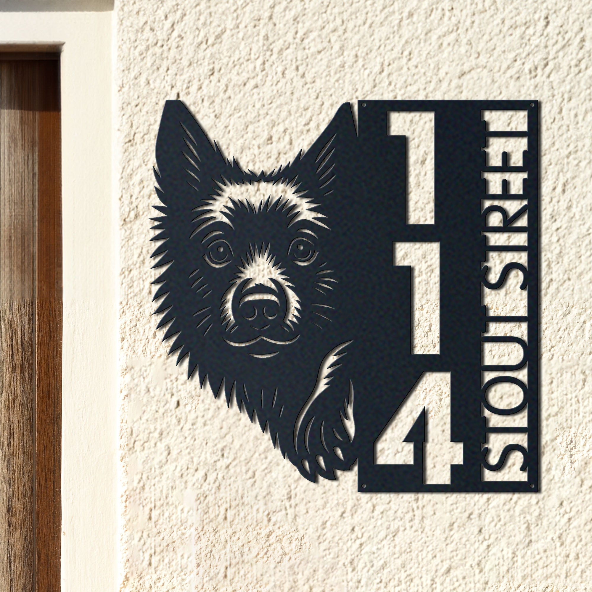 Schipperke Address Sign | Custom Metal Vertical House Number Plaque | Pet Owner Gift 2