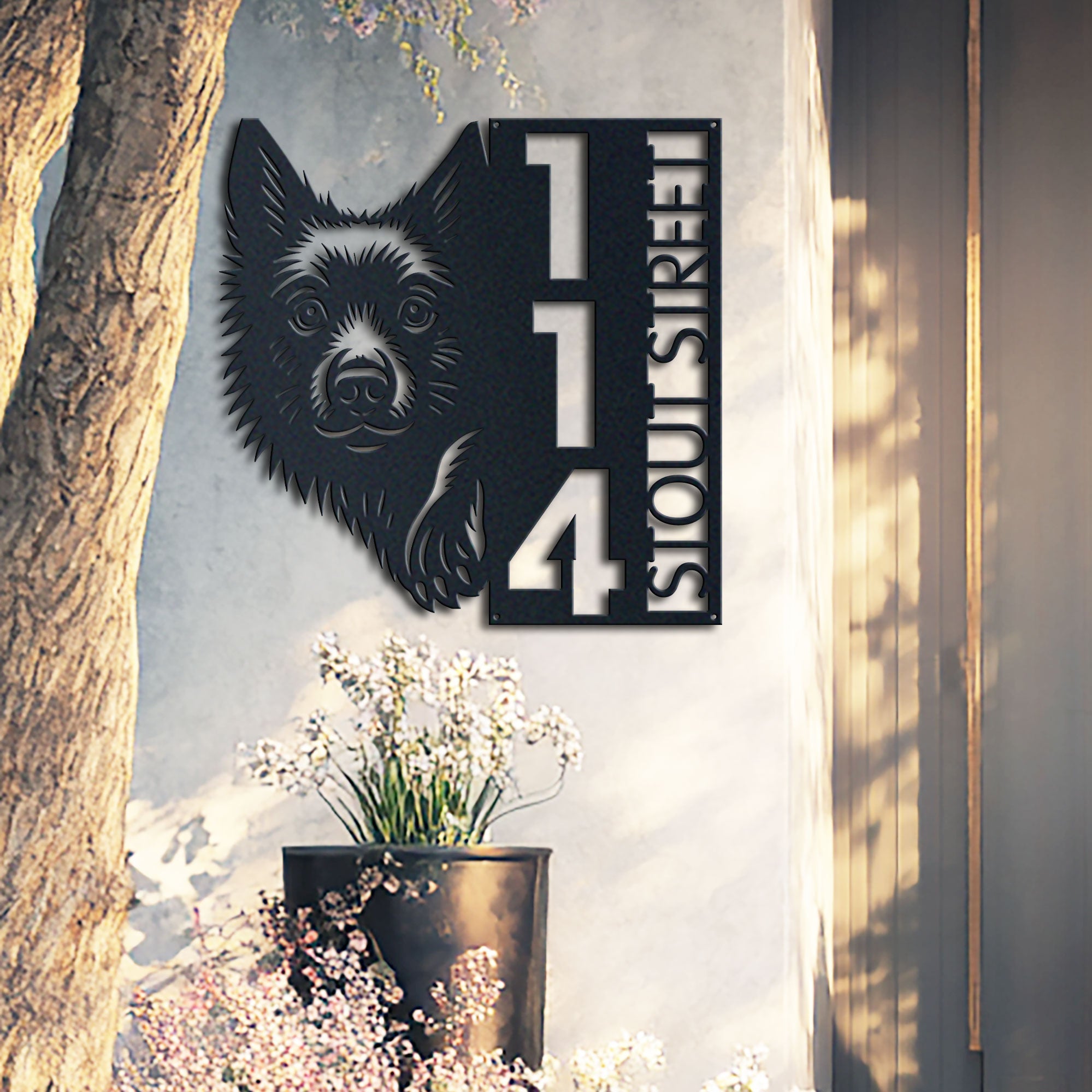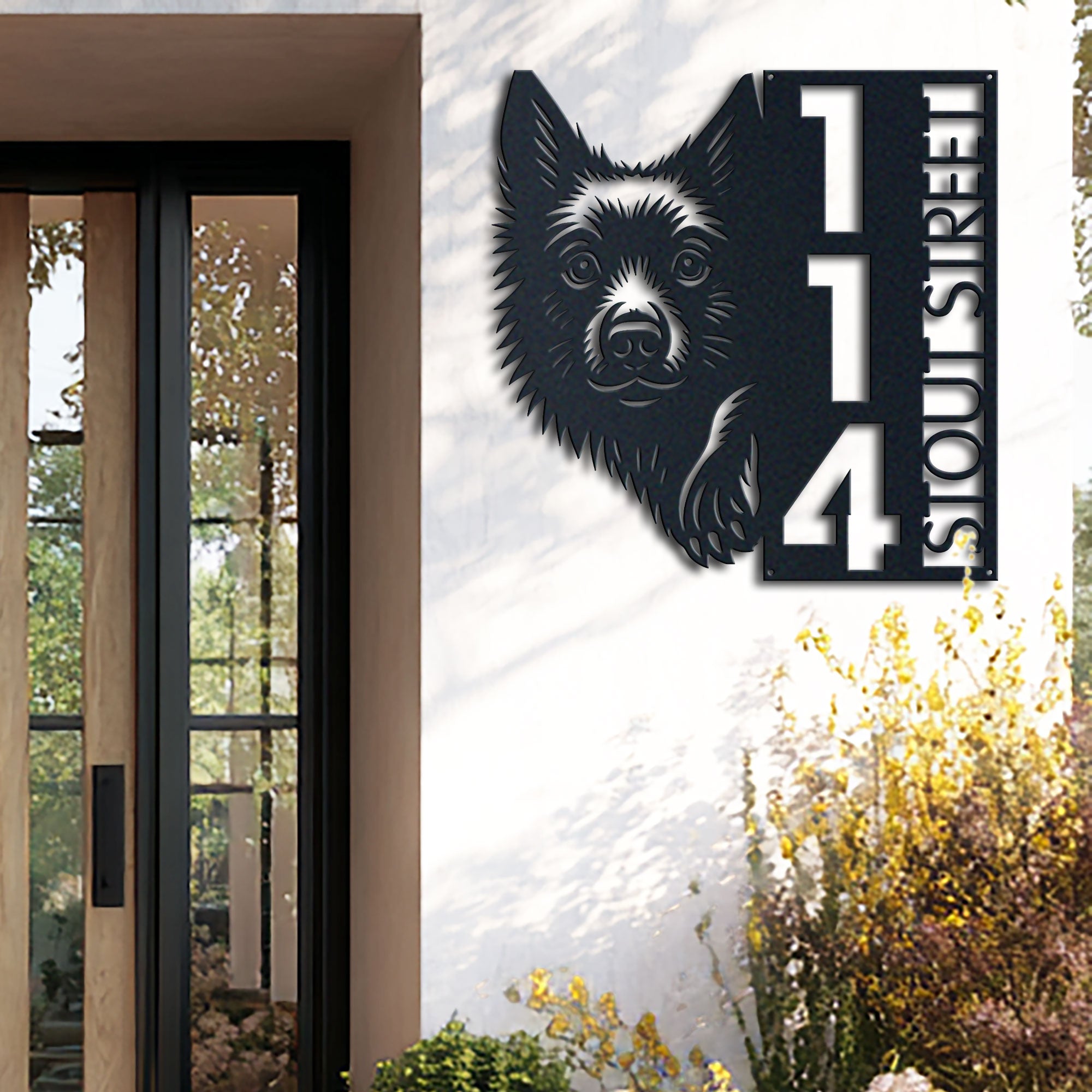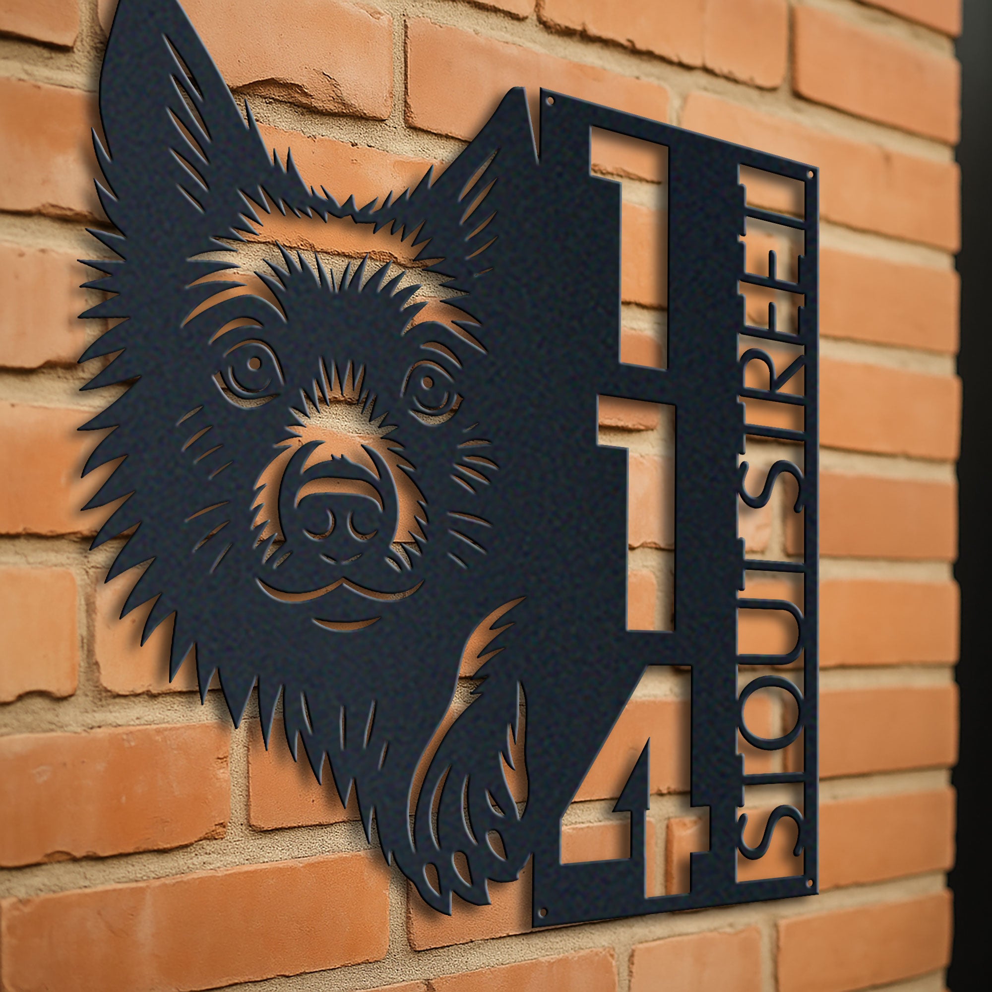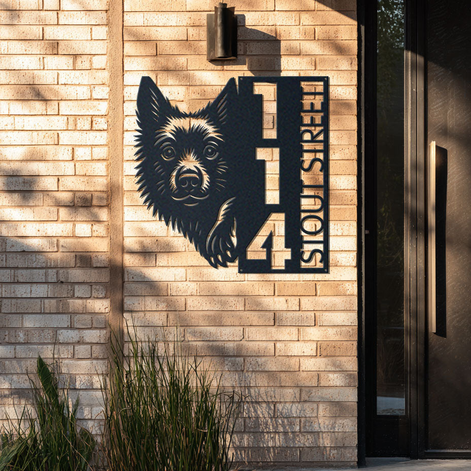 Schipperke Address Sign | Custom Metal Vertical House Number Plaque | Pet Owner Gift 2