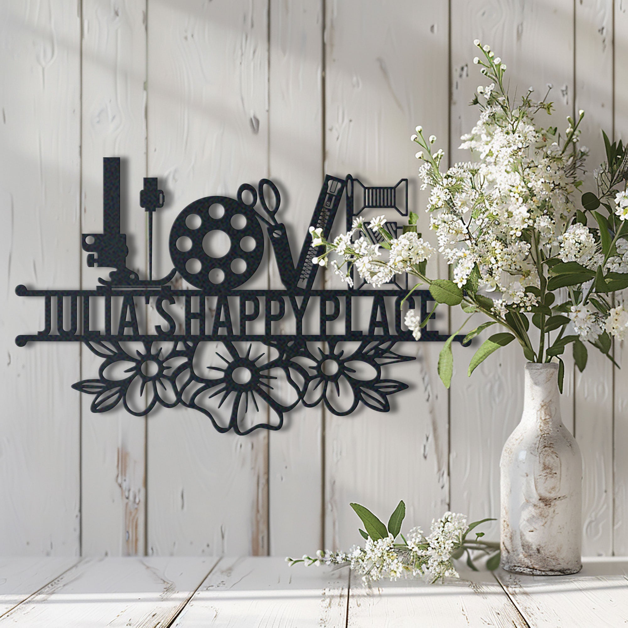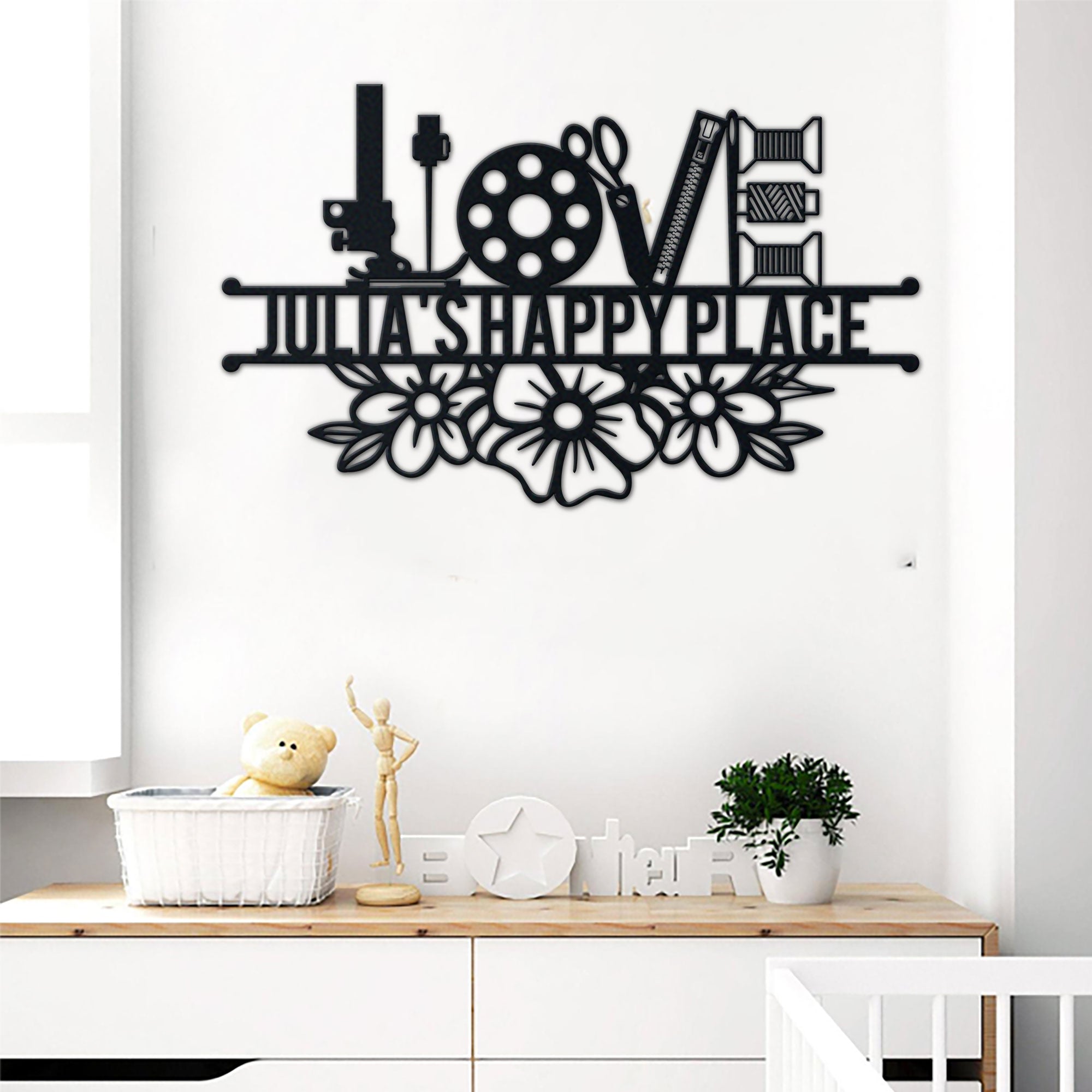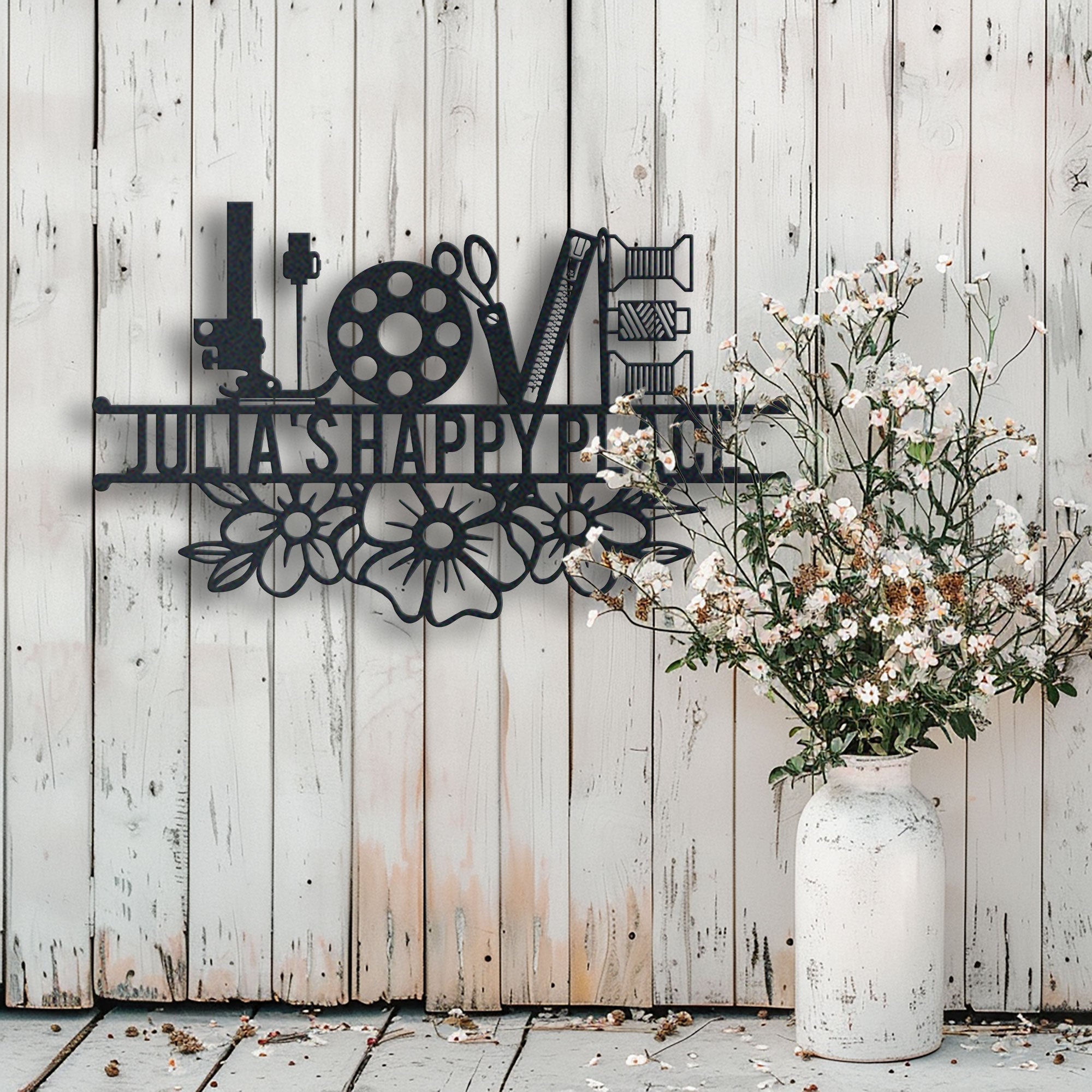 Sewing Lovers Happy Place Metal Sign Name Idea For Wall Decoration Personalized 2