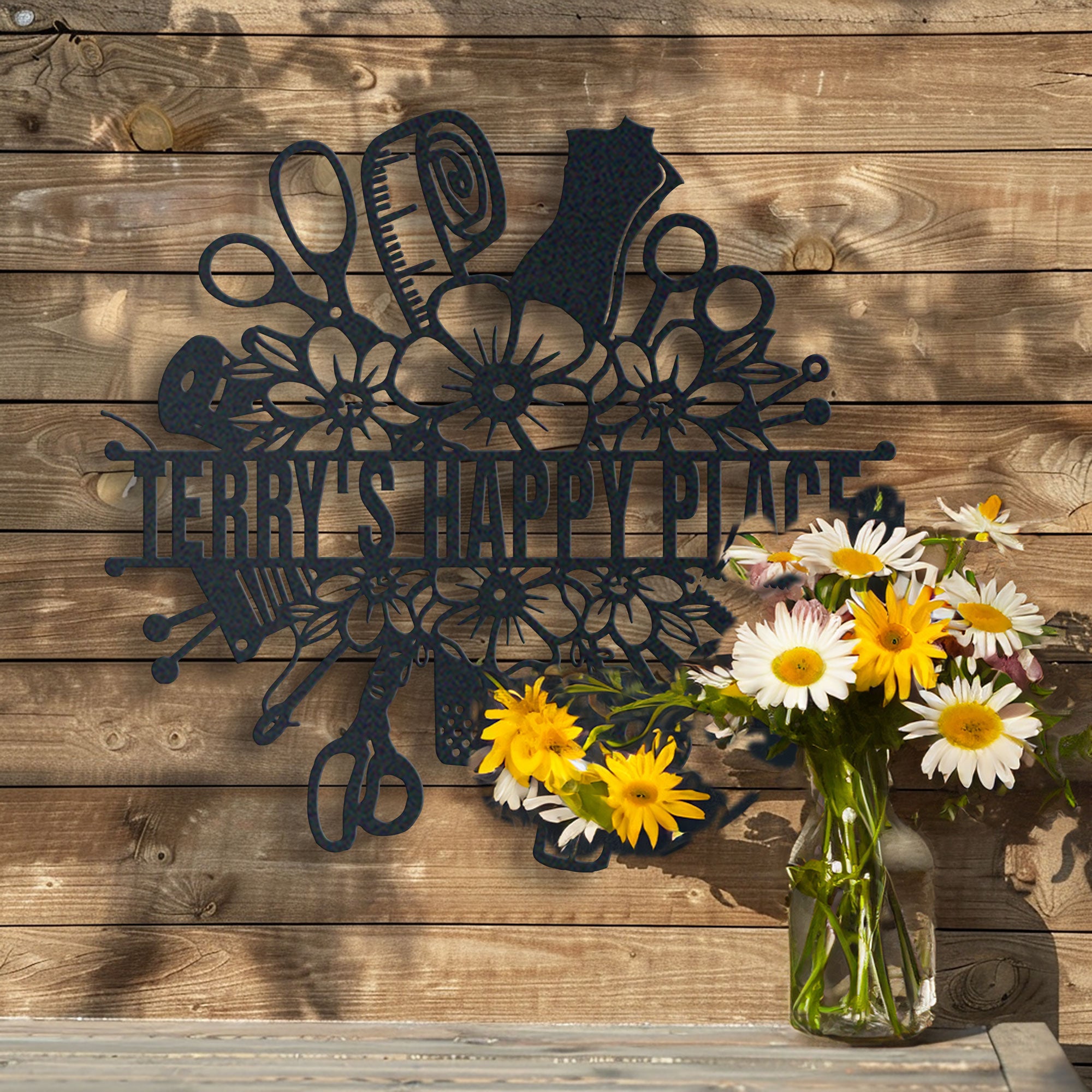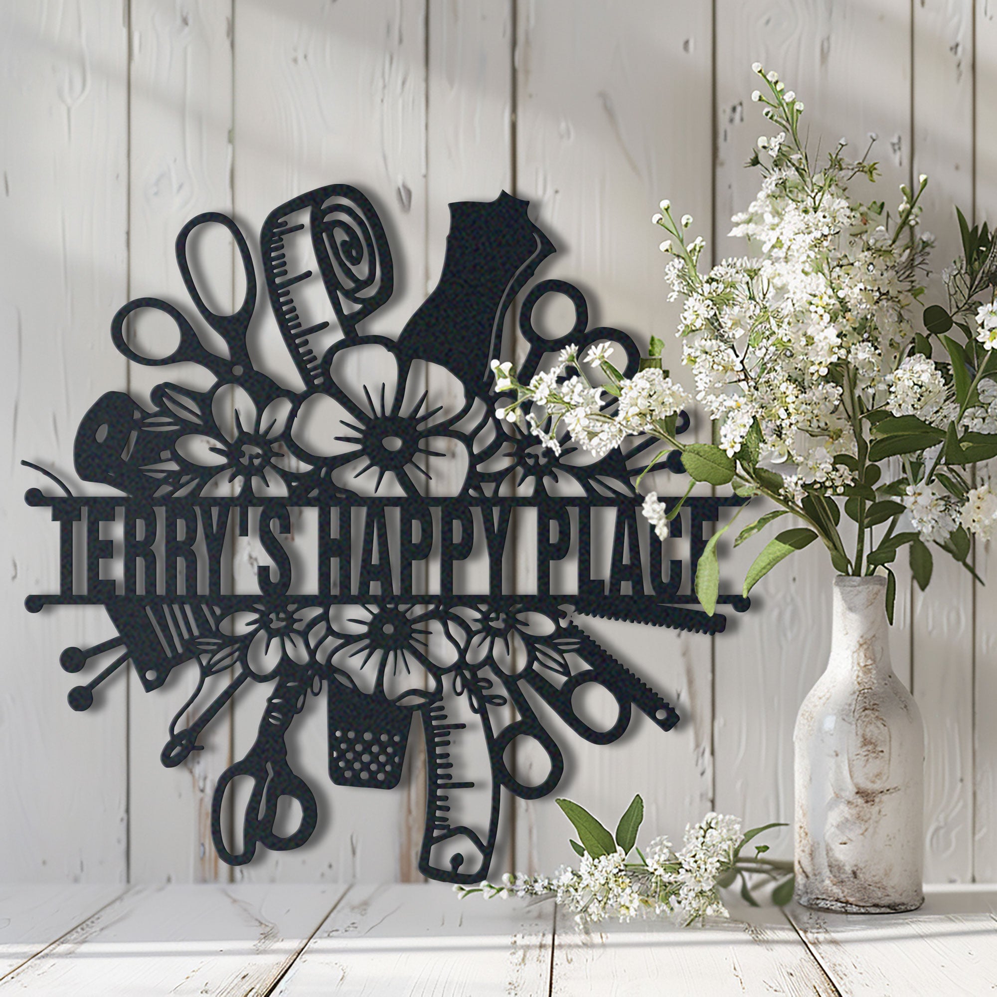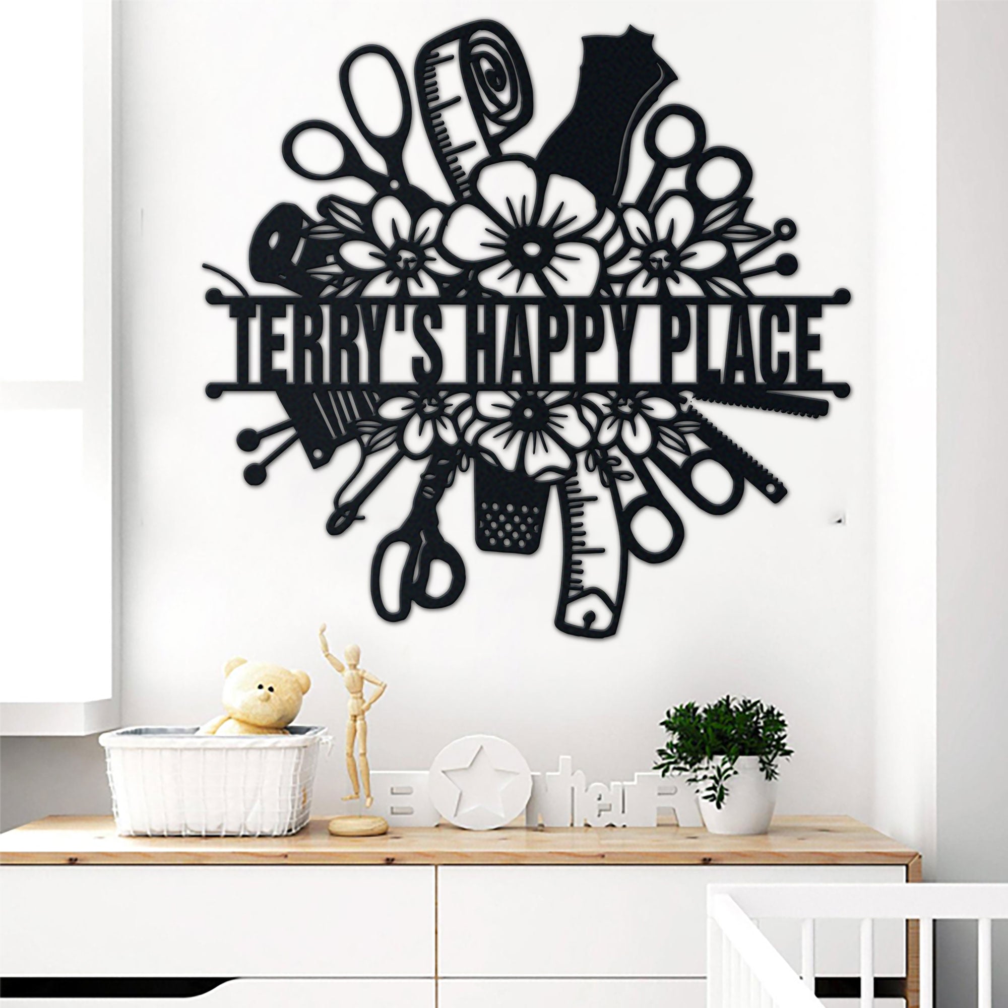 Sewing Lovers Happy Place Metal Sign Name Idea For Wall Decoration Personalized 3