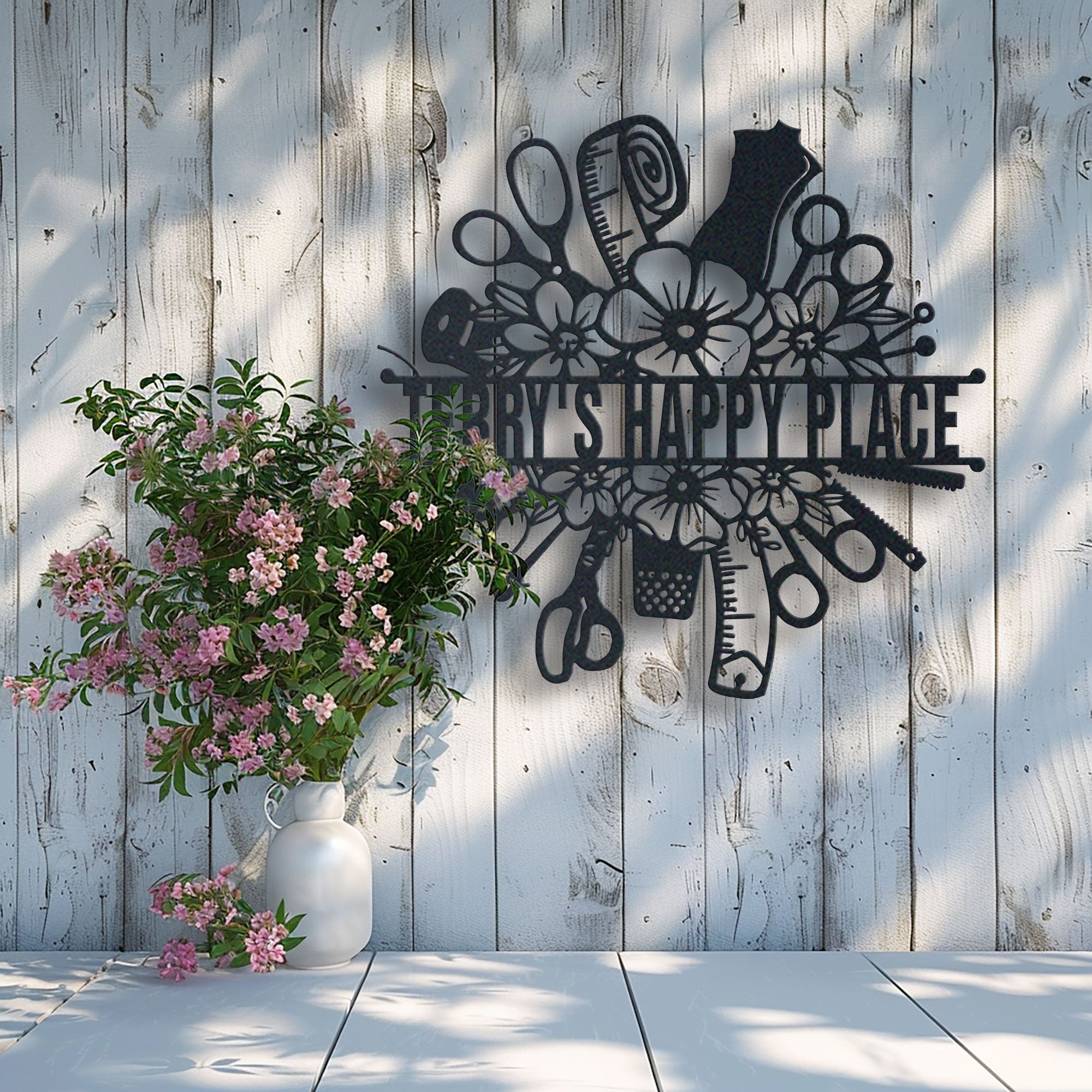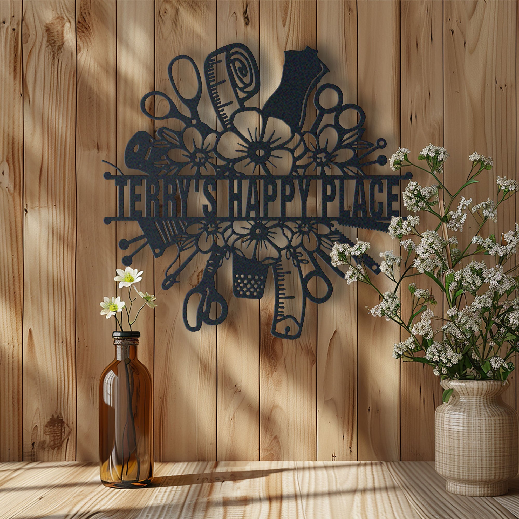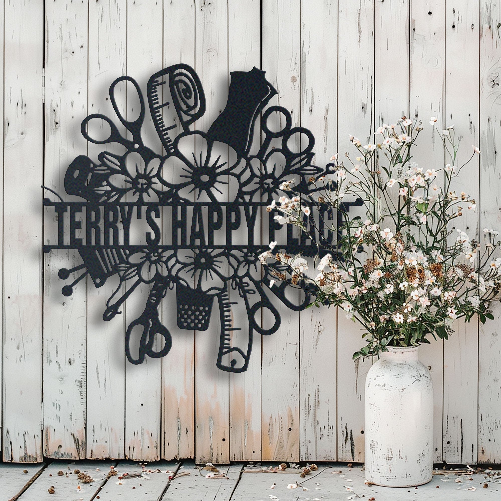 Sewing Lovers Happy Place Metal Sign Name Idea For Wall Decoration Personalized 3
