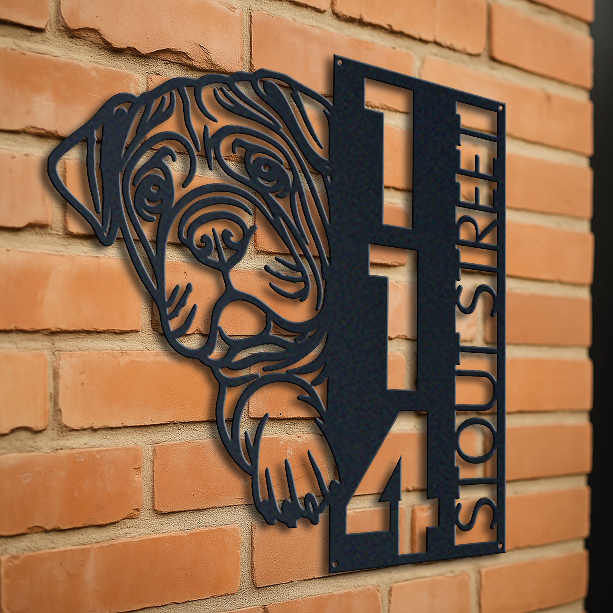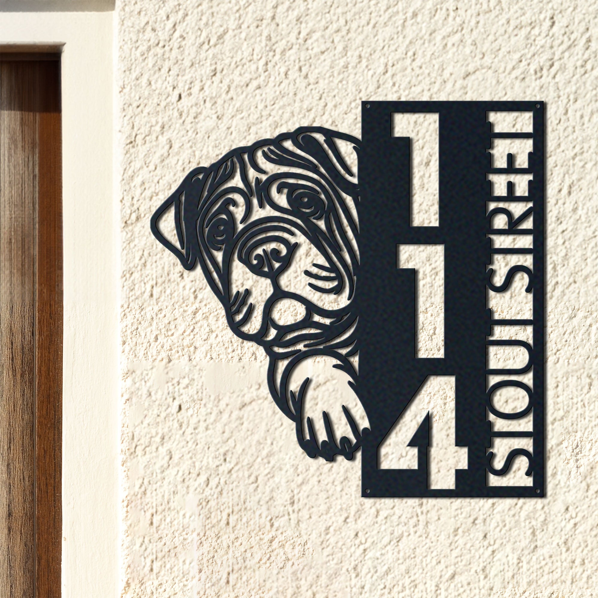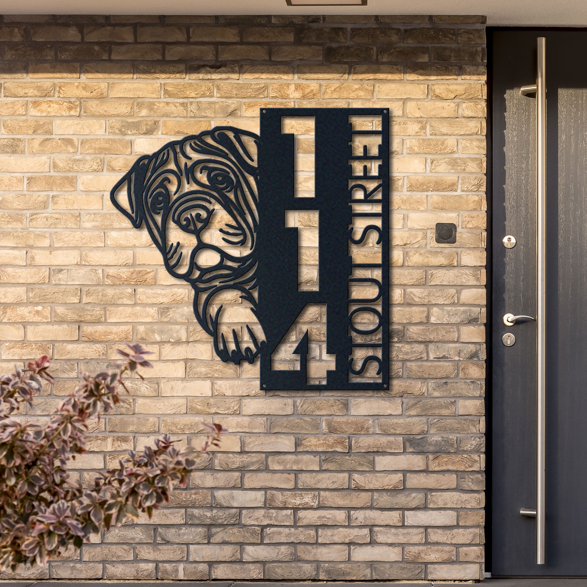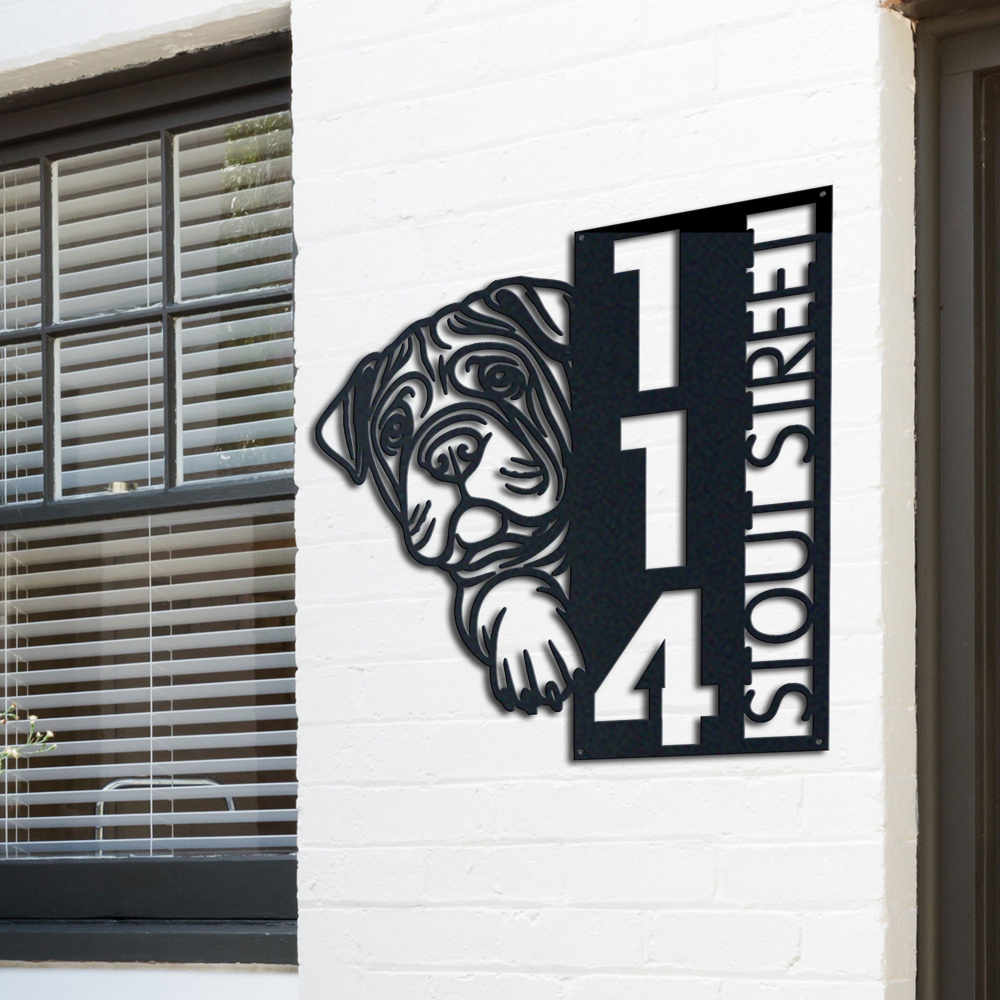 Shar Pei Address Sign | Custom Metal Vertical House Number Plaque | Pet Owner Gift 2