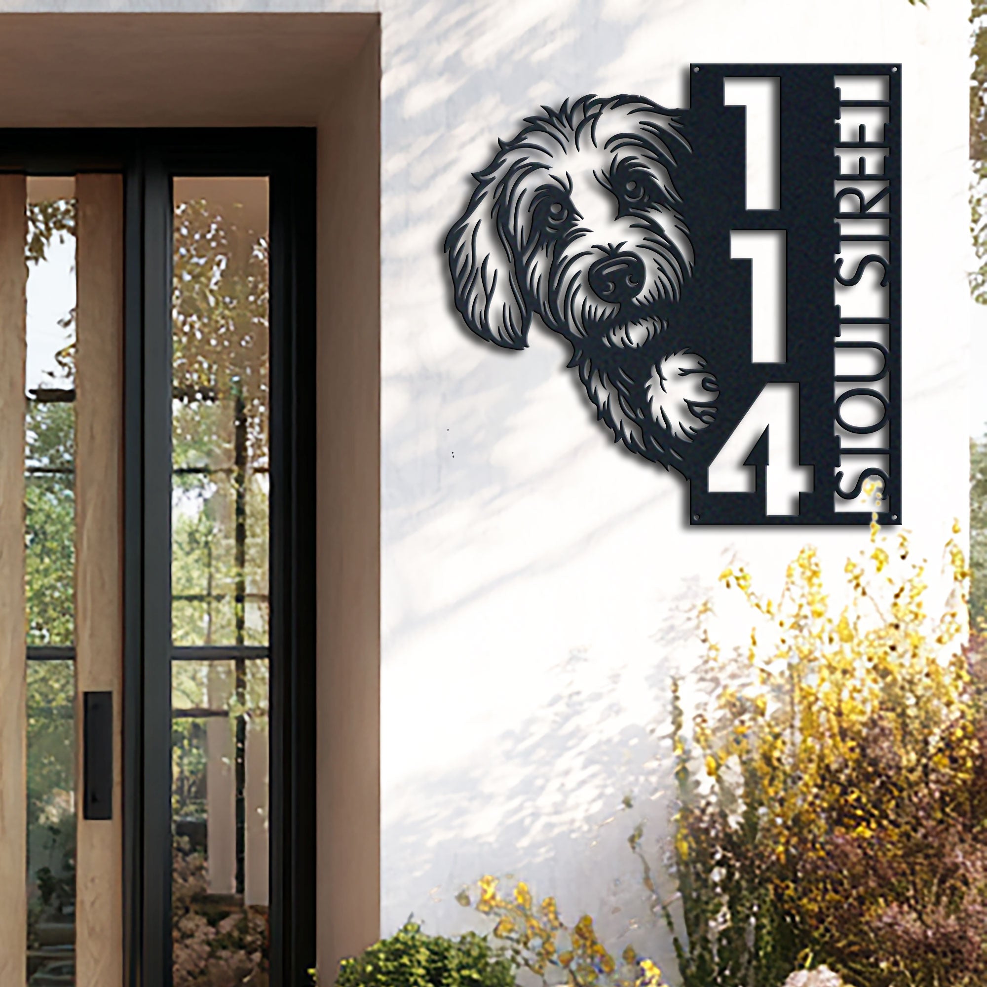 Sheepadoodle Address Sign | Custom Metal Vertical House Number Plaque | Pet Owner Gift 2 (Copy)