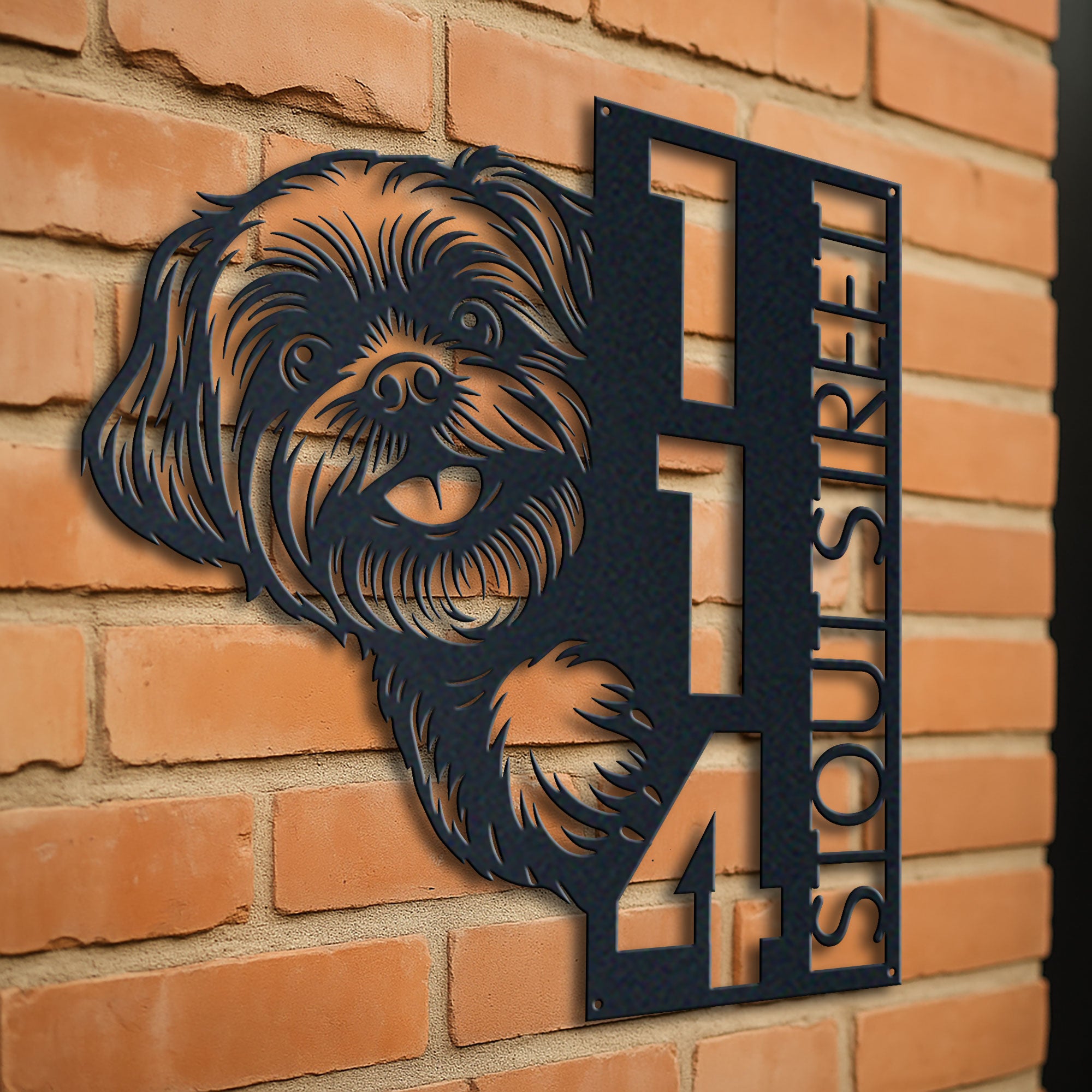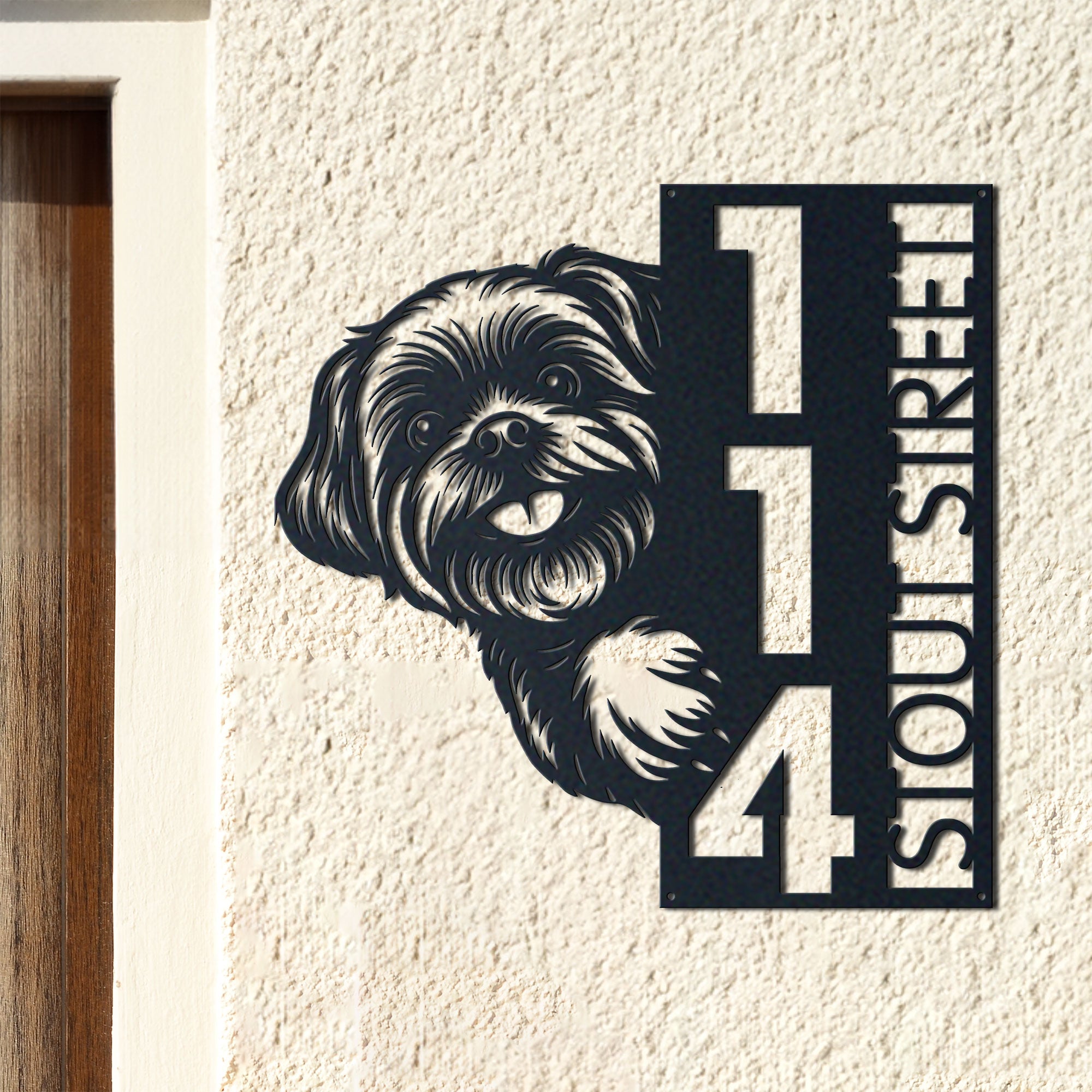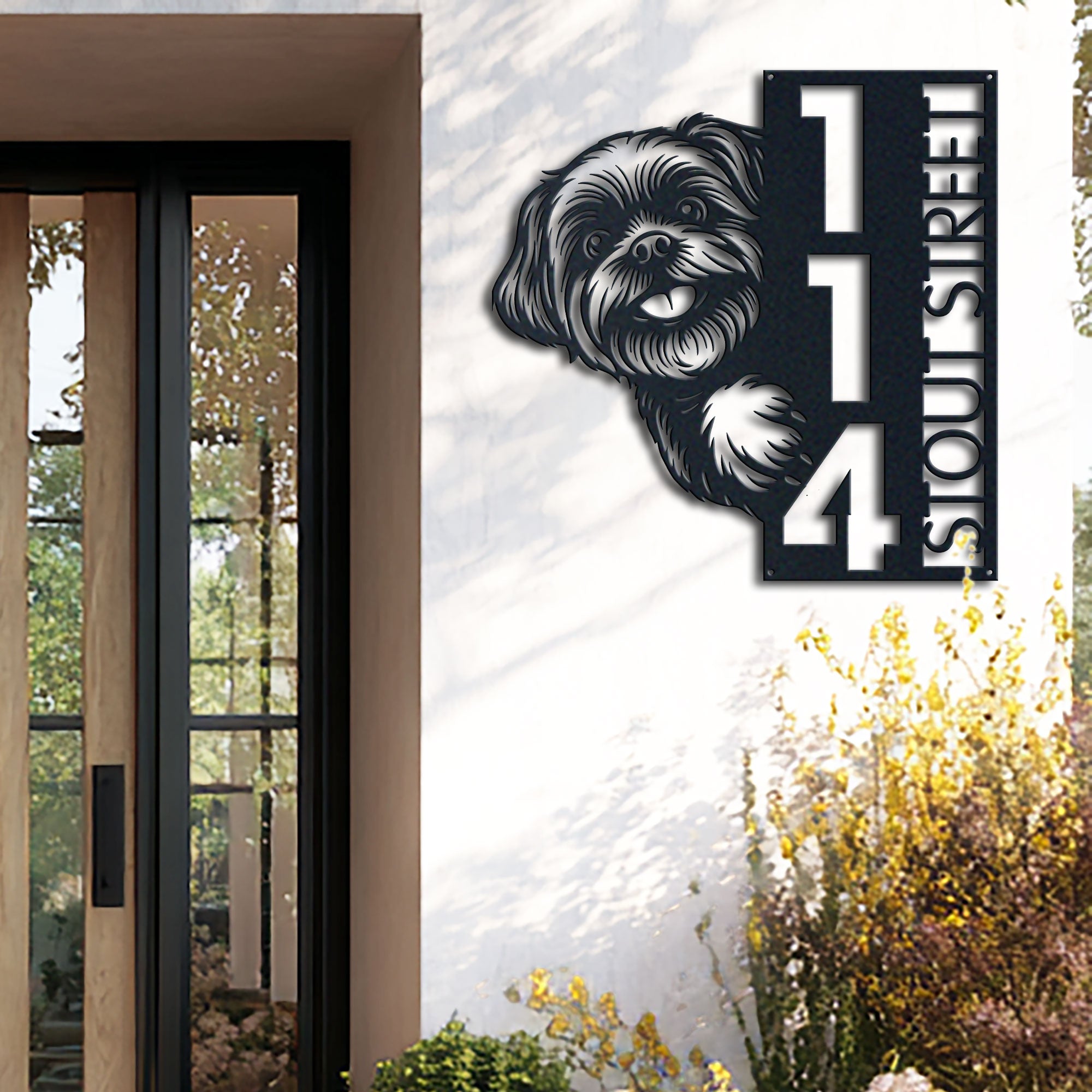 Shih Tzu Address Sign | Custom Metal Vertical House Number Plaque | Pet Owner Gift 3