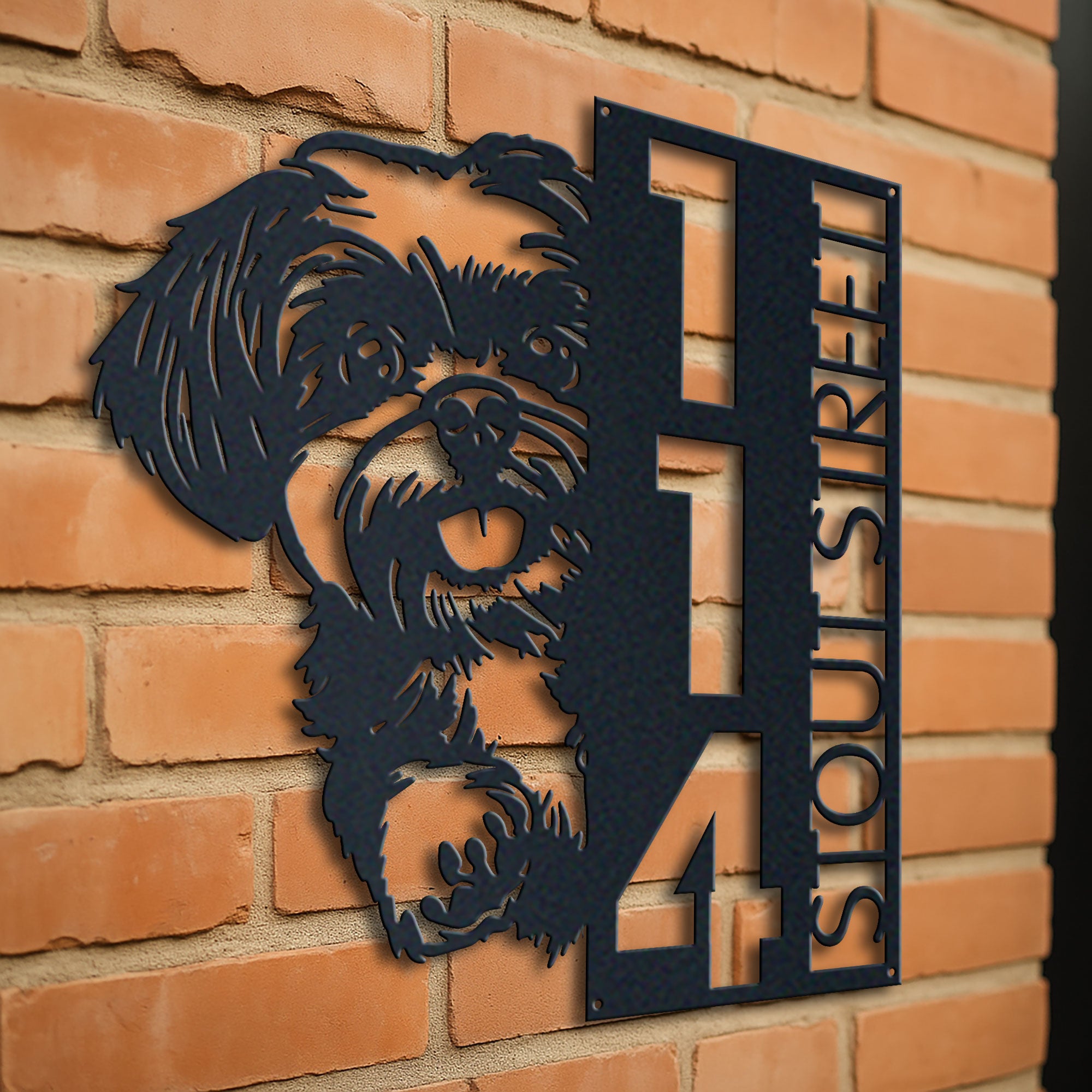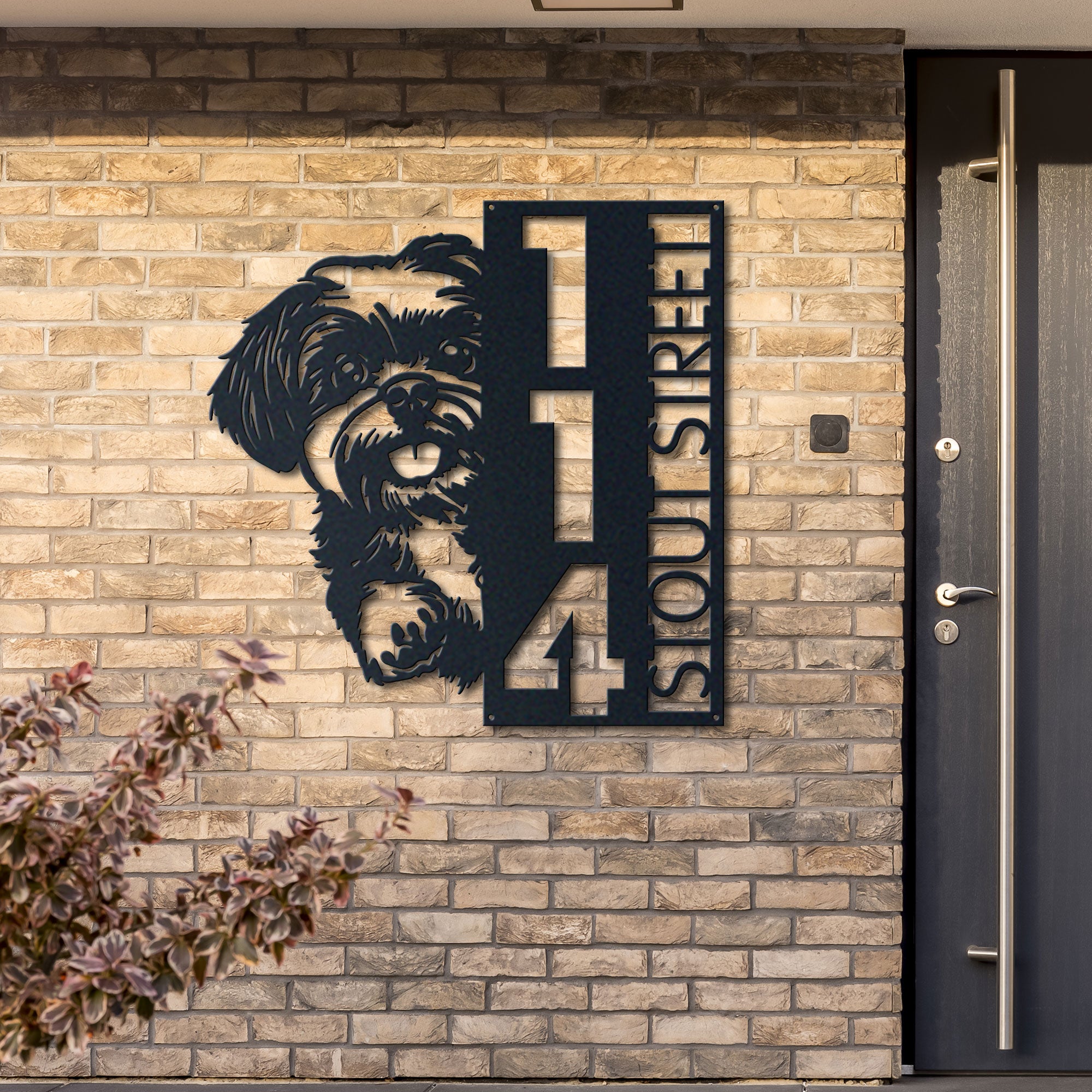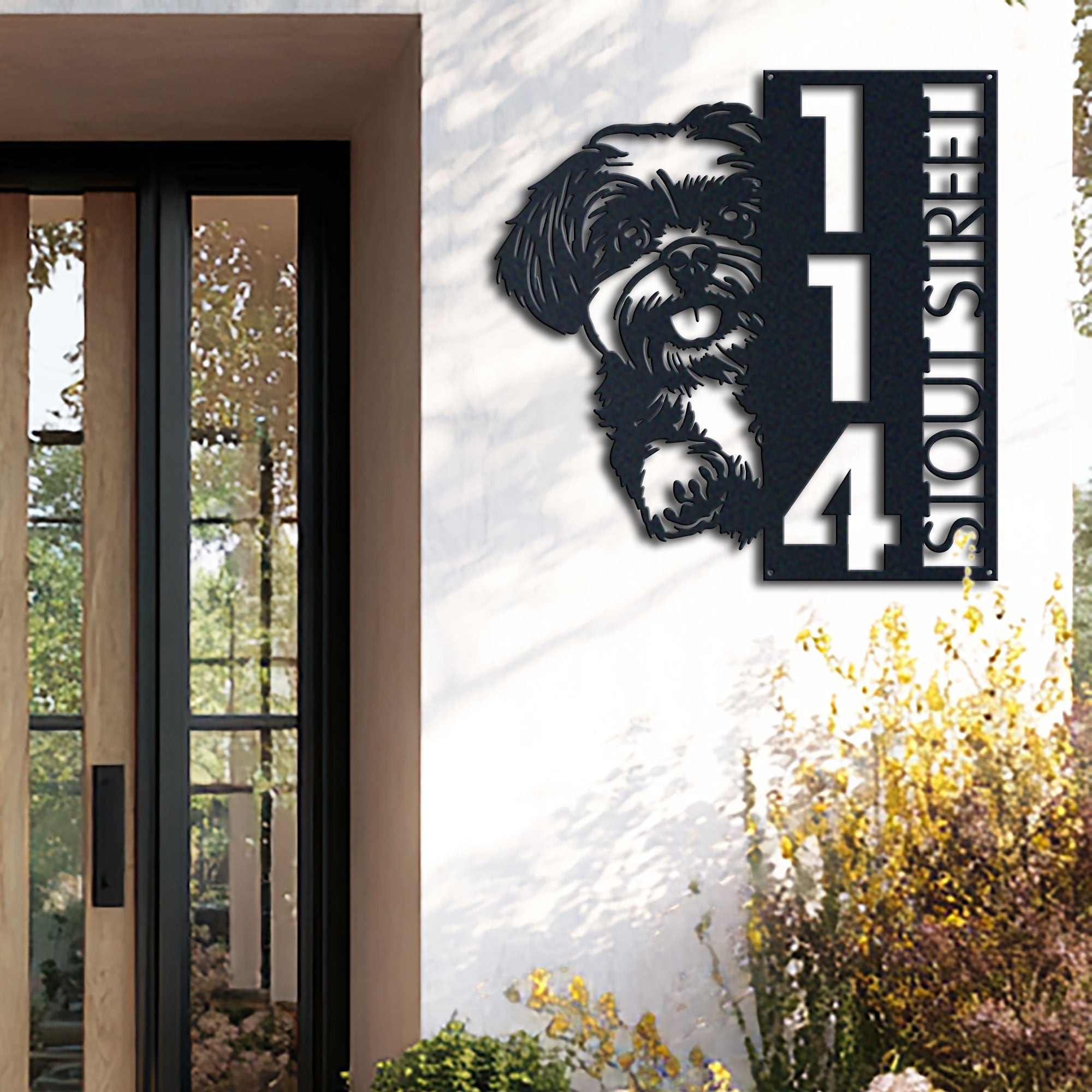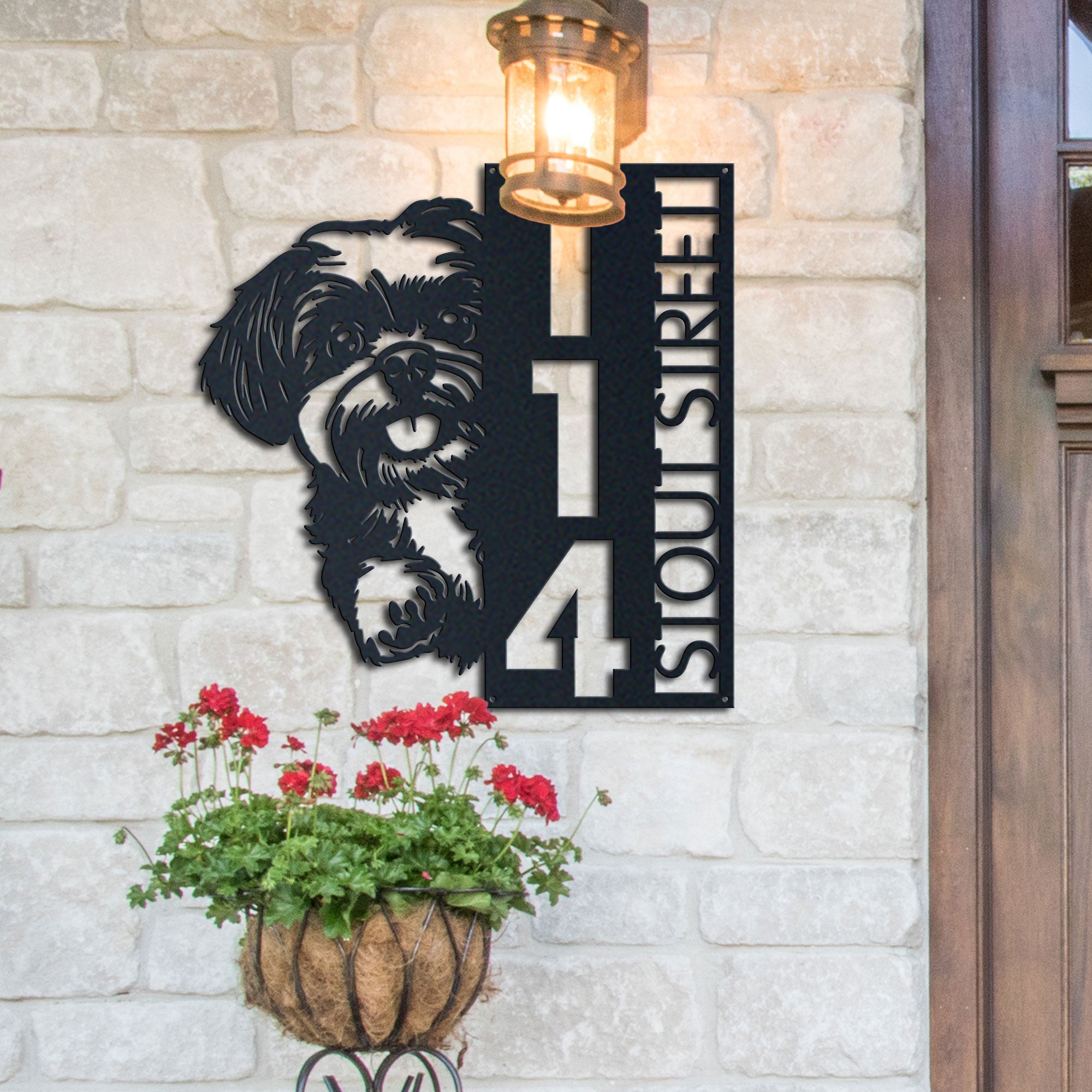 ShihTzu Address Sign | Custom Metal Vertical House Number Plaque | Pet Owner Gift
