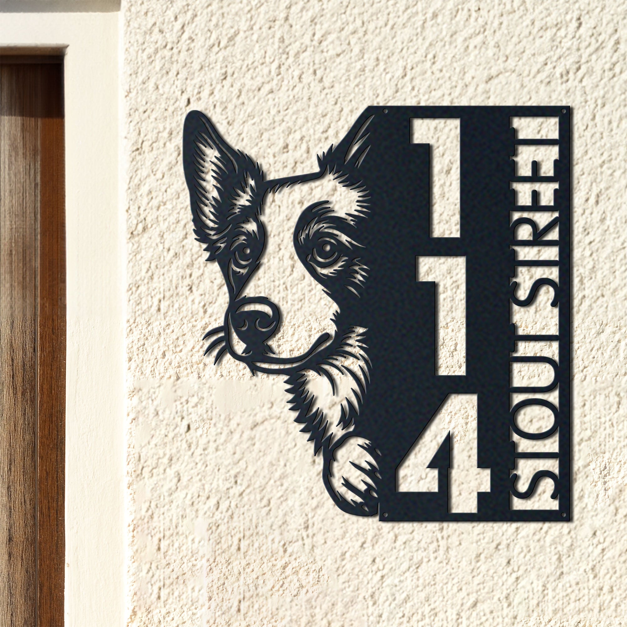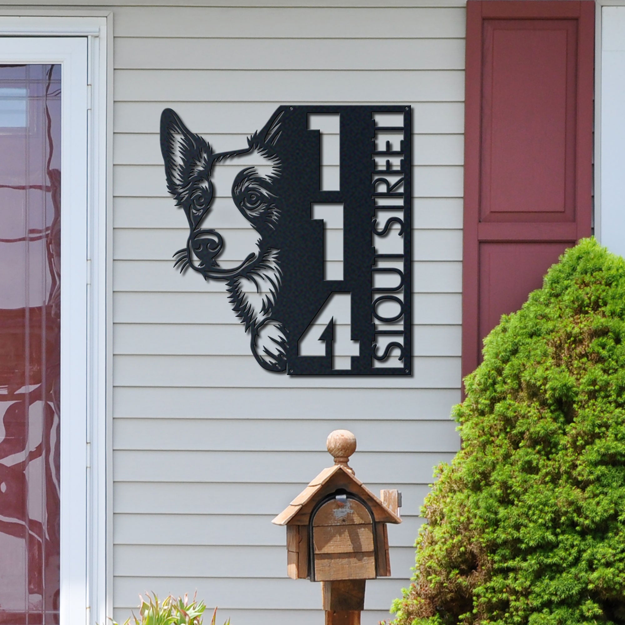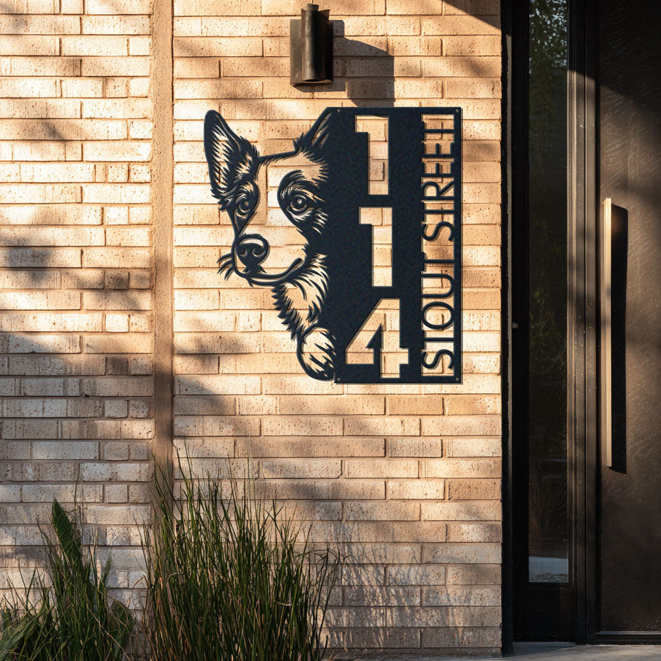 Our metal address sign is not just an address marker but a statement piece that showcases your love for furry friends. Whether you're looking to buy it for yourself or as a thoughtful gift for a dog-loving friend, its charming design will surely delight you. Easy to install, it comes with pre-drilled holes, making mounting it on your front door, gate, or mailbox an absolute breeze.