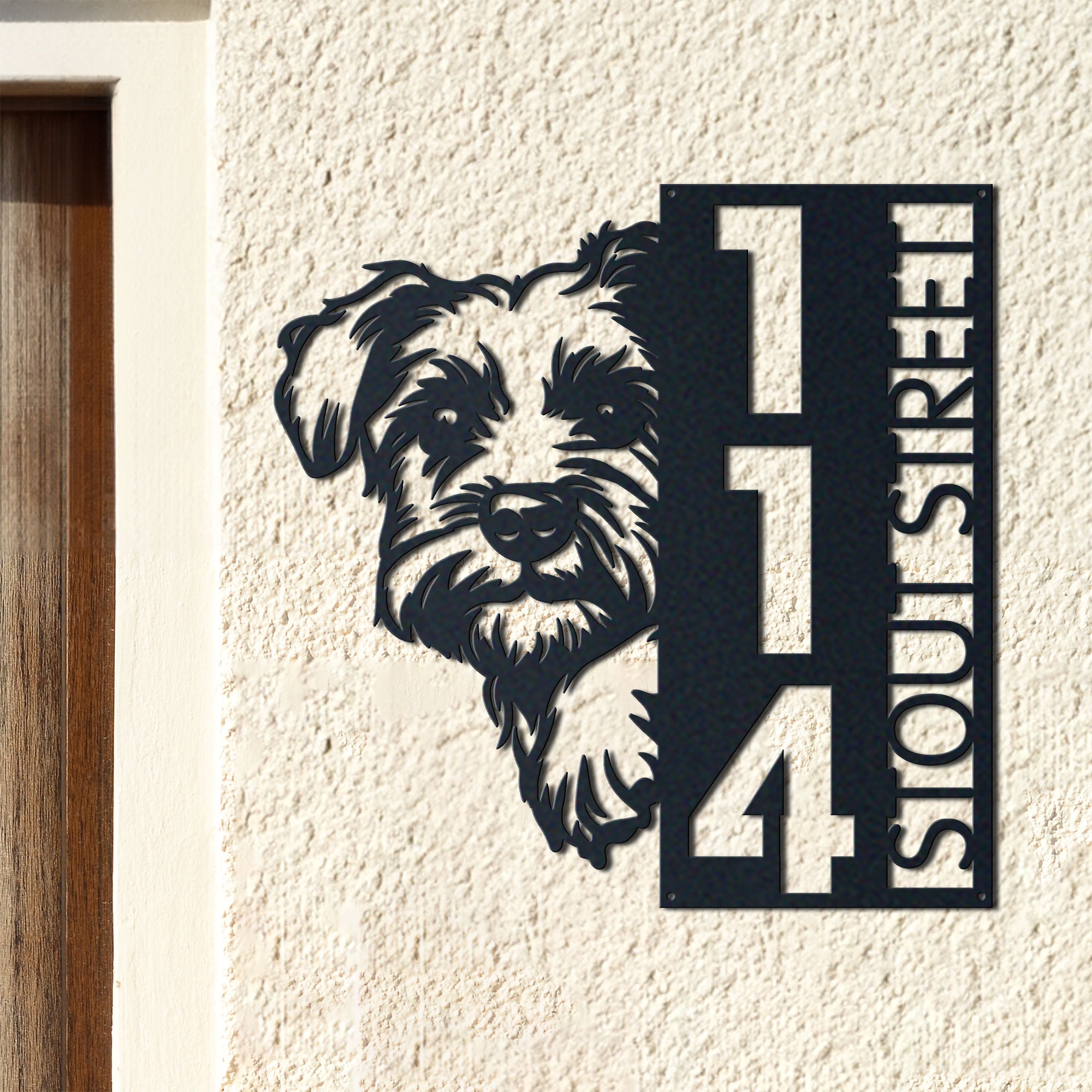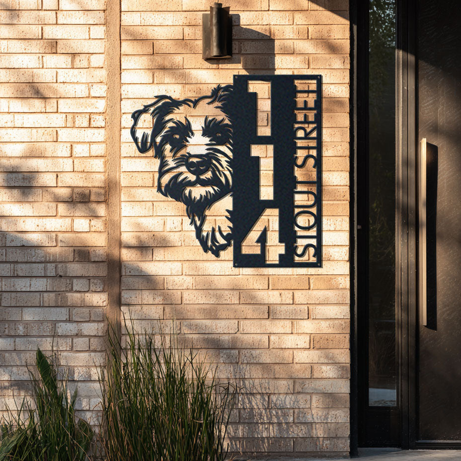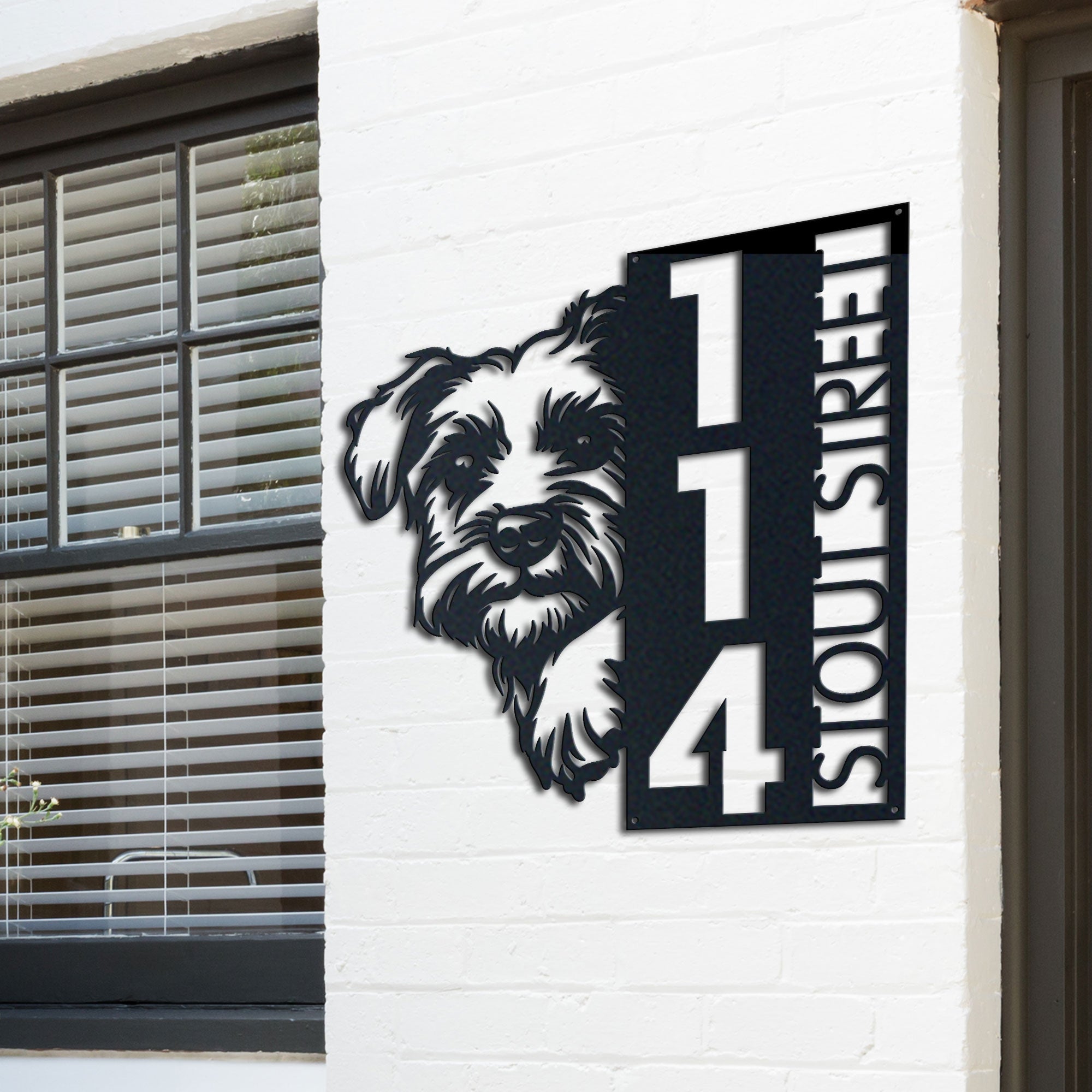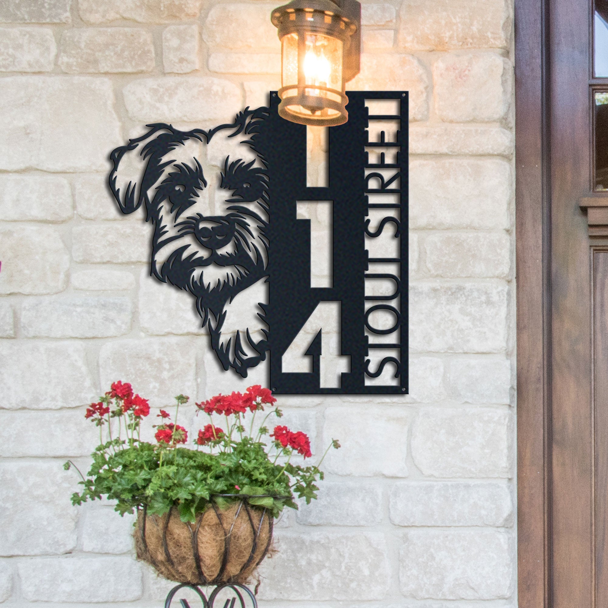 Soft coated Wheaten Terrier Address Sign | Custom Metal Vertical House Number Plaque | Pet Owner Gift