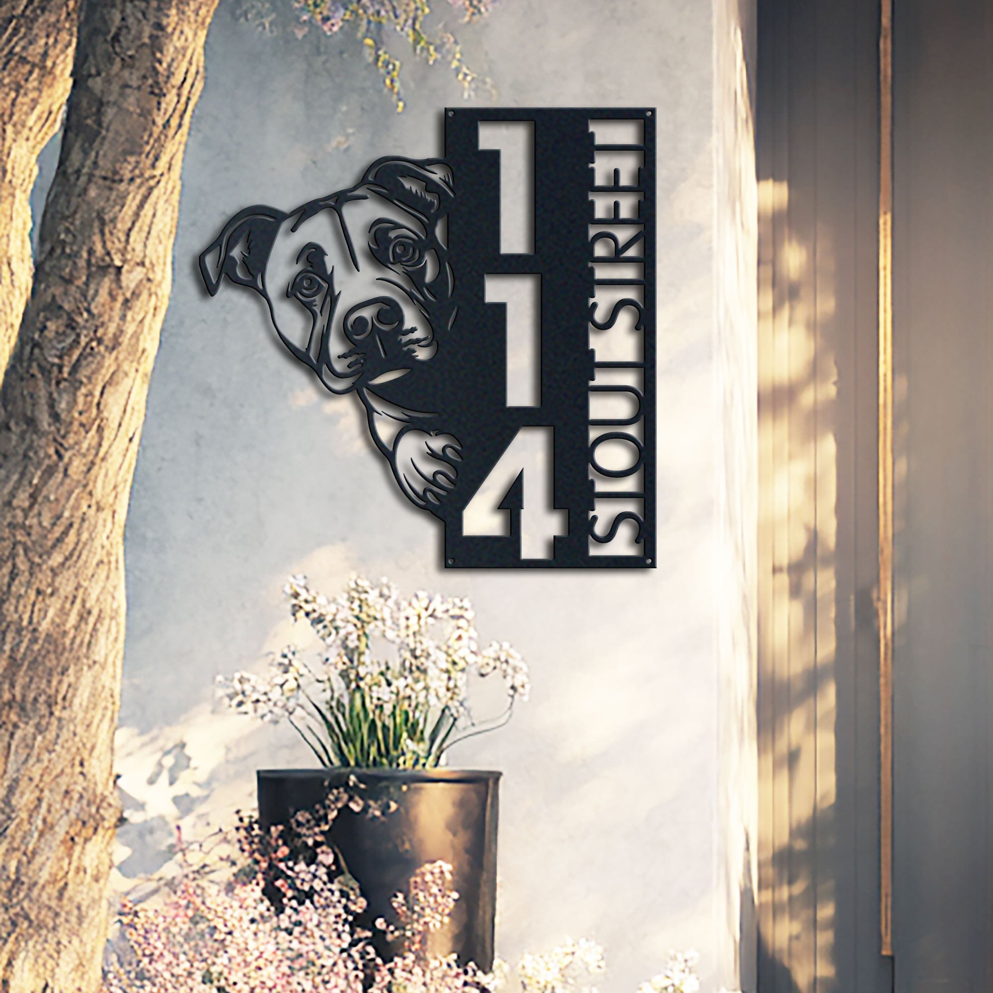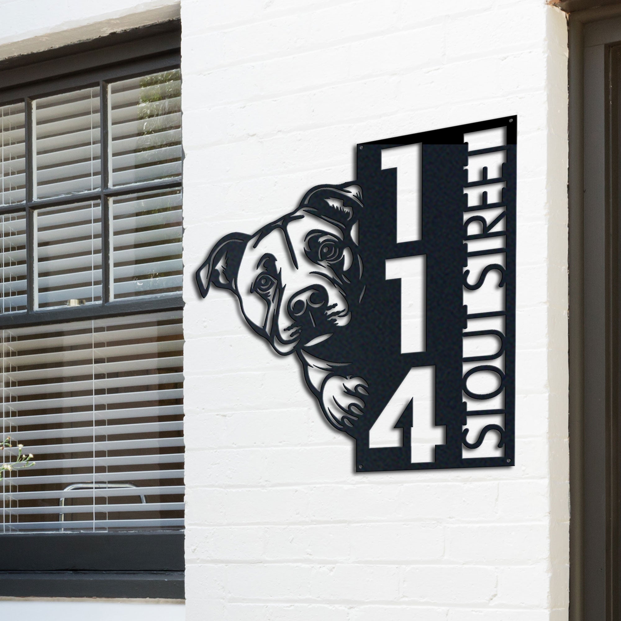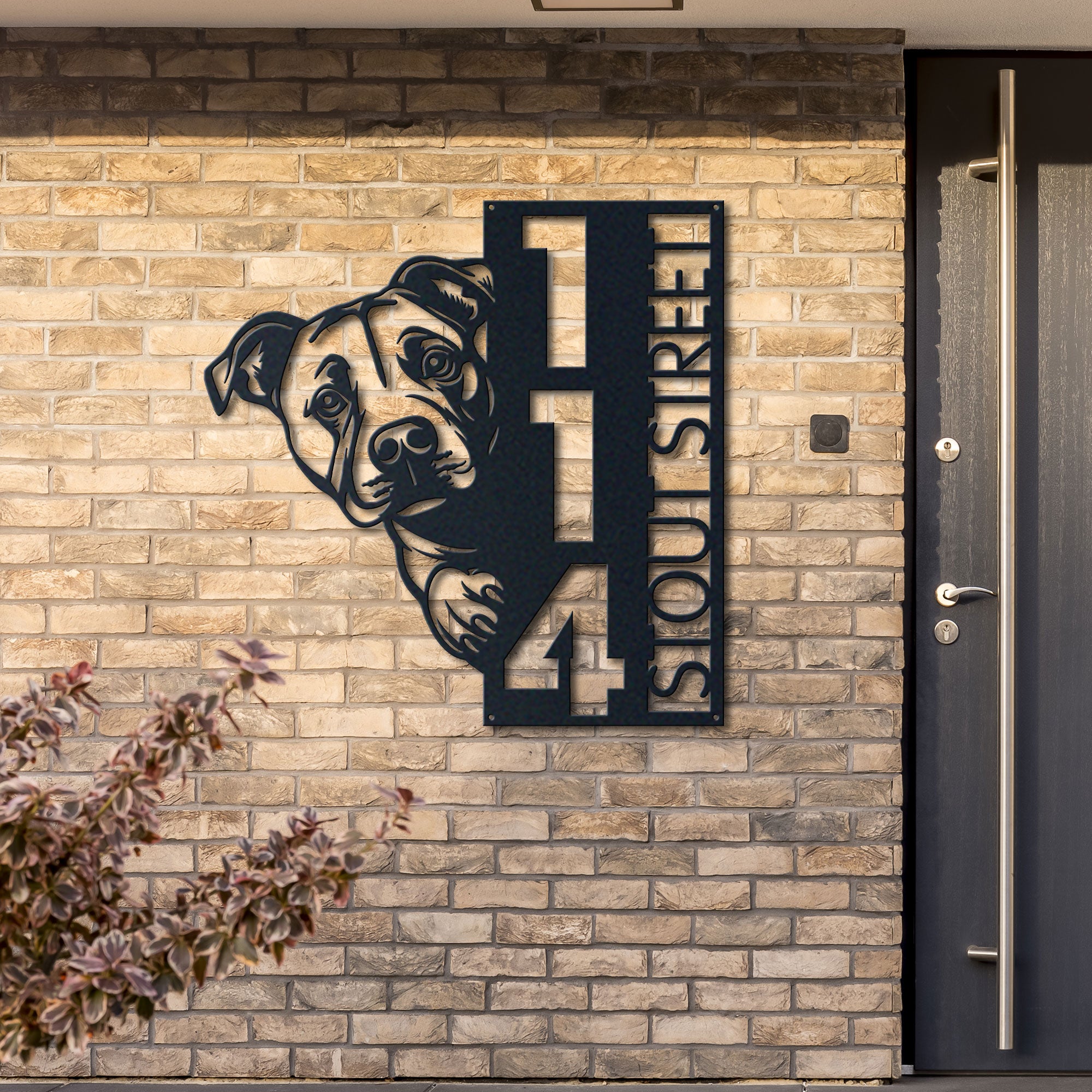 Staffordshire Bull Terrier Address Sign | Custom Metal Vertical House Number Plaque | Pet Owner Gift