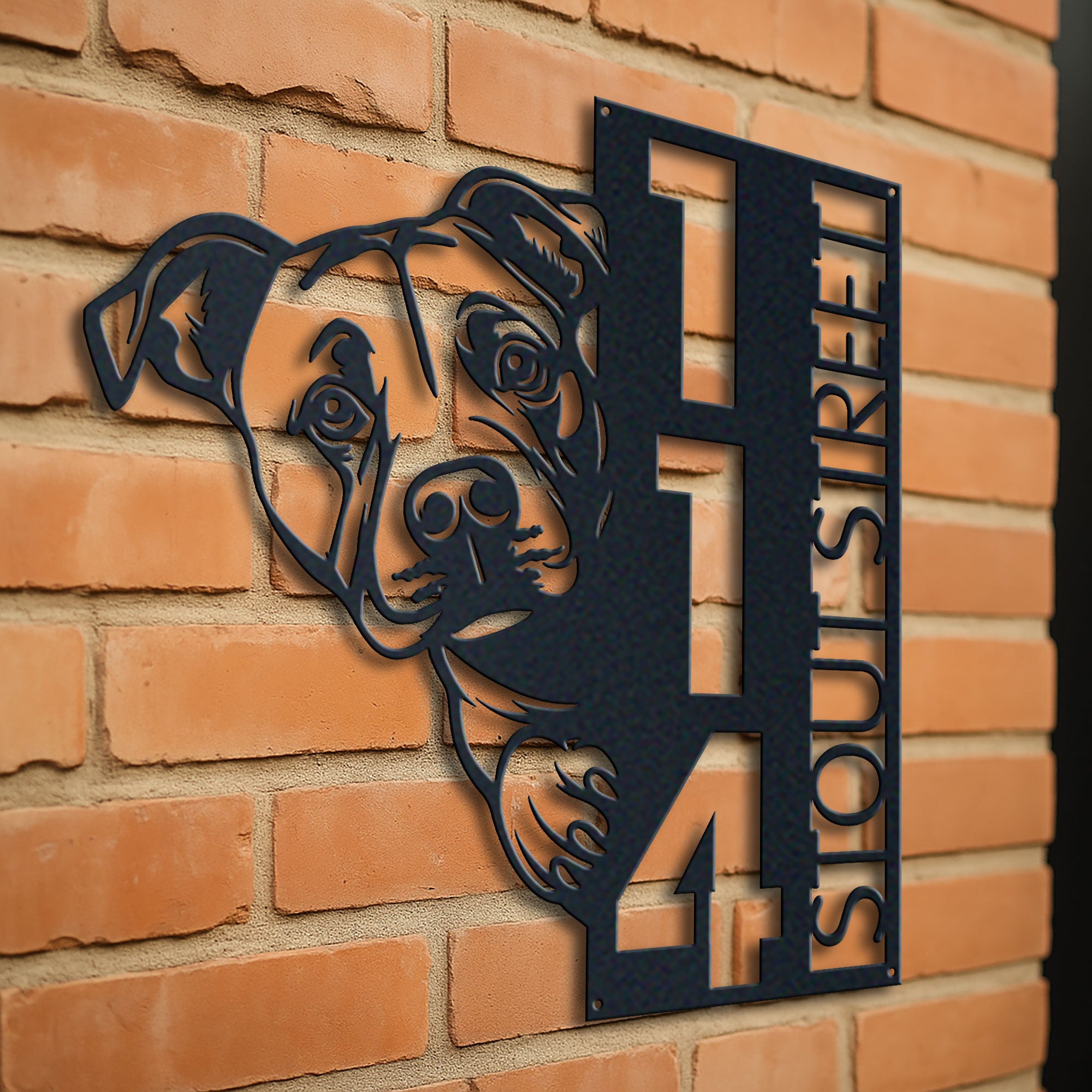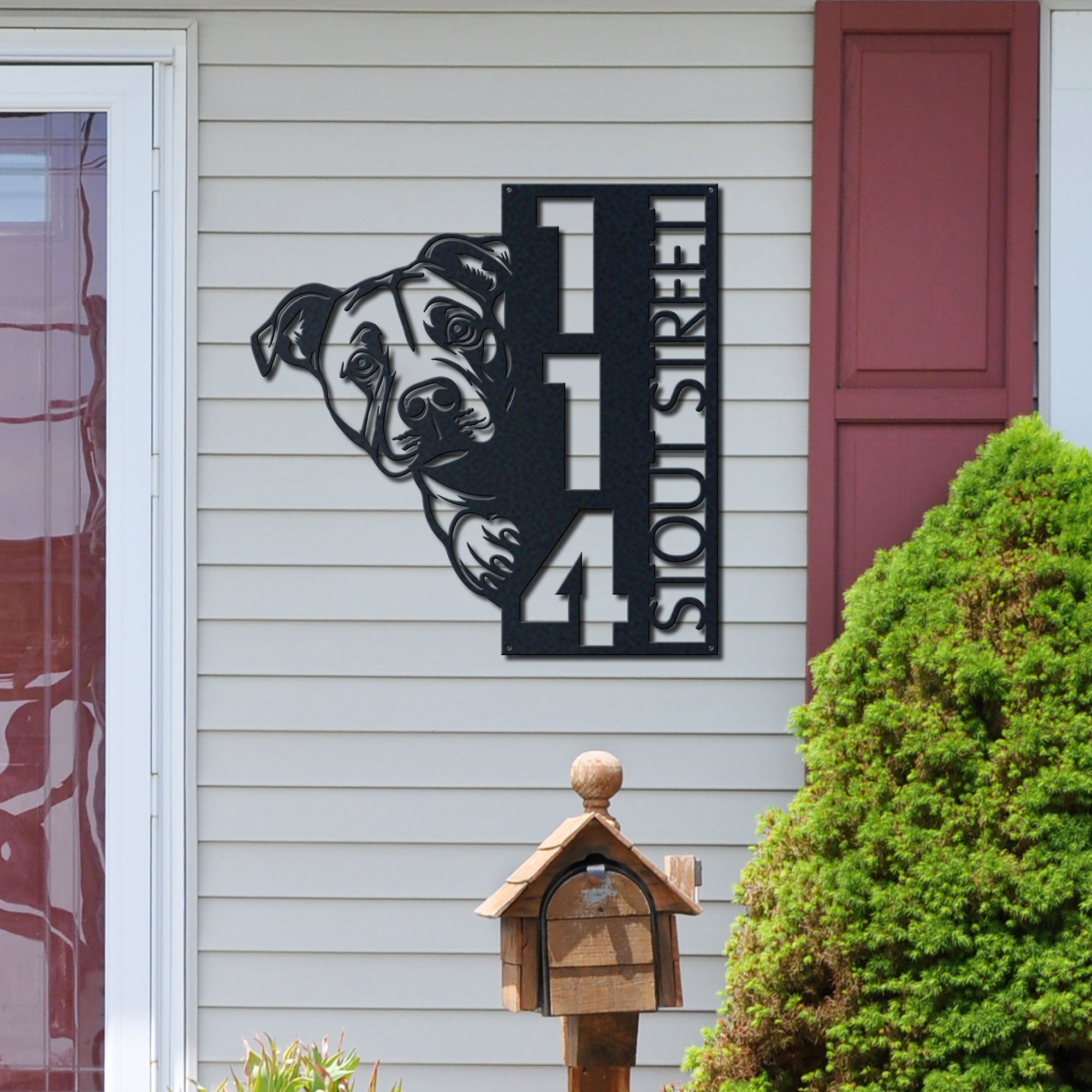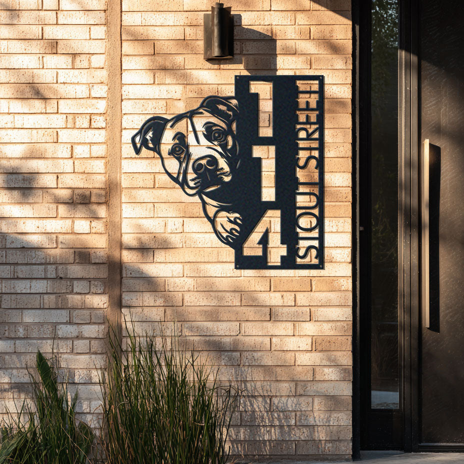 Staffordshire Bull Terrier Address Sign | Custom Metal Vertical House Number Plaque | Pet Owner Gift