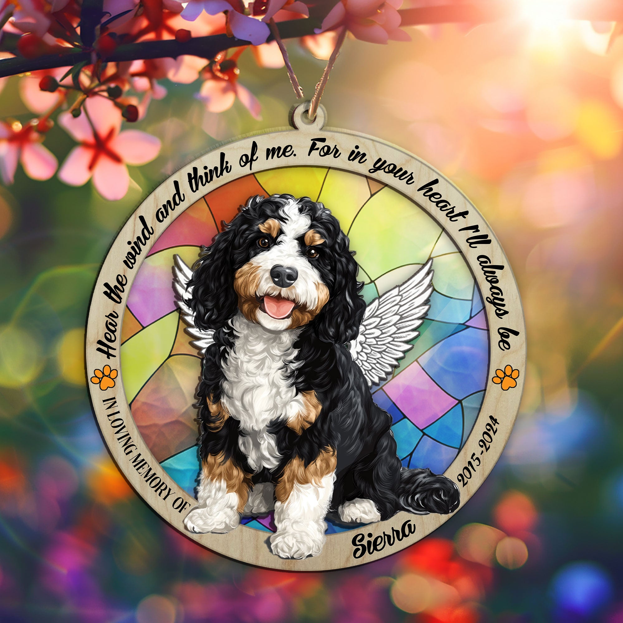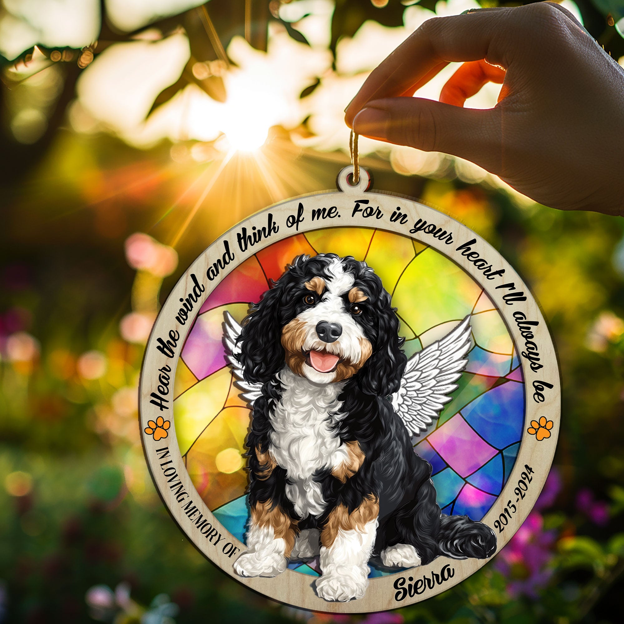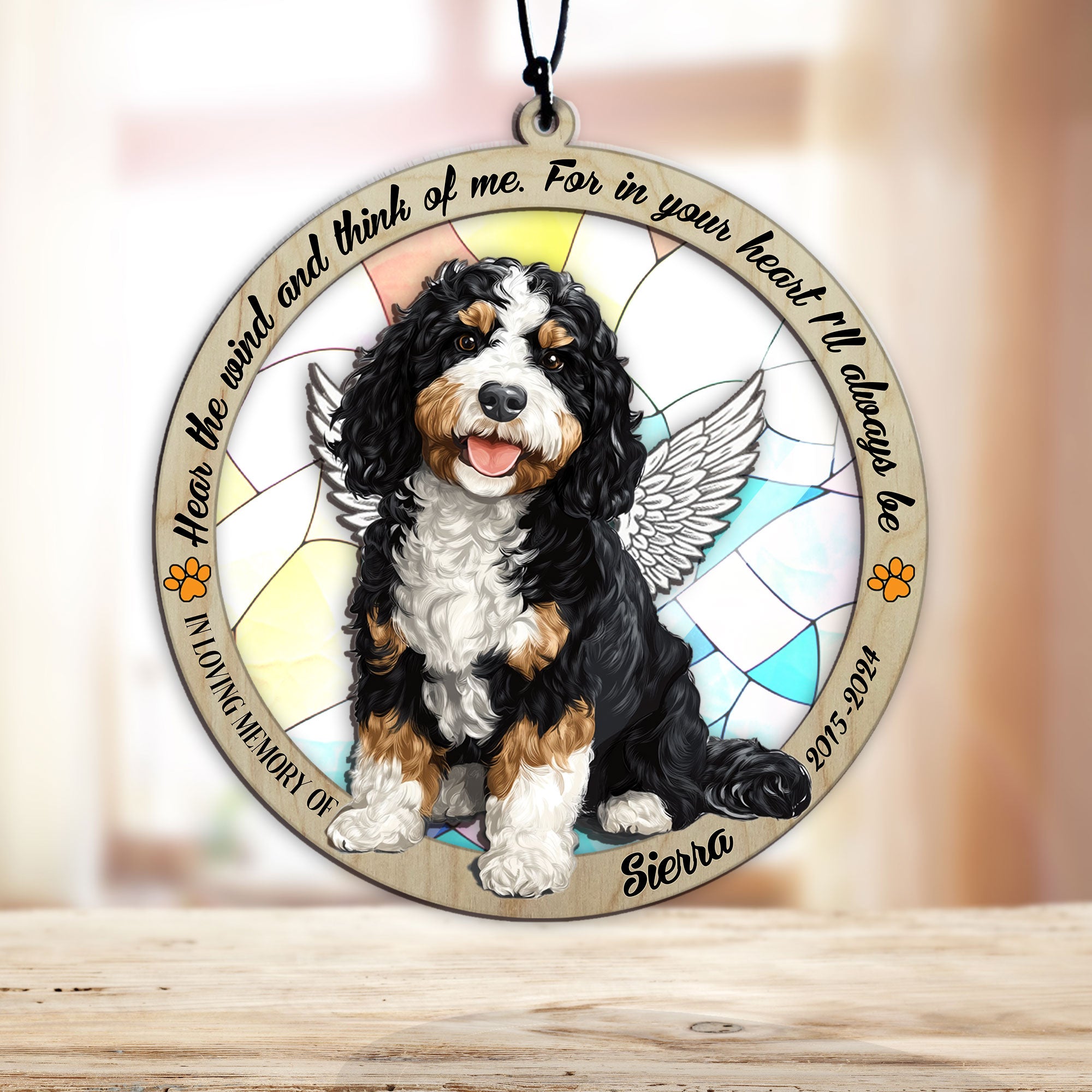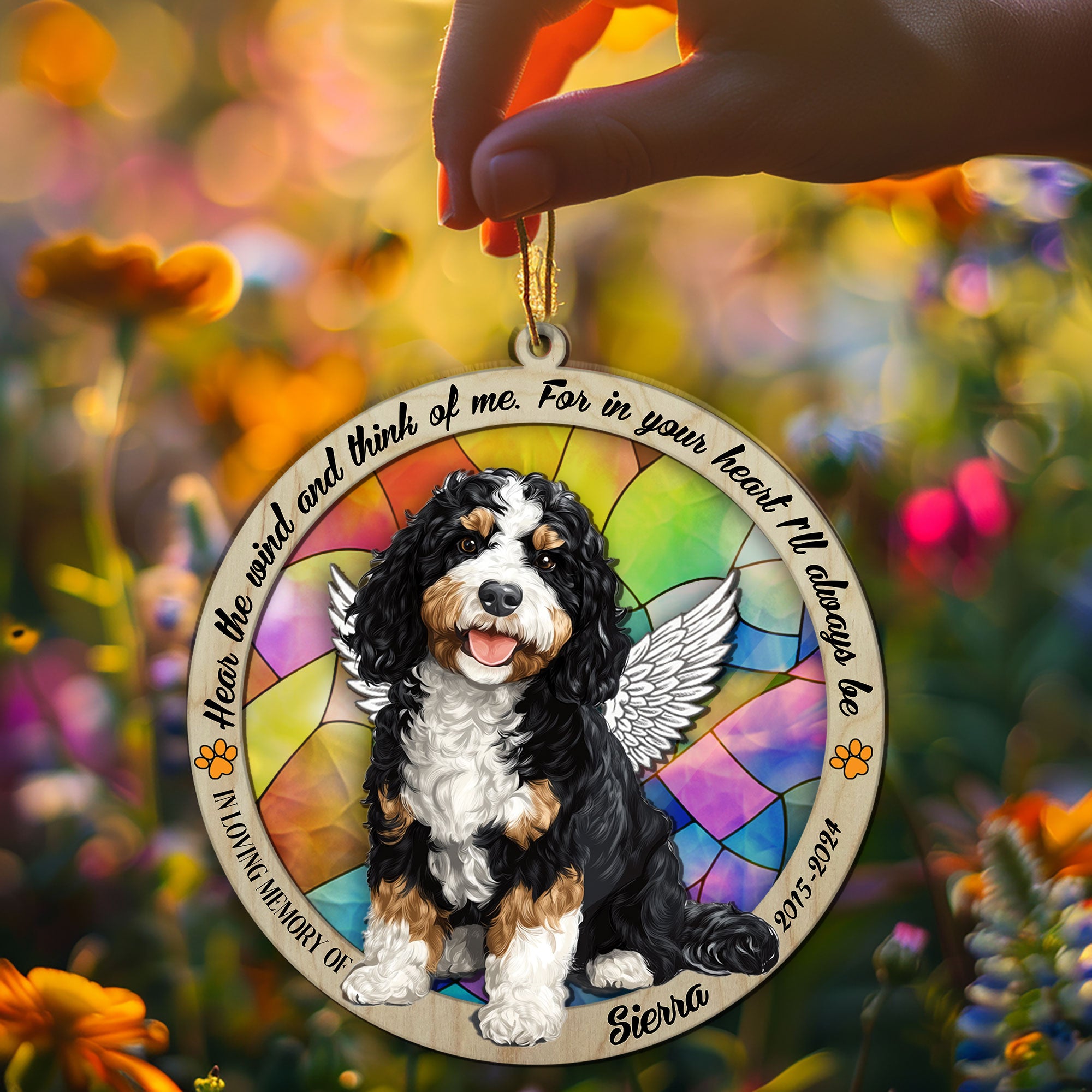 Bernedoodle Memorial Suncatcher | Custom Dog Ornament Gift