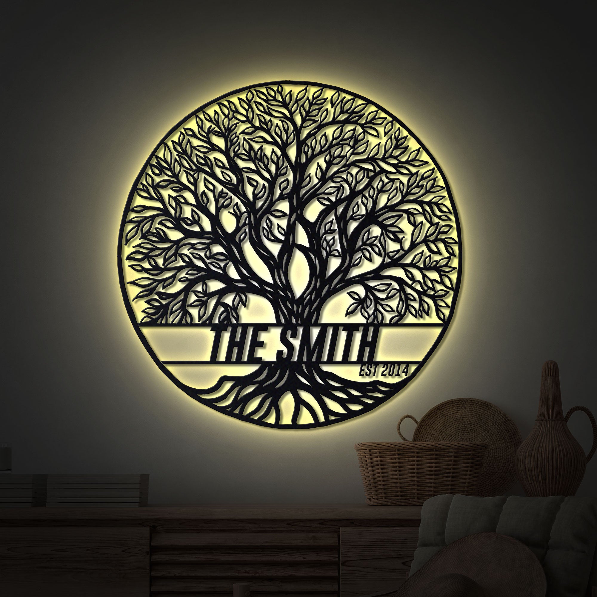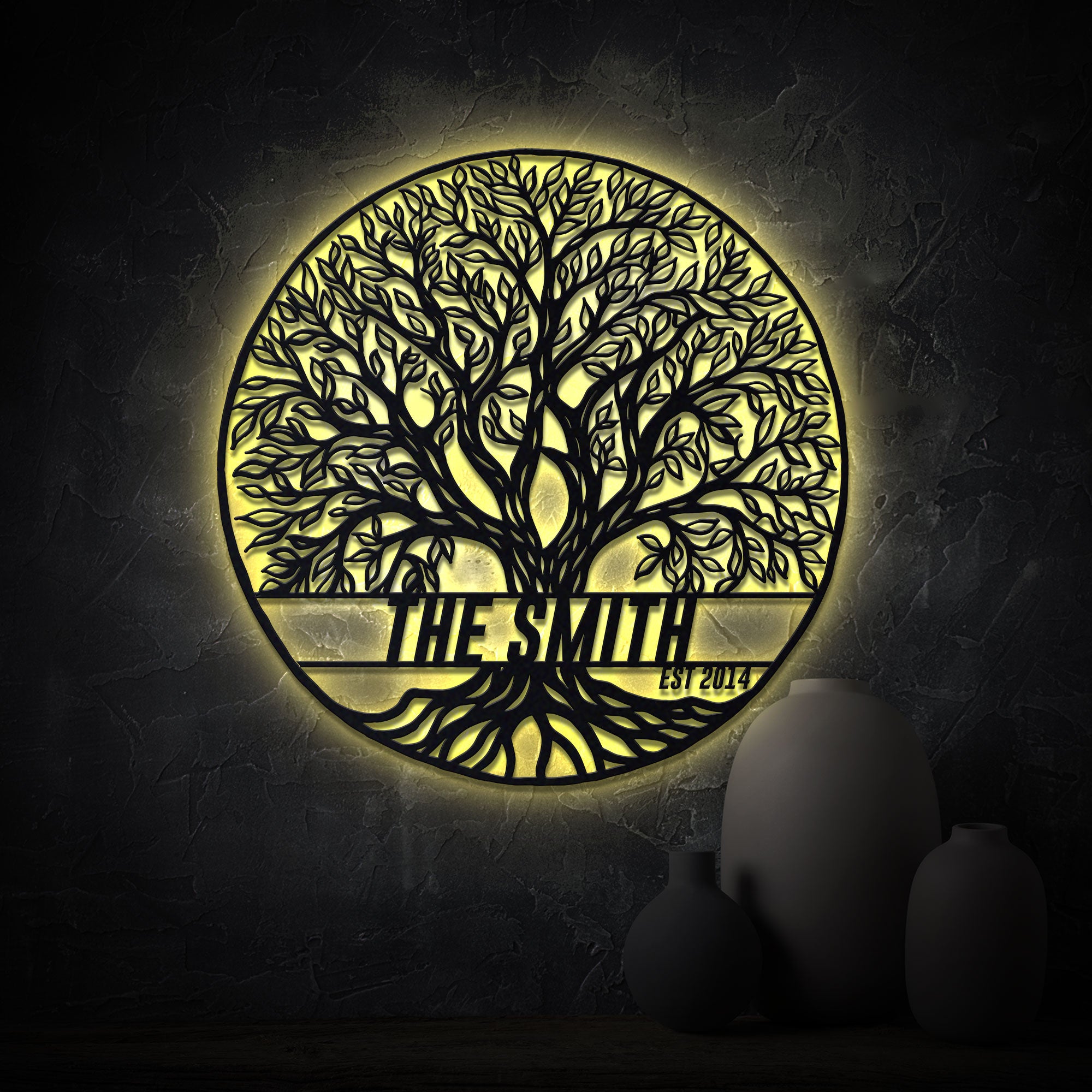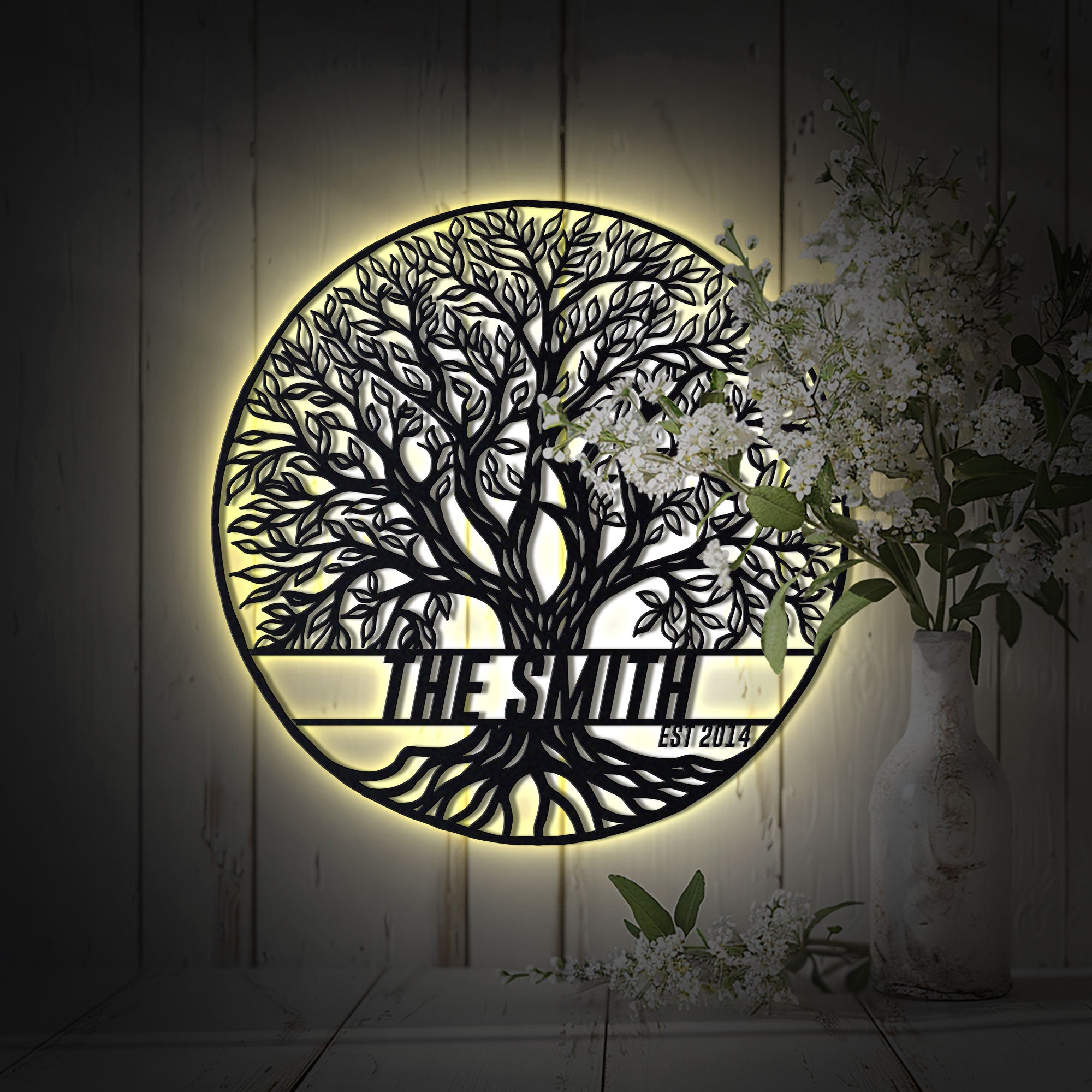 Tree of Life Metal Sign with LED Lights | Personalized Family Name Wall Art | Housewarming Gift