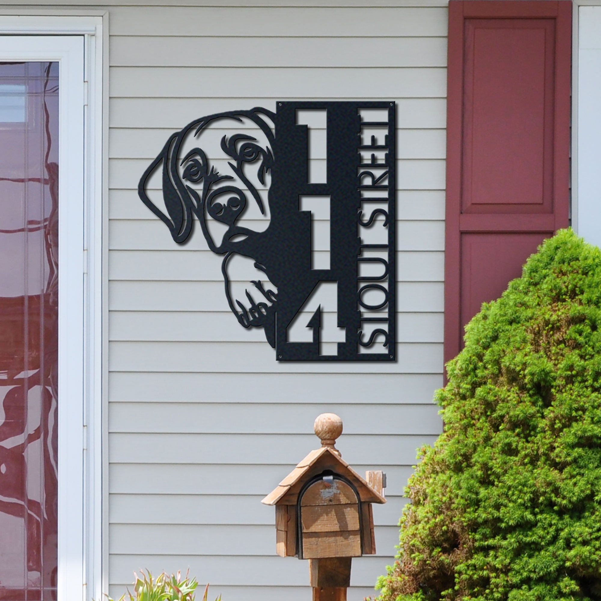 Vizsla Address Sign | Custom Metal Vertical House Number Plaque | Pet Owner Gift