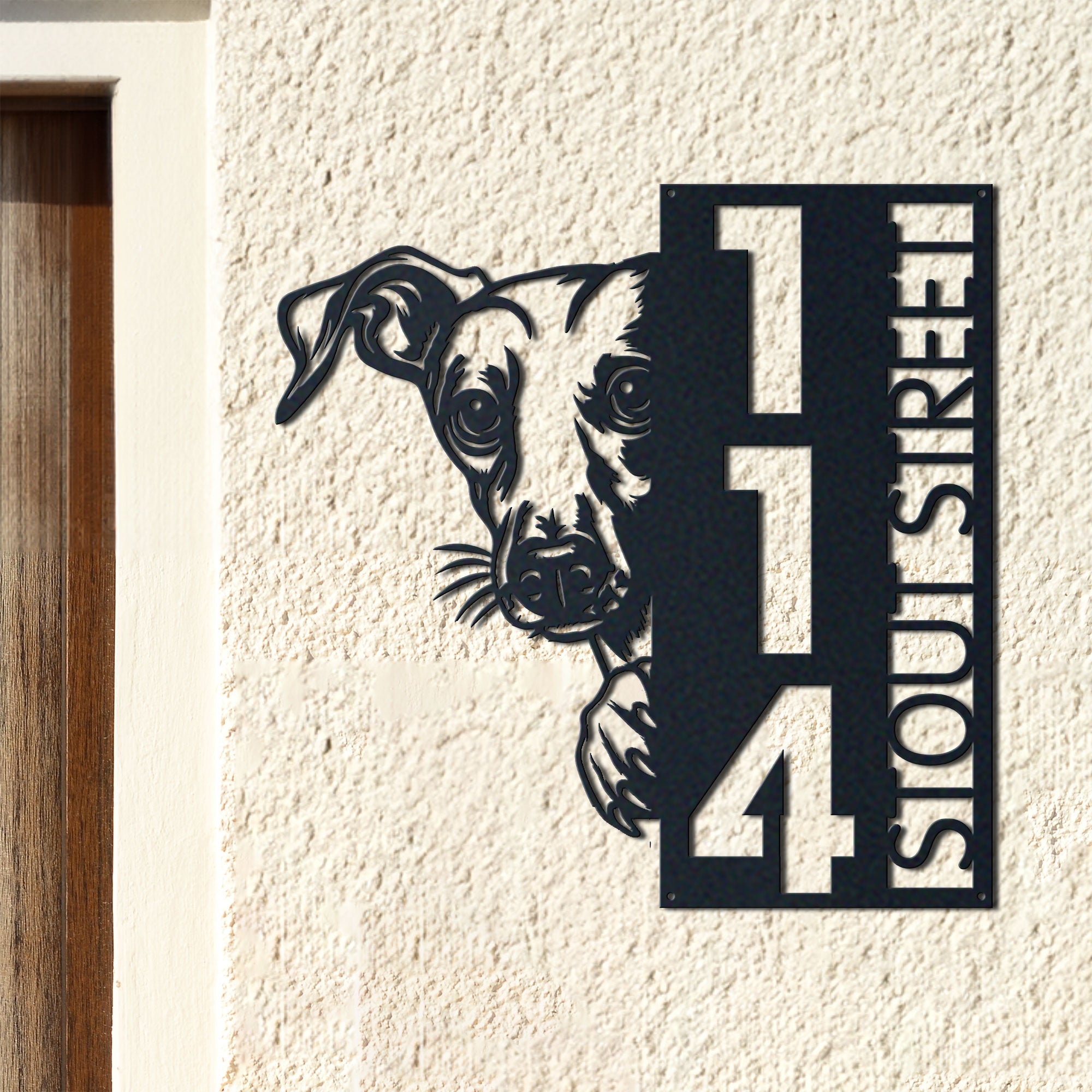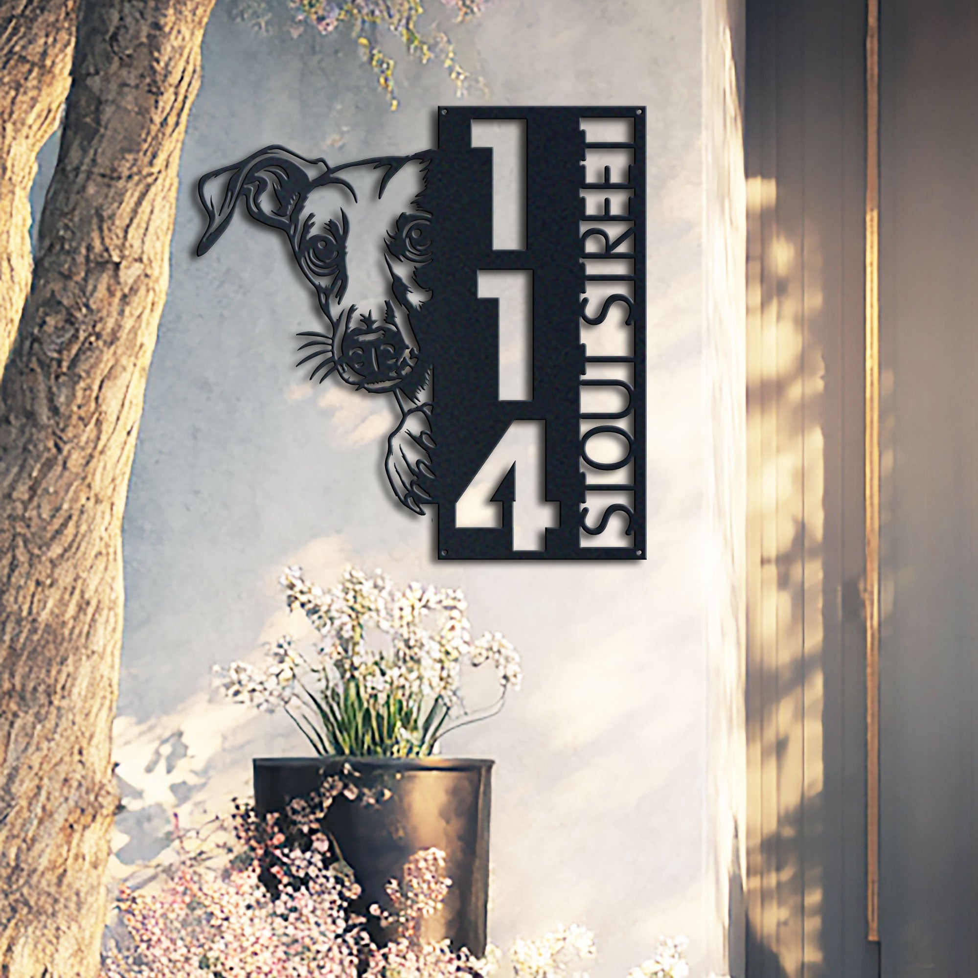 Whippet Address Sign | Custom Metal Vertical House Number Plaque | Pet Owner Gift 2