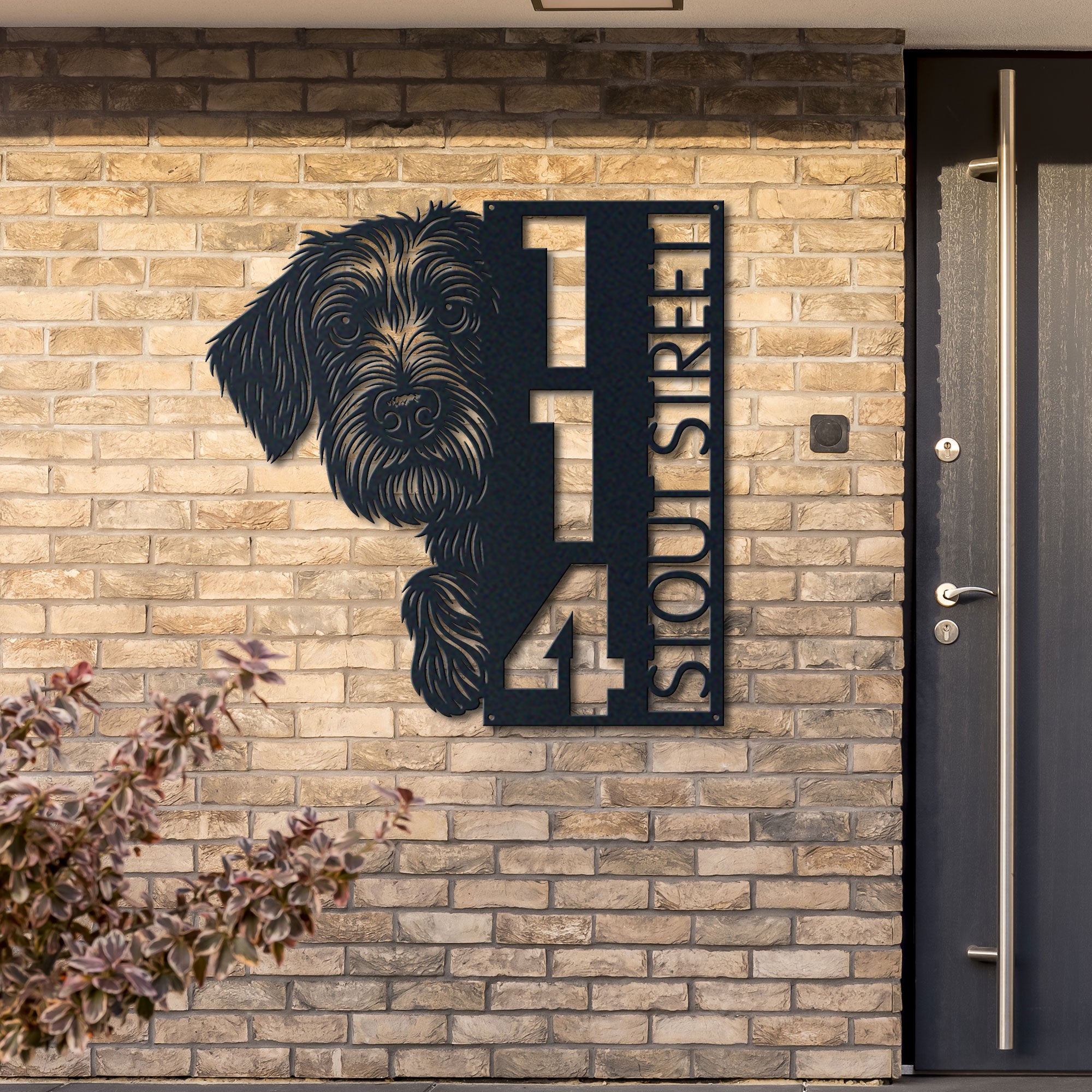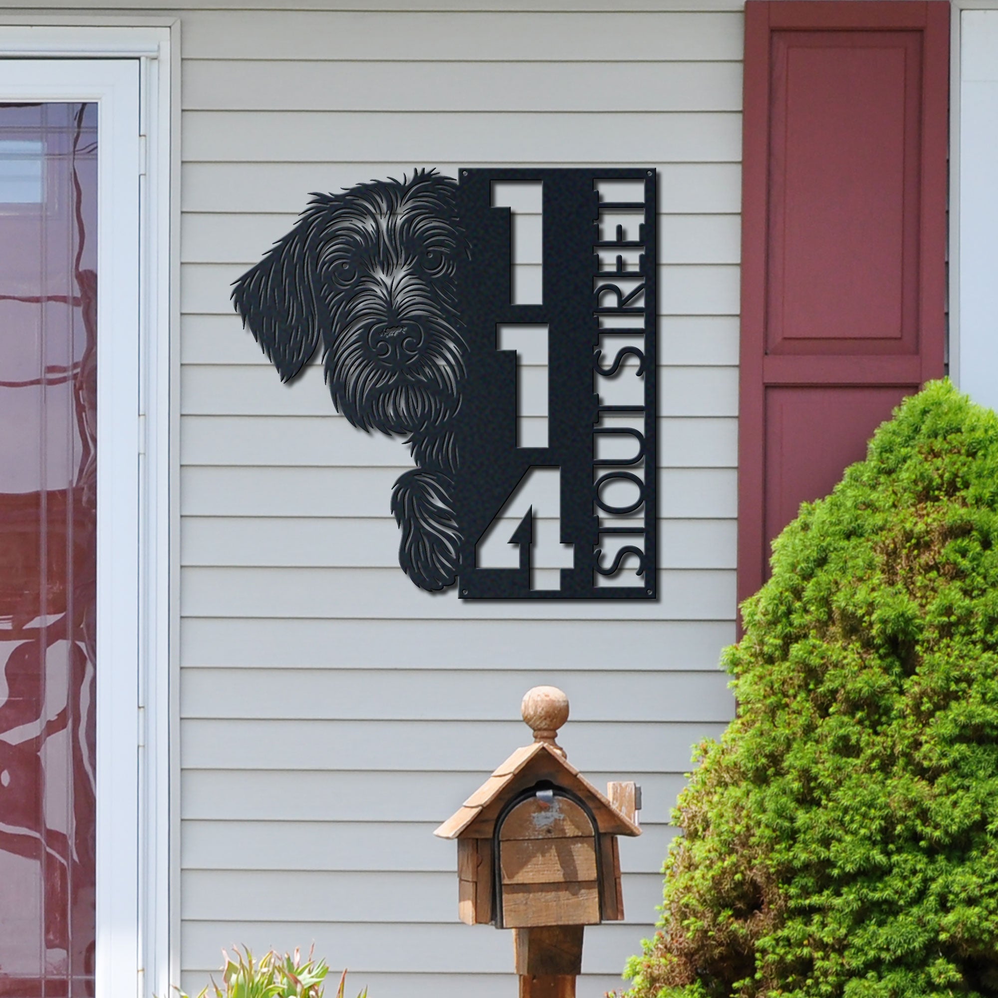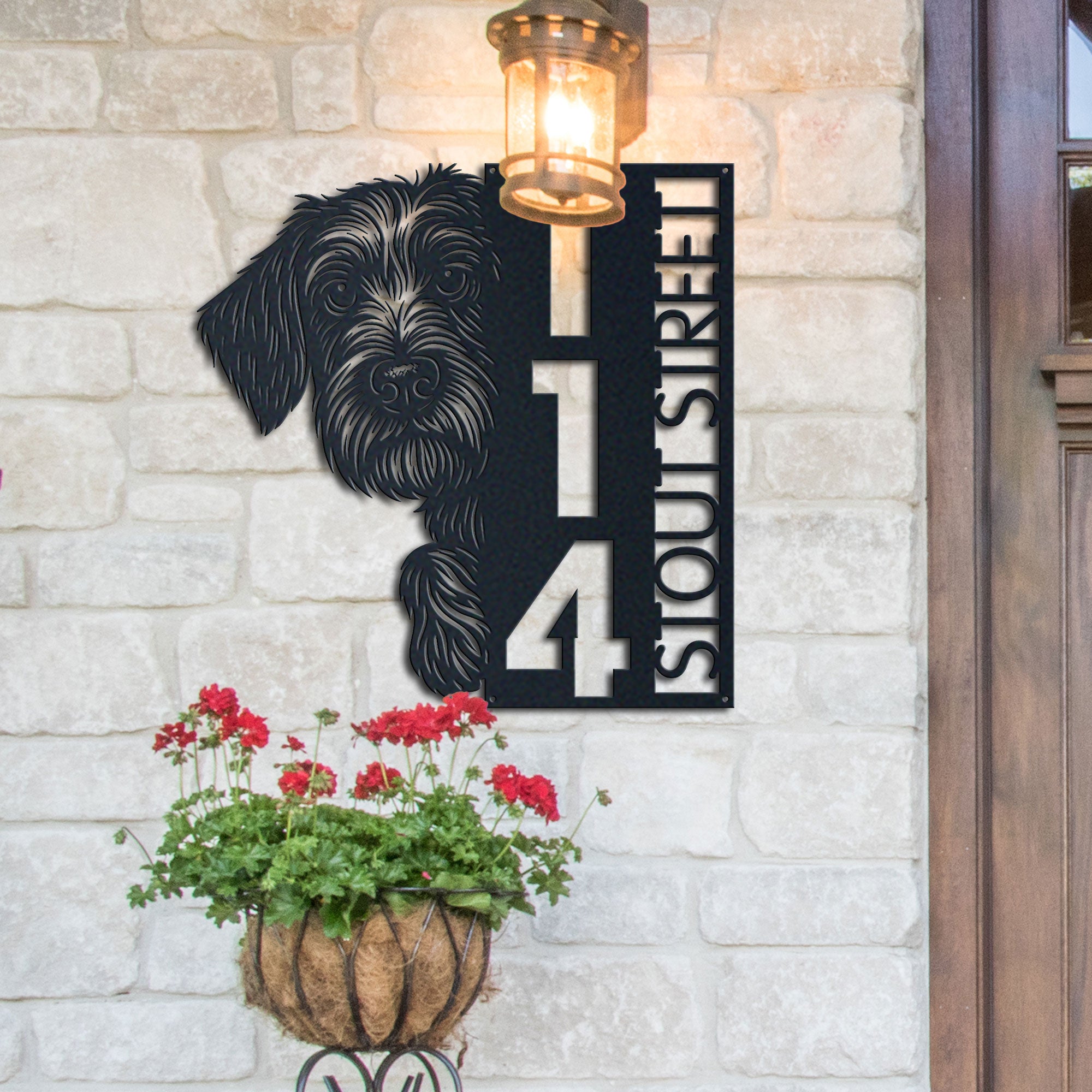 Wirehaired Pointing Griffon Address Sign | Custom Metal Vertical House Number Plaque | Pet Owner Gift 1