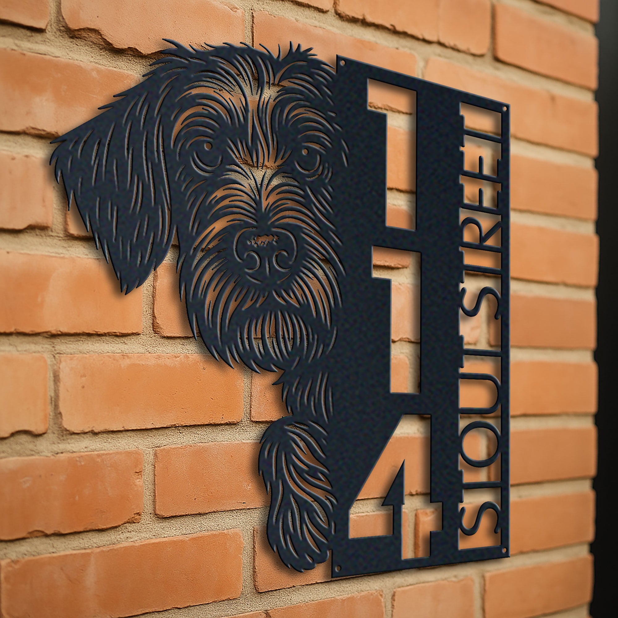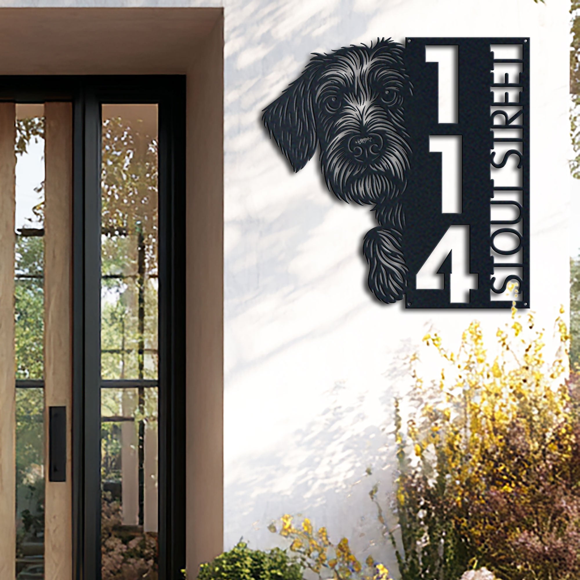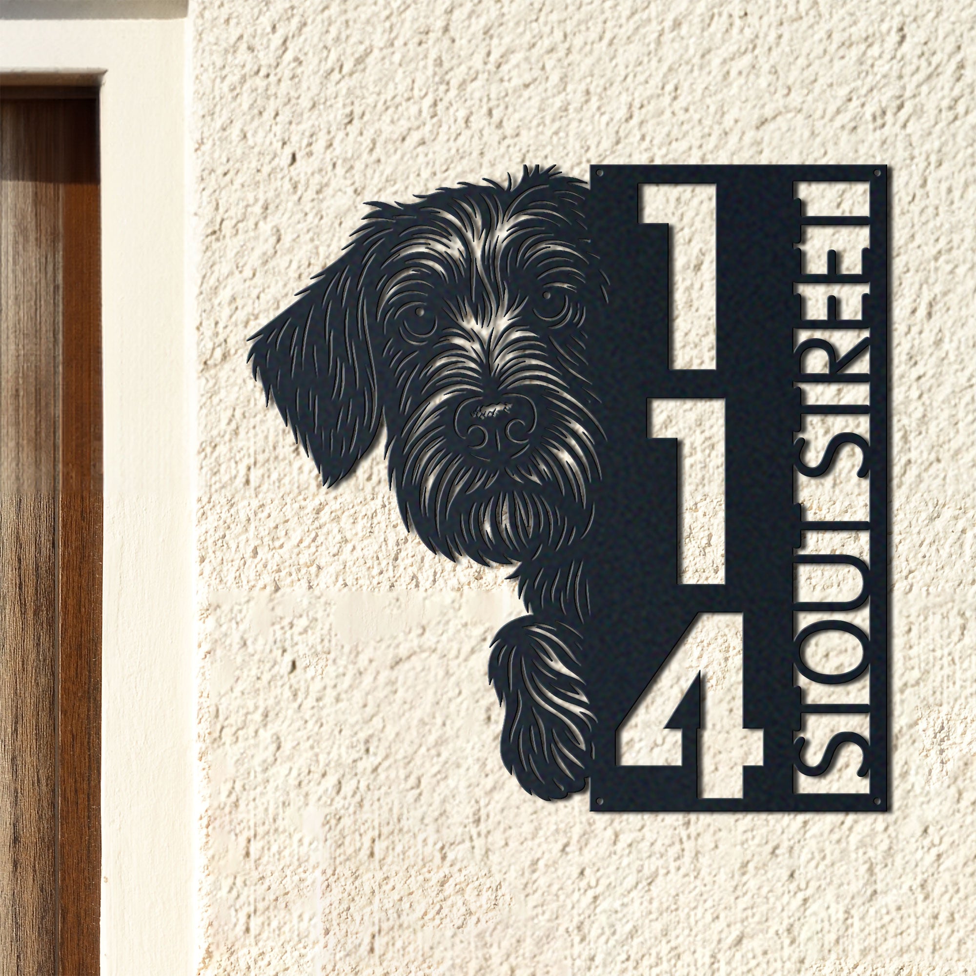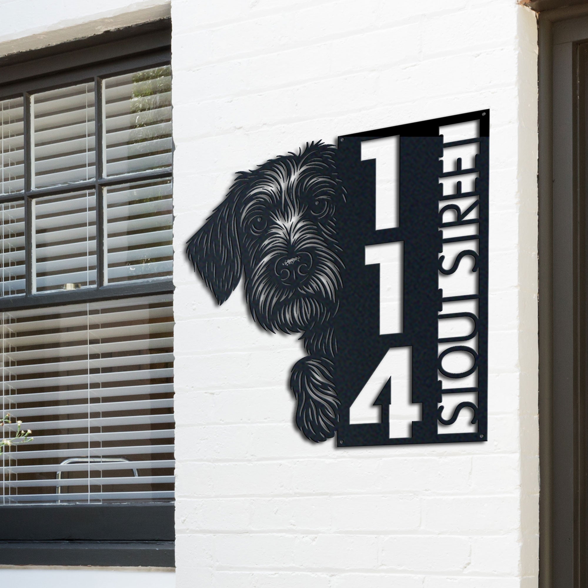 Wirehaired Pointing Griffon Address Sign | Custom Metal Vertical House Number Plaque | Pet Owner Gift 1