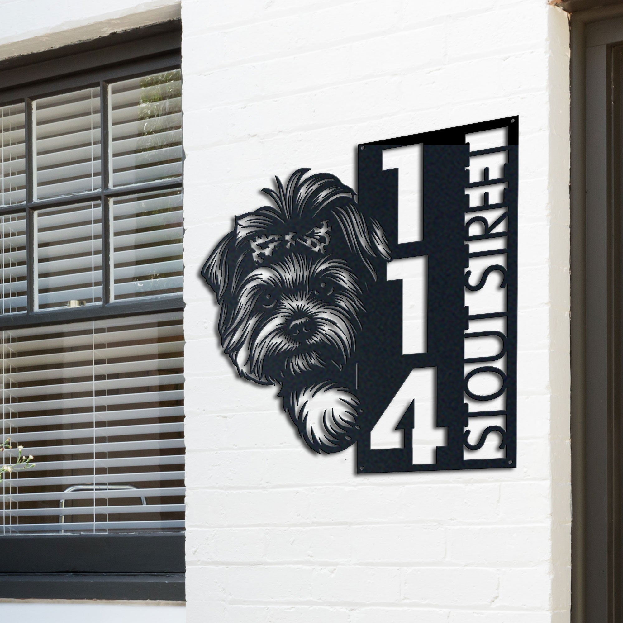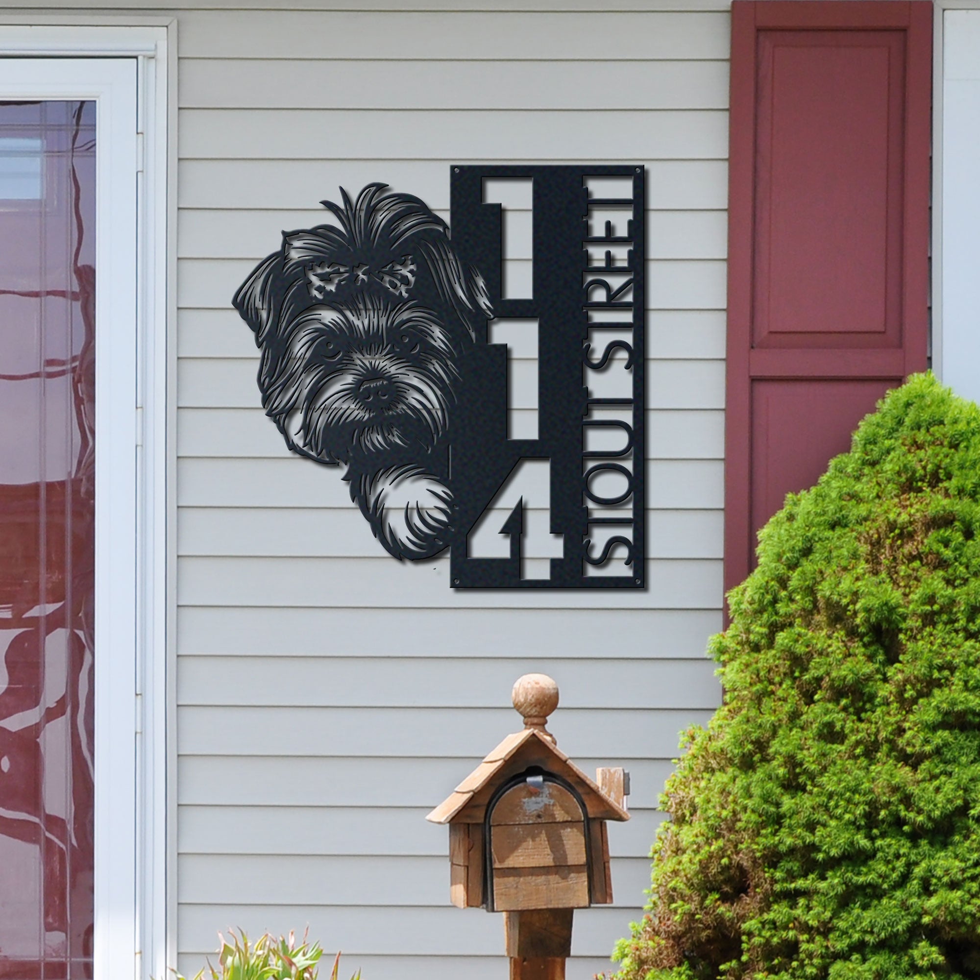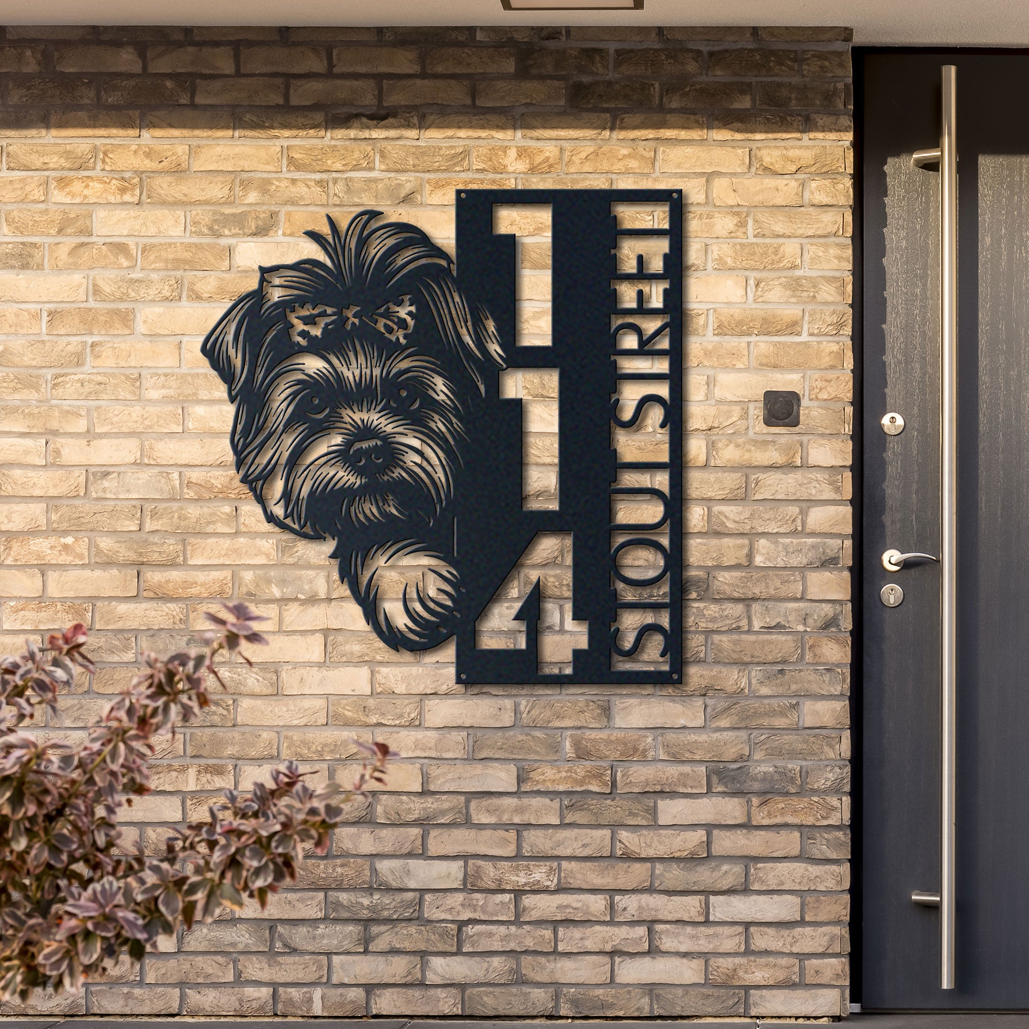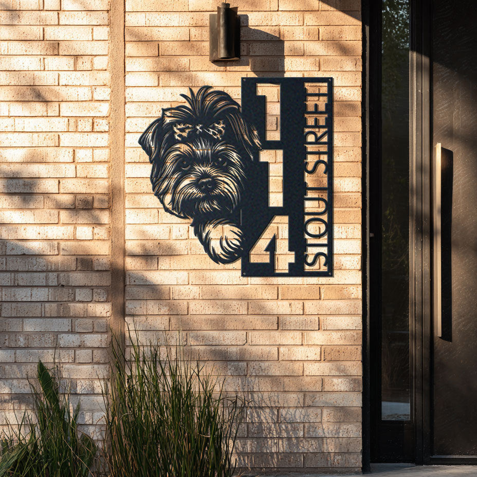 Yorkie Address Sign | Custom Metal Vertical House Number Plaque | Pet Owner Gift 3