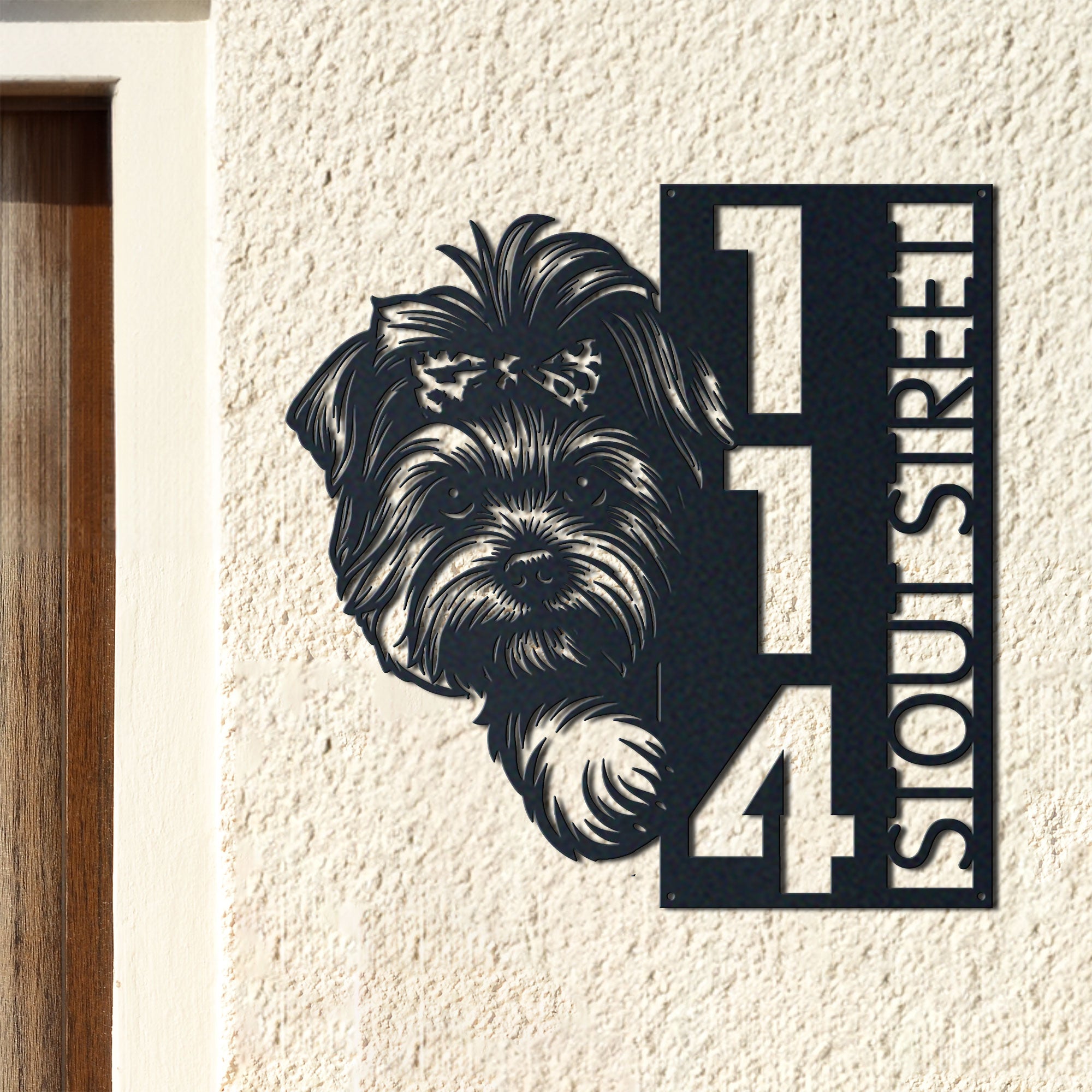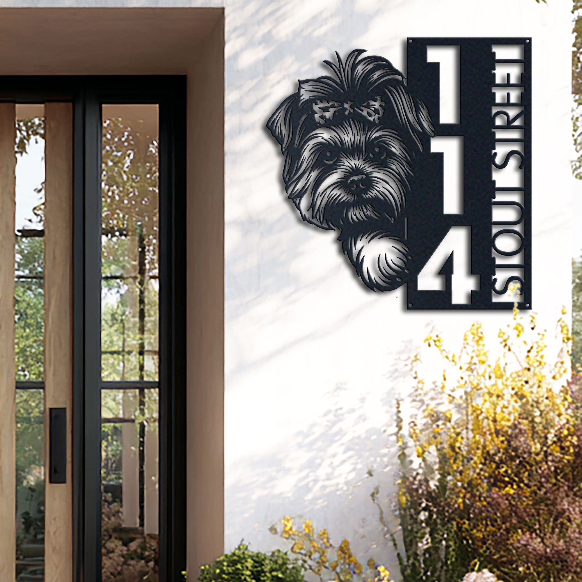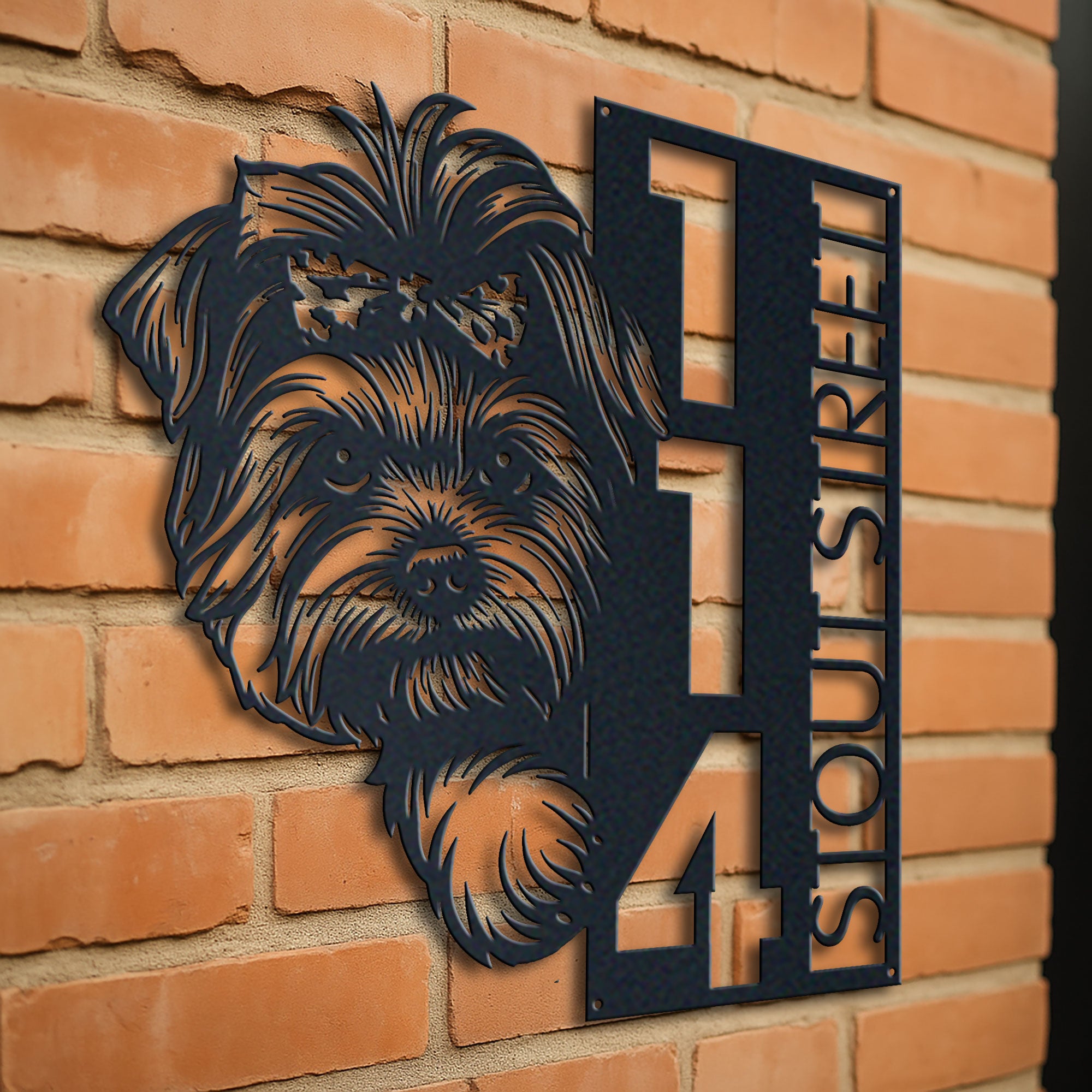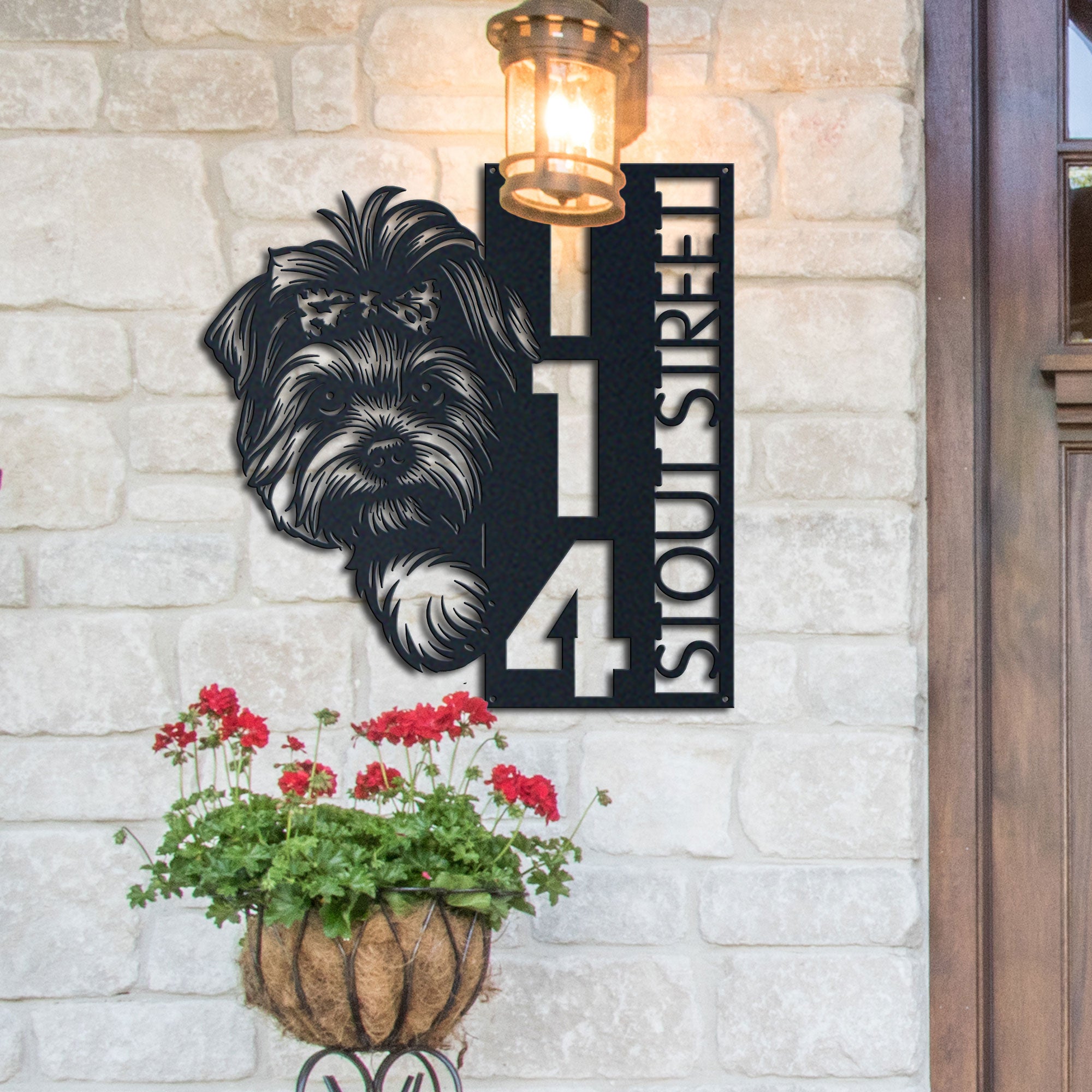 Yorkie Address Sign | Custom Metal Vertical House Number Plaque | Pet Owner Gift 3