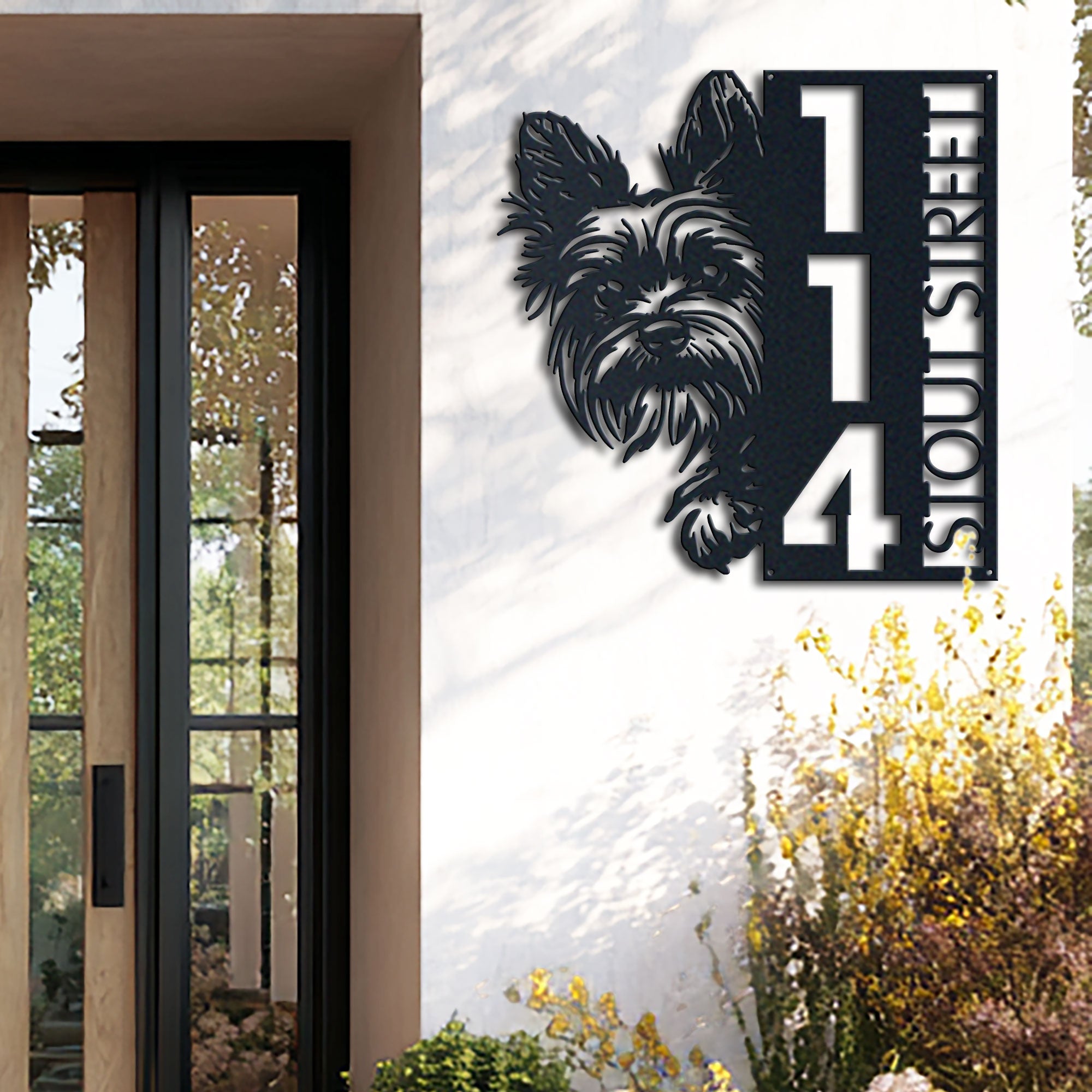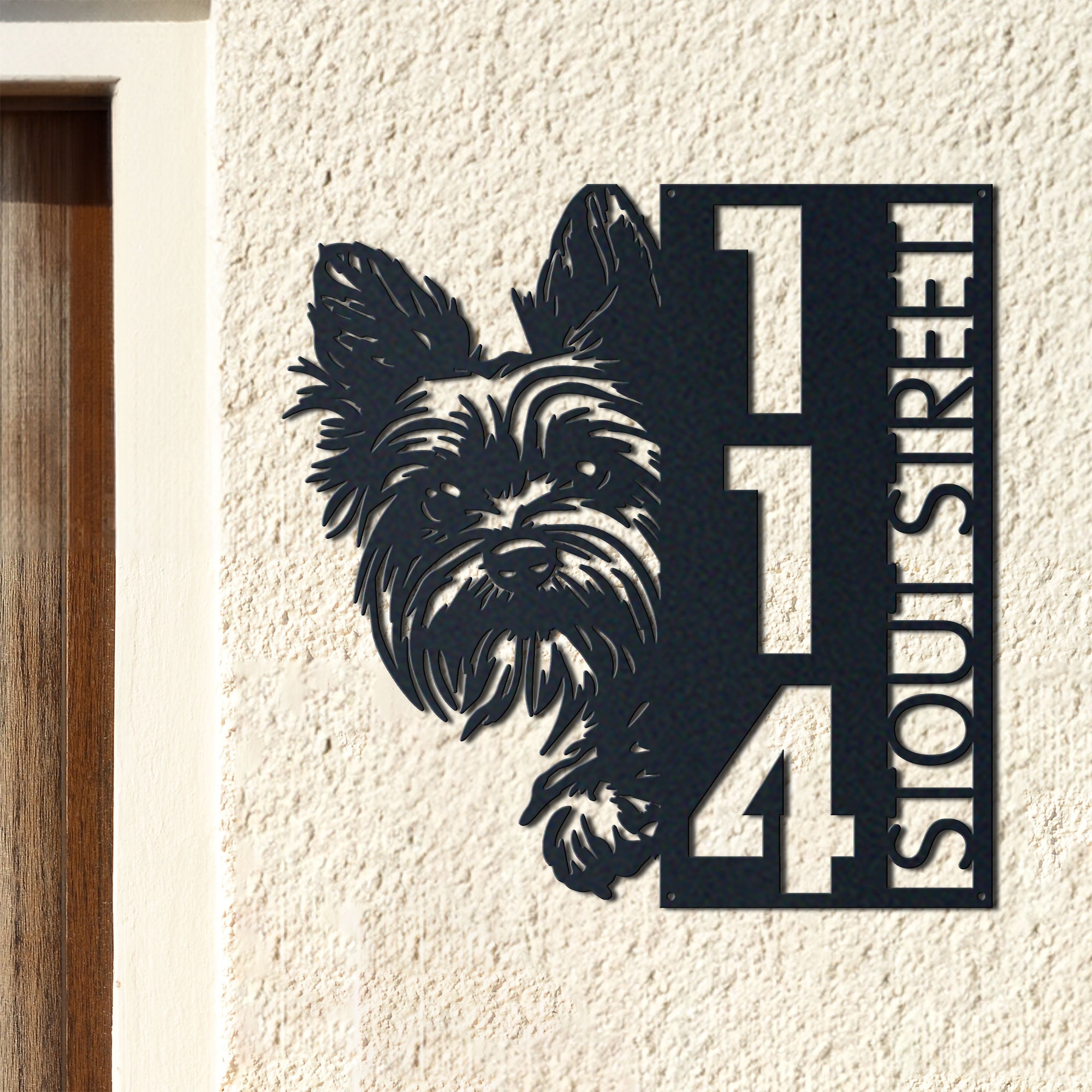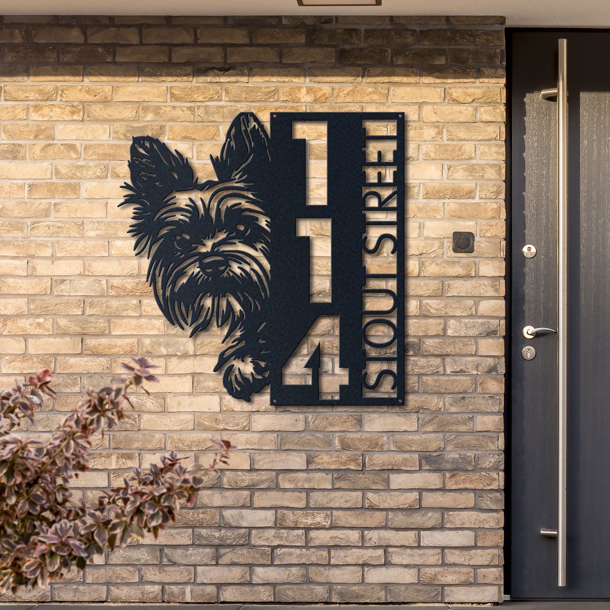 Yorkshire Terrier Address Sign | Custom Metal Vertical House Number Plaque | Pet Owner Gift