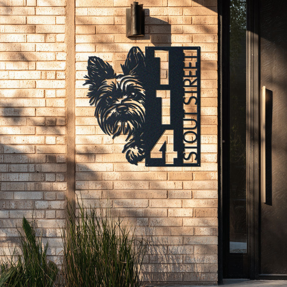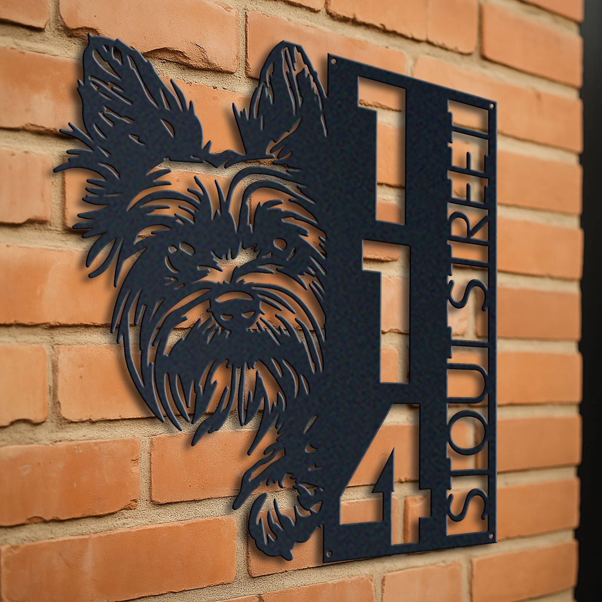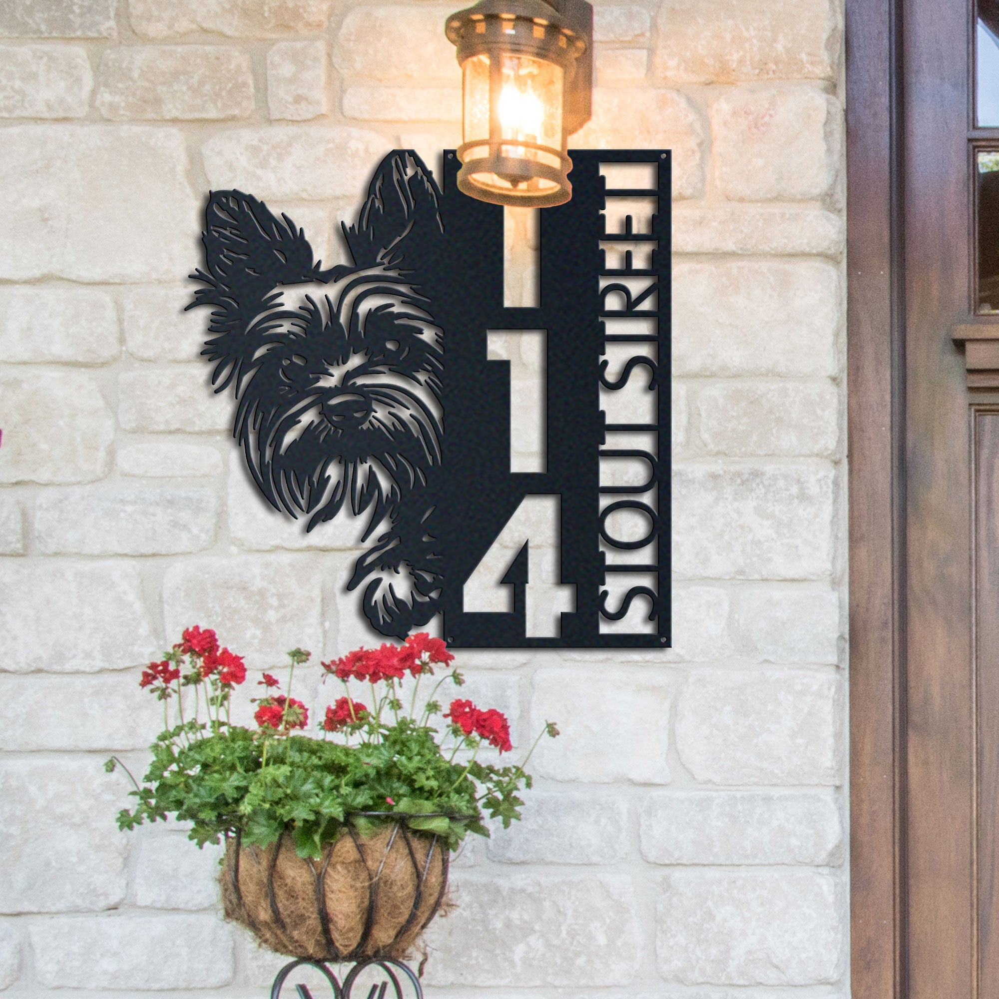Yorkshire Terrier Address Sign | Custom Metal Vertical House Number Plaque | Pet Owner Gift